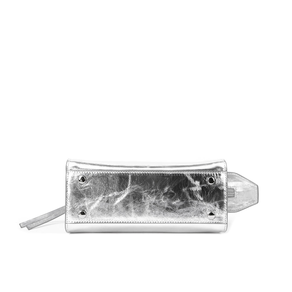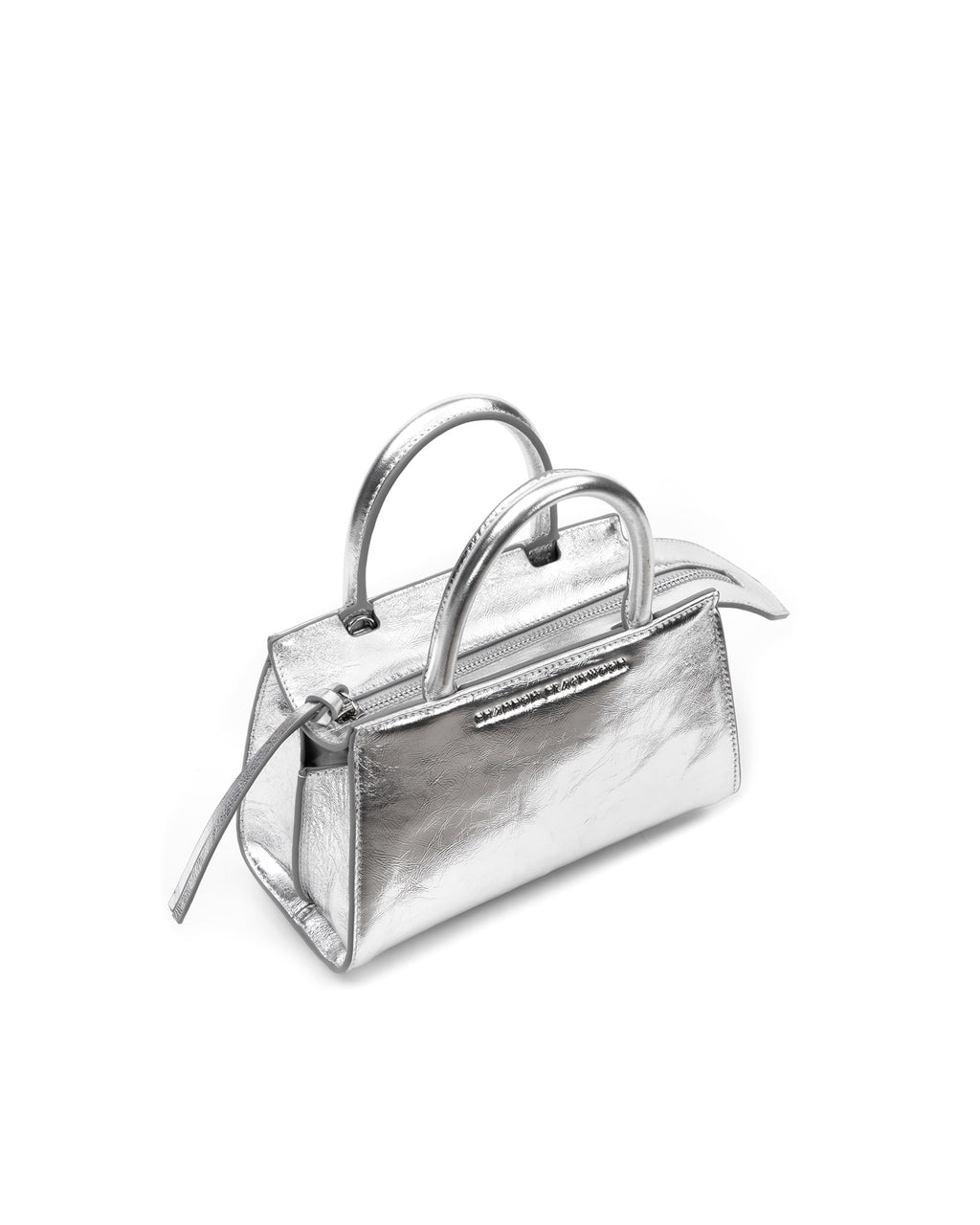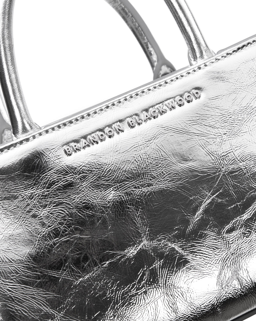 Our Arlen Bag in Silver Cracked Leather, Featuring an Exaggerated Zipper Detail