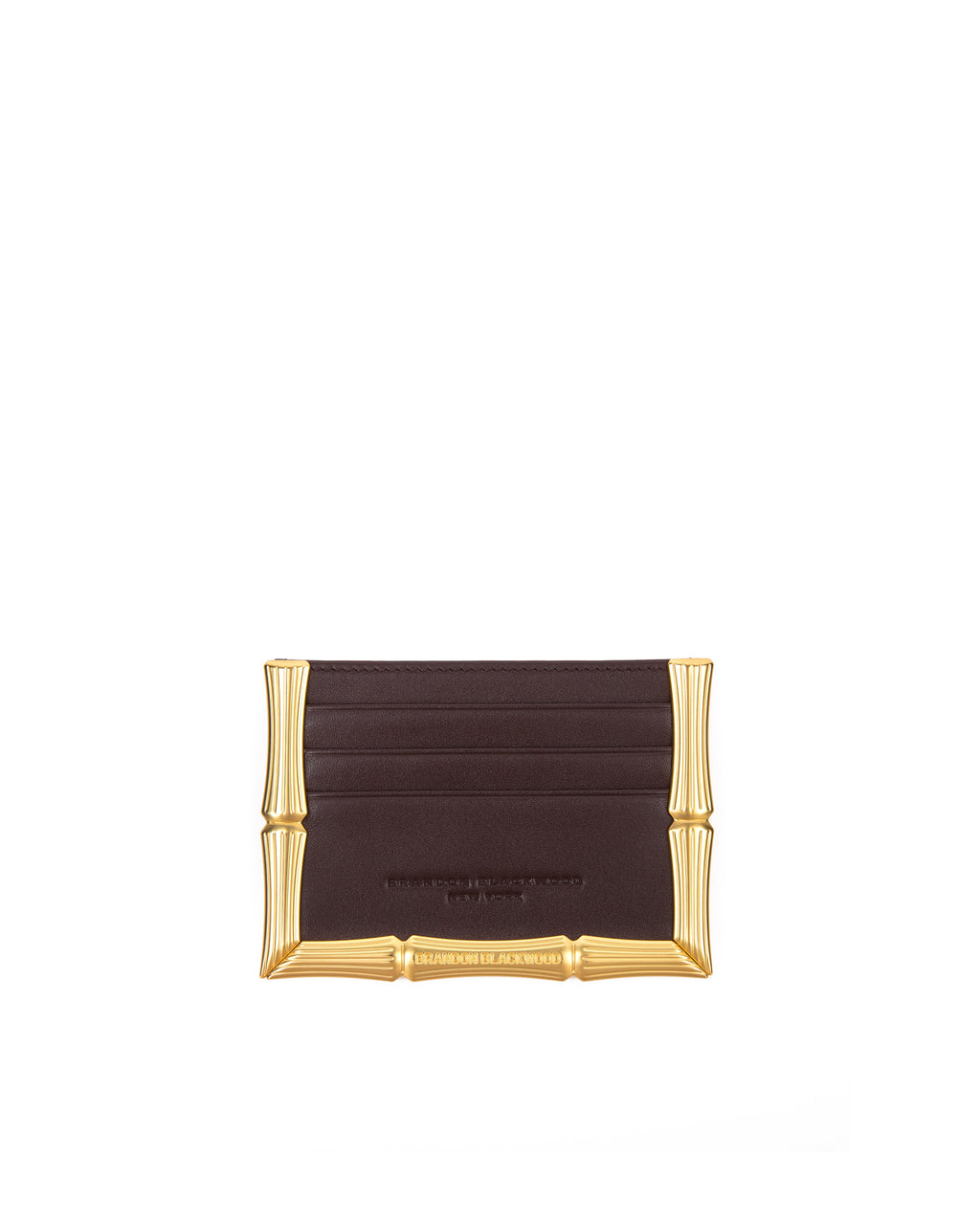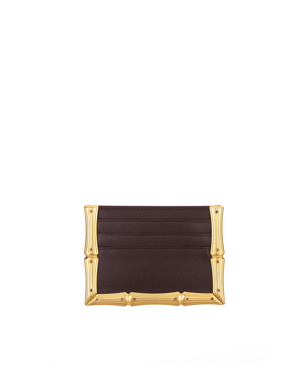 Our Bamboo B Card Holder in Dark Brown Leather and Custom Bamboo Hardware
