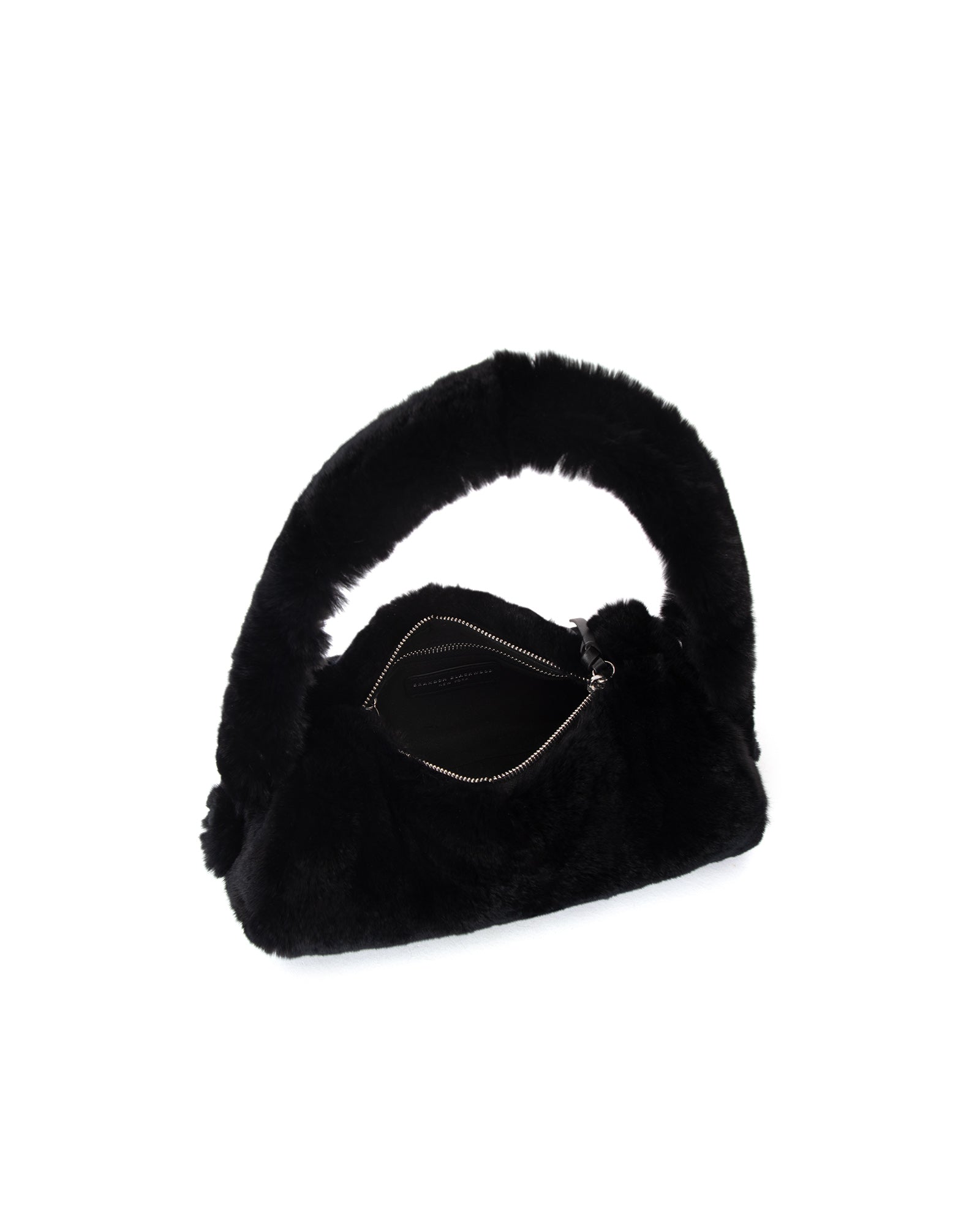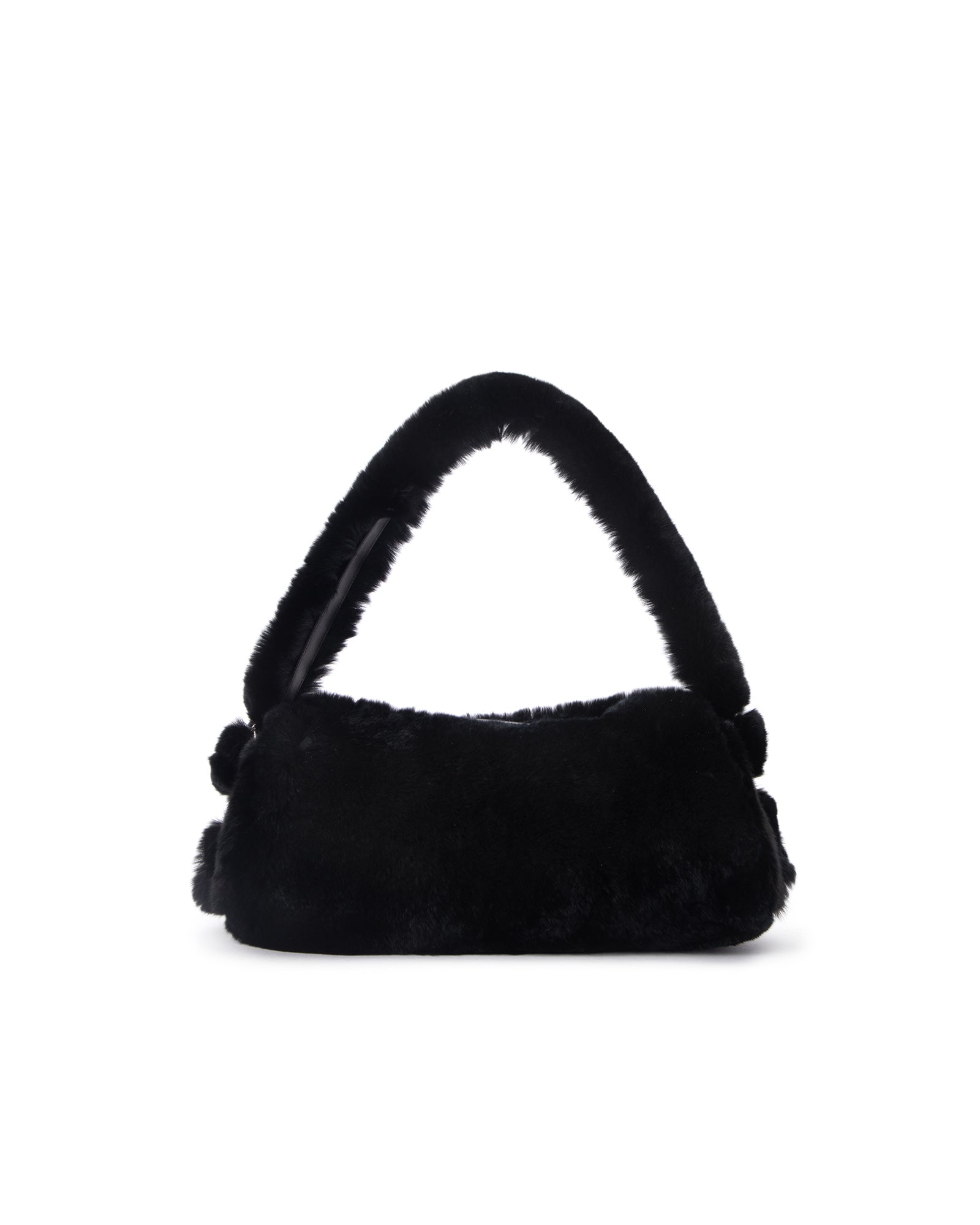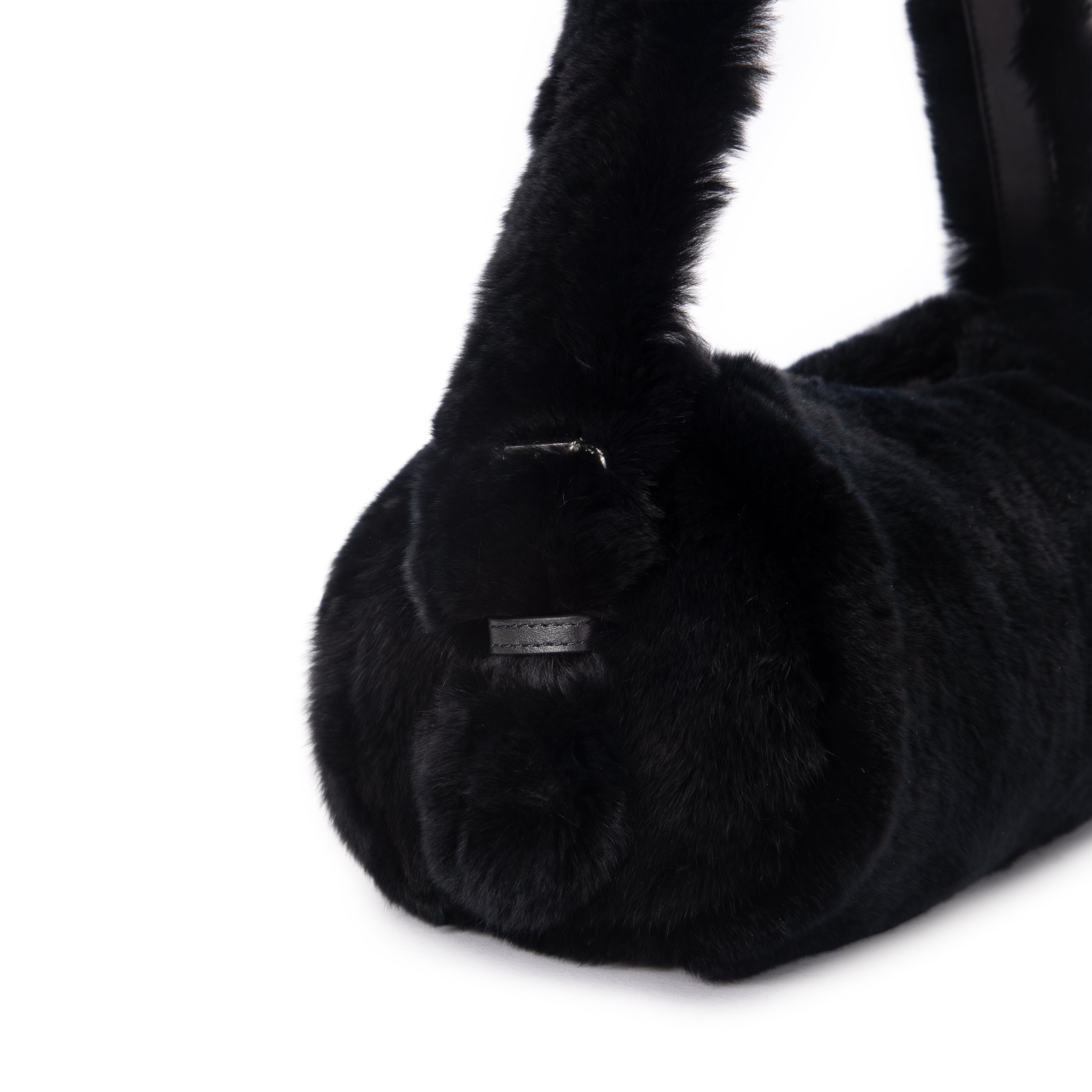 A plush statement with a sleek finish. The Chloe Bag in Black Rabbit Fur features an ultra–soft exterior paired with a clean, modern silhouette. Its rounded shape and cushioned top handle make it a cozy yet elevated option for cold-weather dressing, while the spacious interior keeps everyday essentials close at hand.