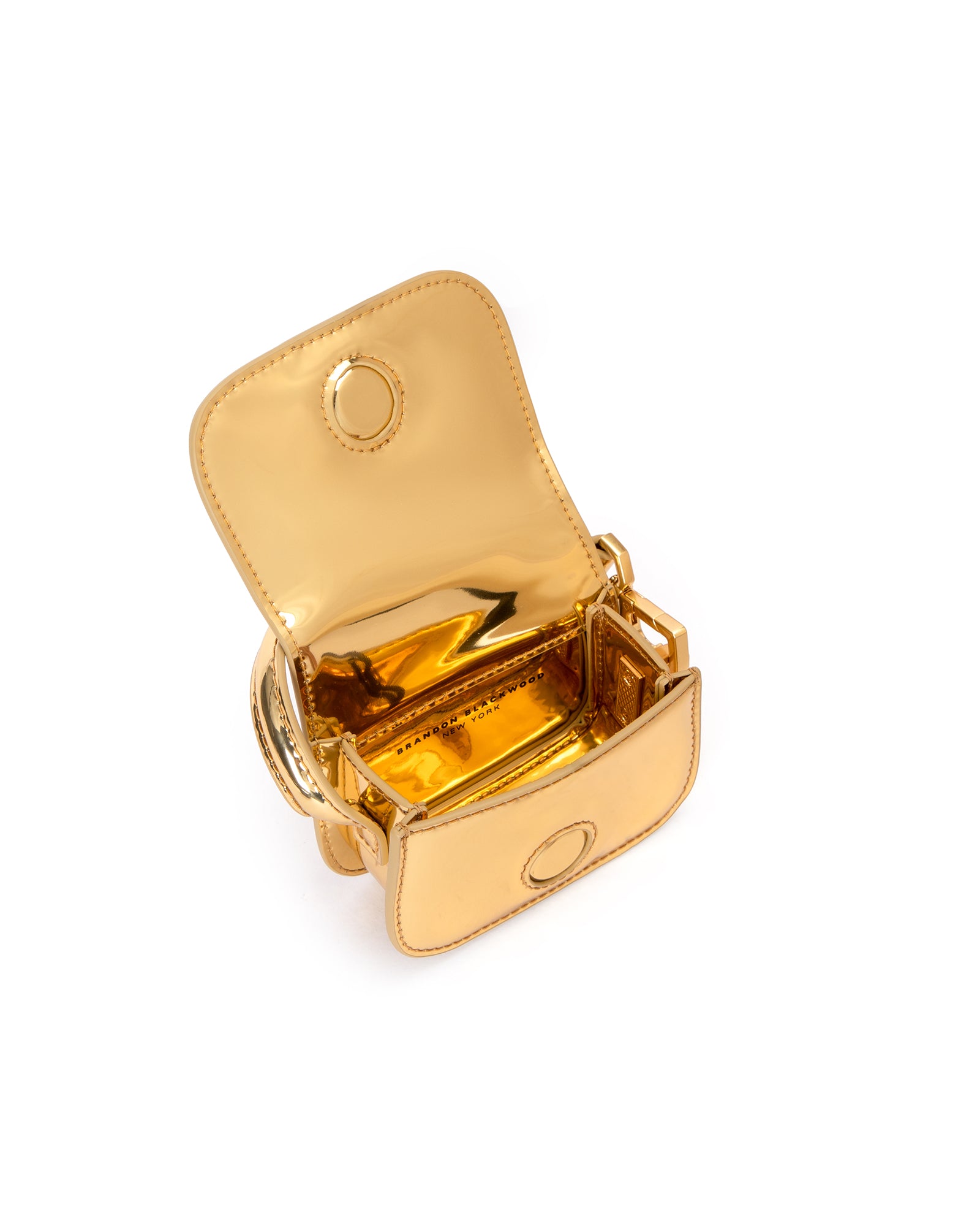 Our Click Bag in Gold Mirror Leather with Brass Hardware