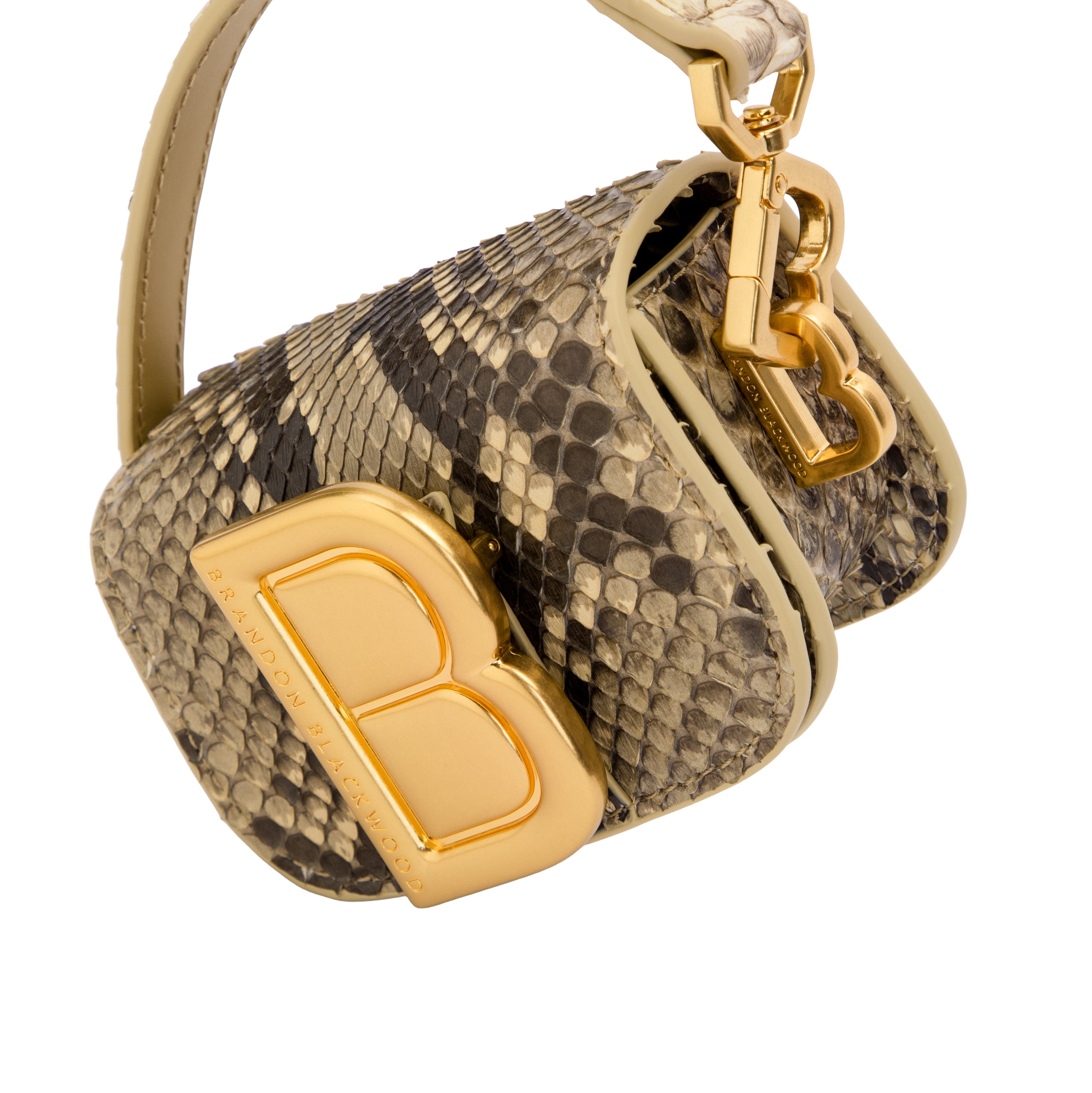 Our Click Bag in Light Brown Snakeskin with Brass Hardware