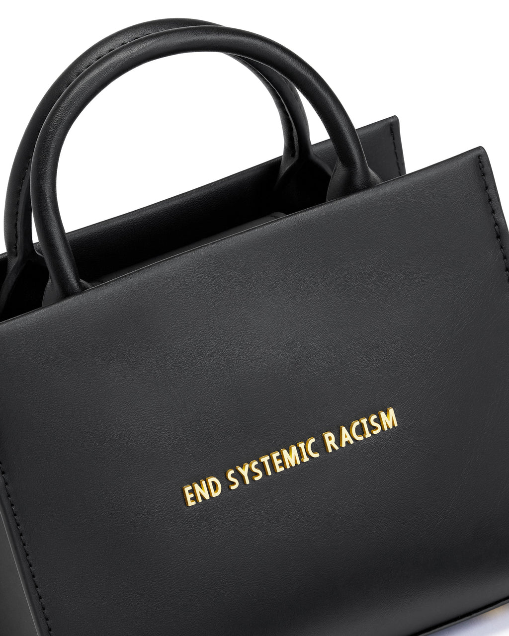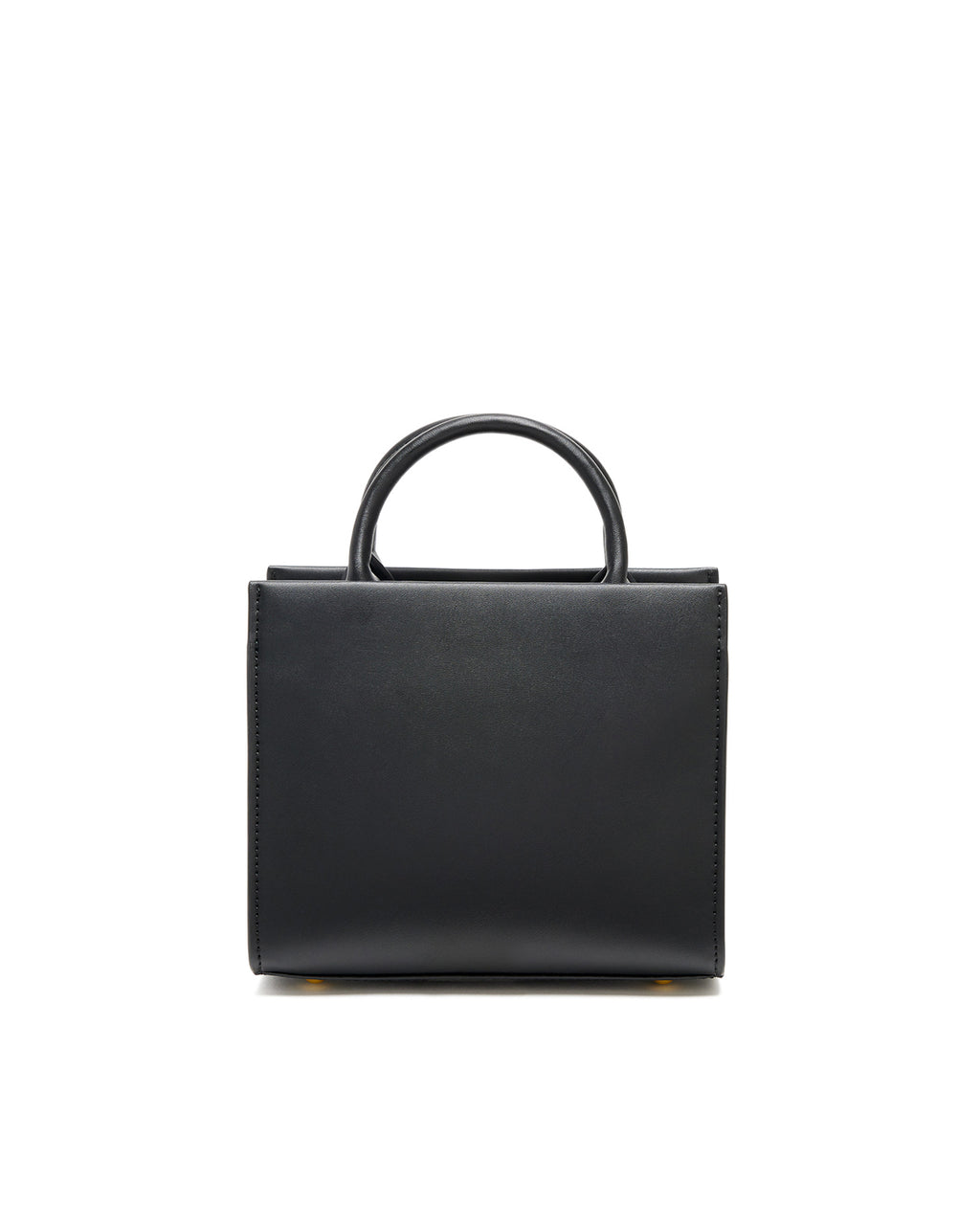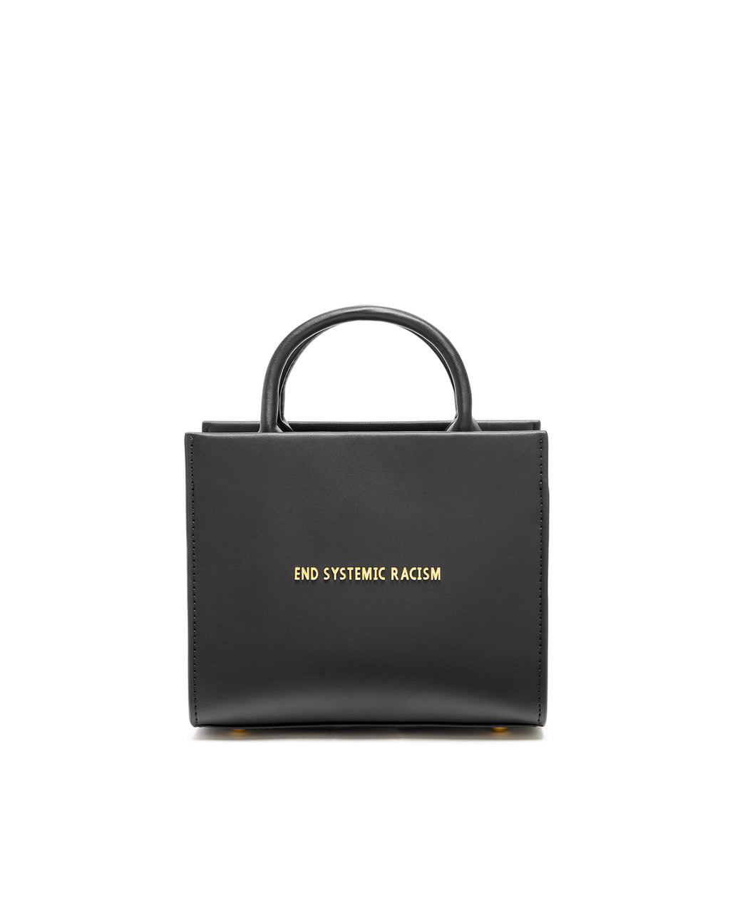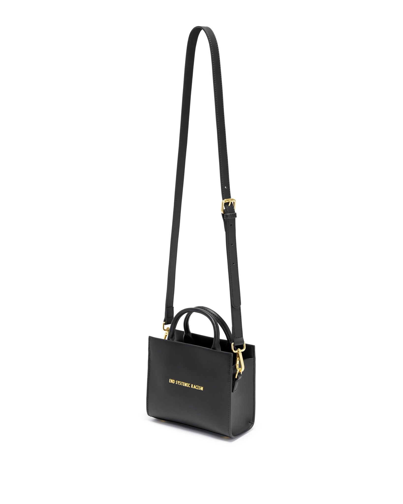 Our Iconic ESR Tote in Black Smooth Apple Leather with Brass Hardware.