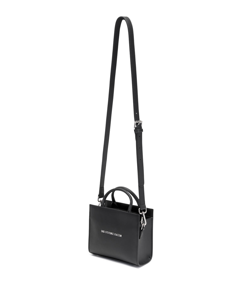Our Iconic ESR Tote in Black Smooth Apple Leather with Silver Hardware