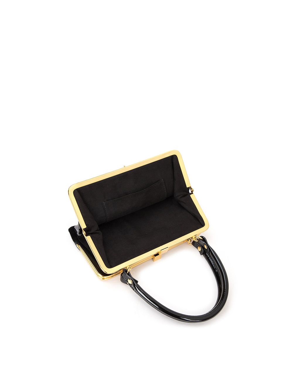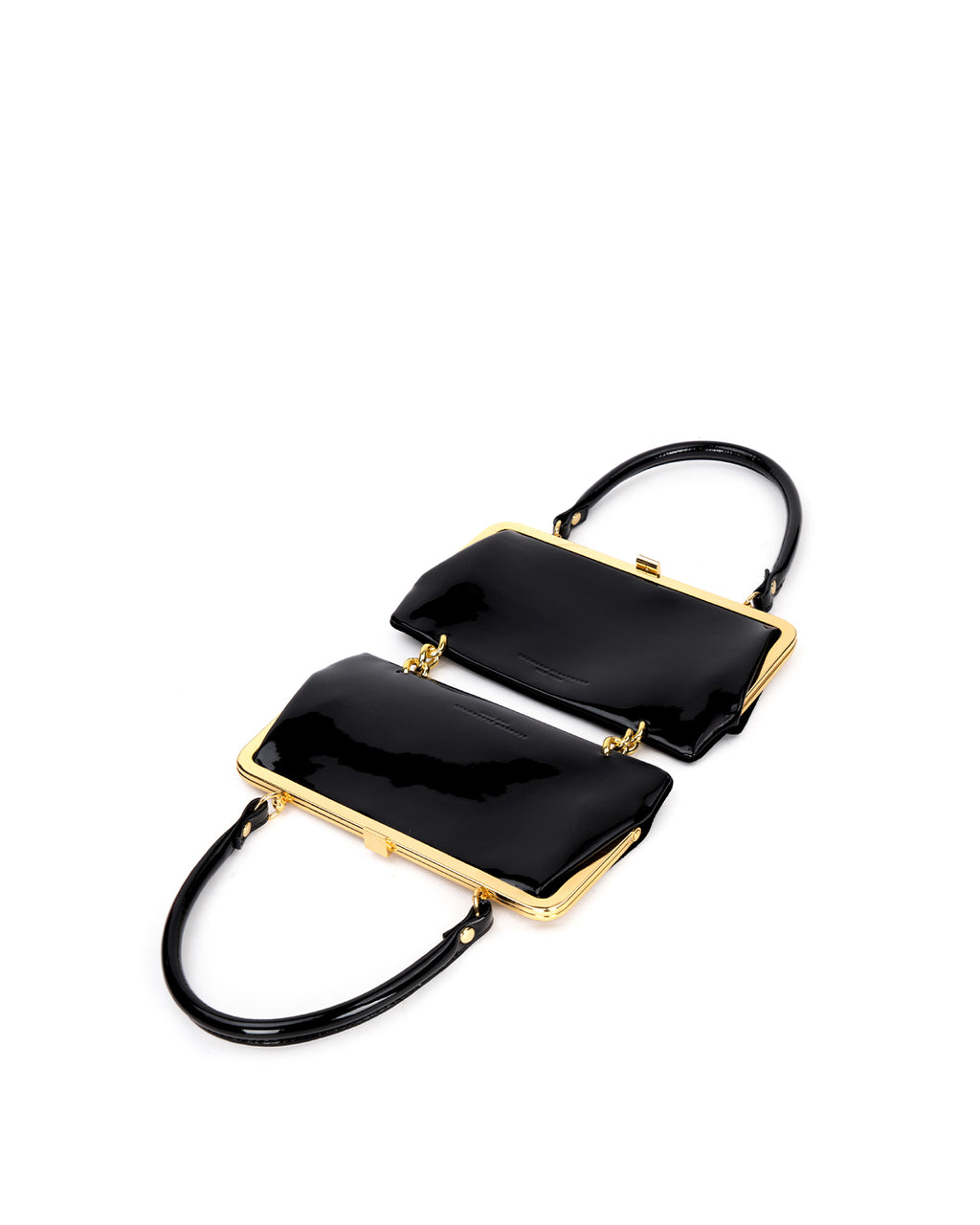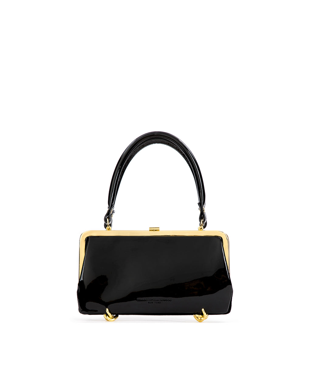 Our Gemini Purse in Black Patent Leather and Suede with Brass Hardware Hardware