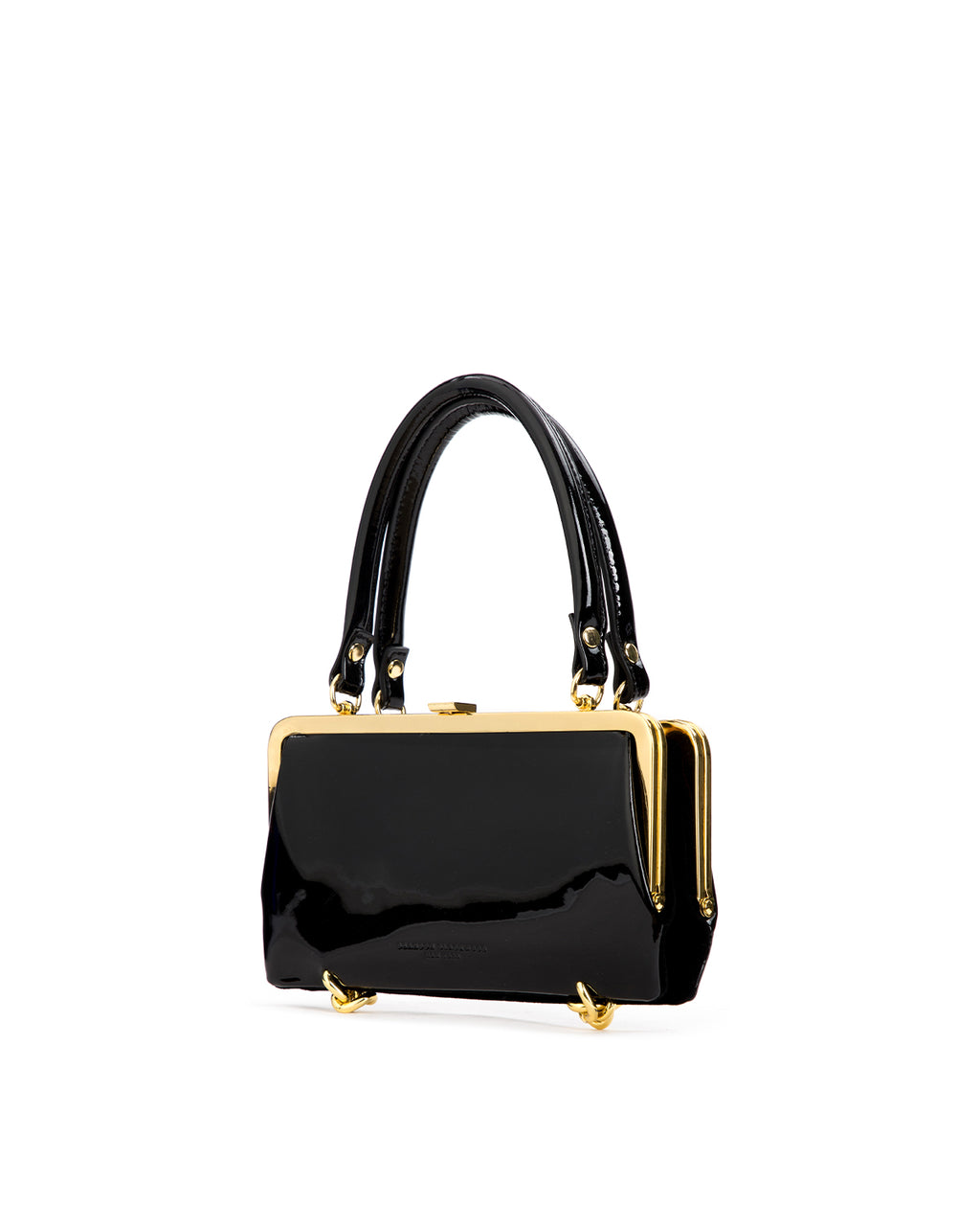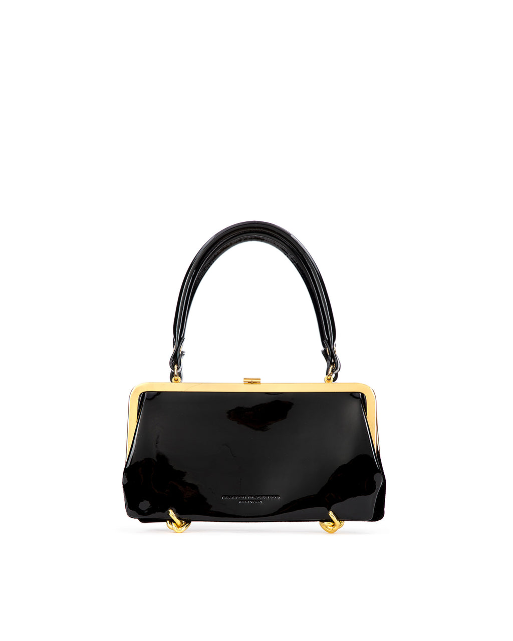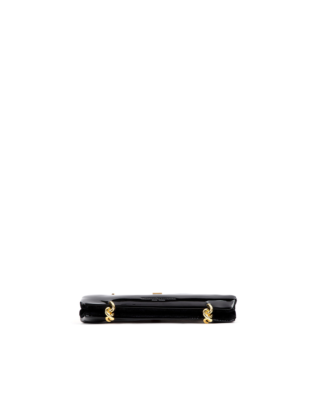 Our Gemini Purse in Black Patent Leather and Suede with Brass Hardware Hardware