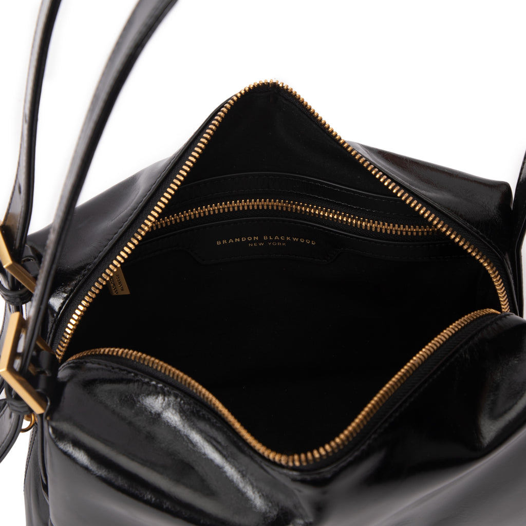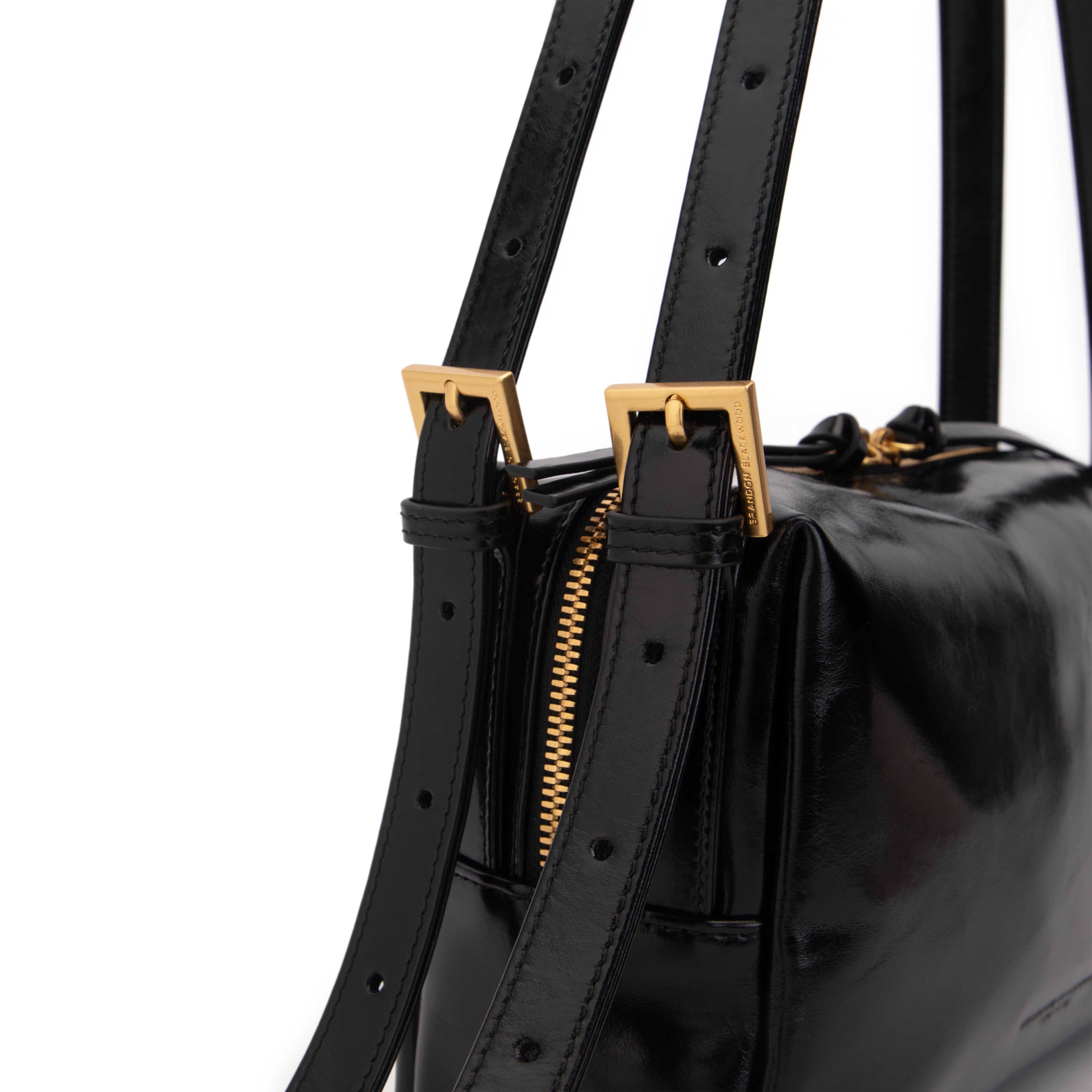 Our Jemma Bag in Black Oiled Leather with Brass Gold Hardware