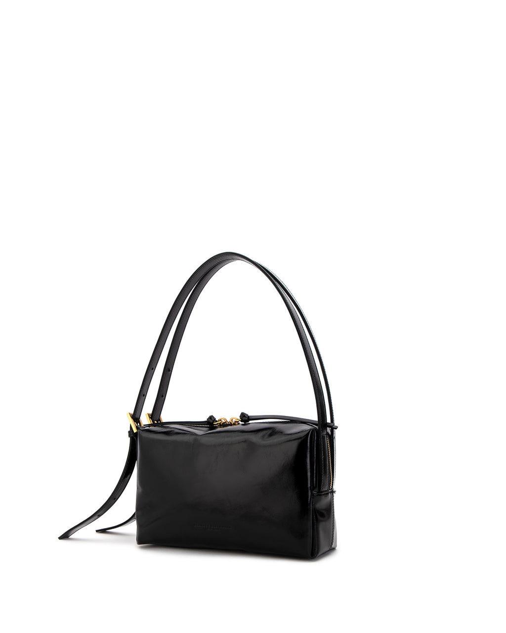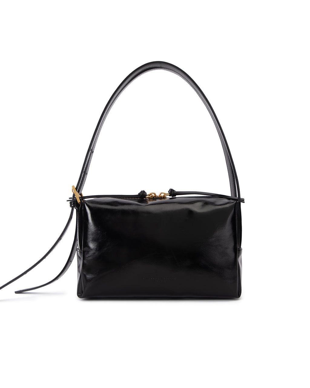 Sleek and striking with a modern finish. The Jemma Bag in Black Oiled Leather is crafted from smooth, high-shine leather and finished with polished gold hardware. Its structured form, double straps, and generous interior make it a polished daily go-to.