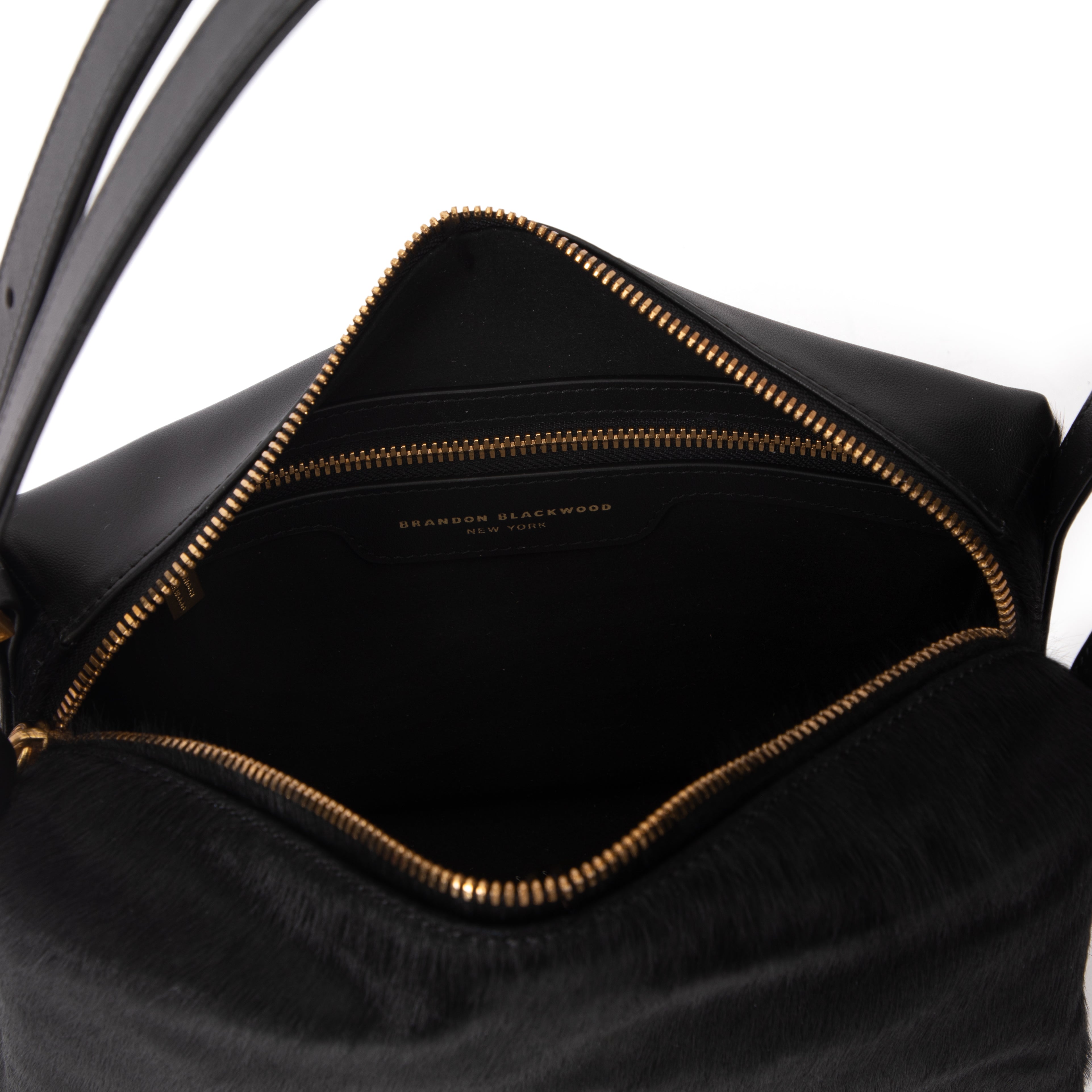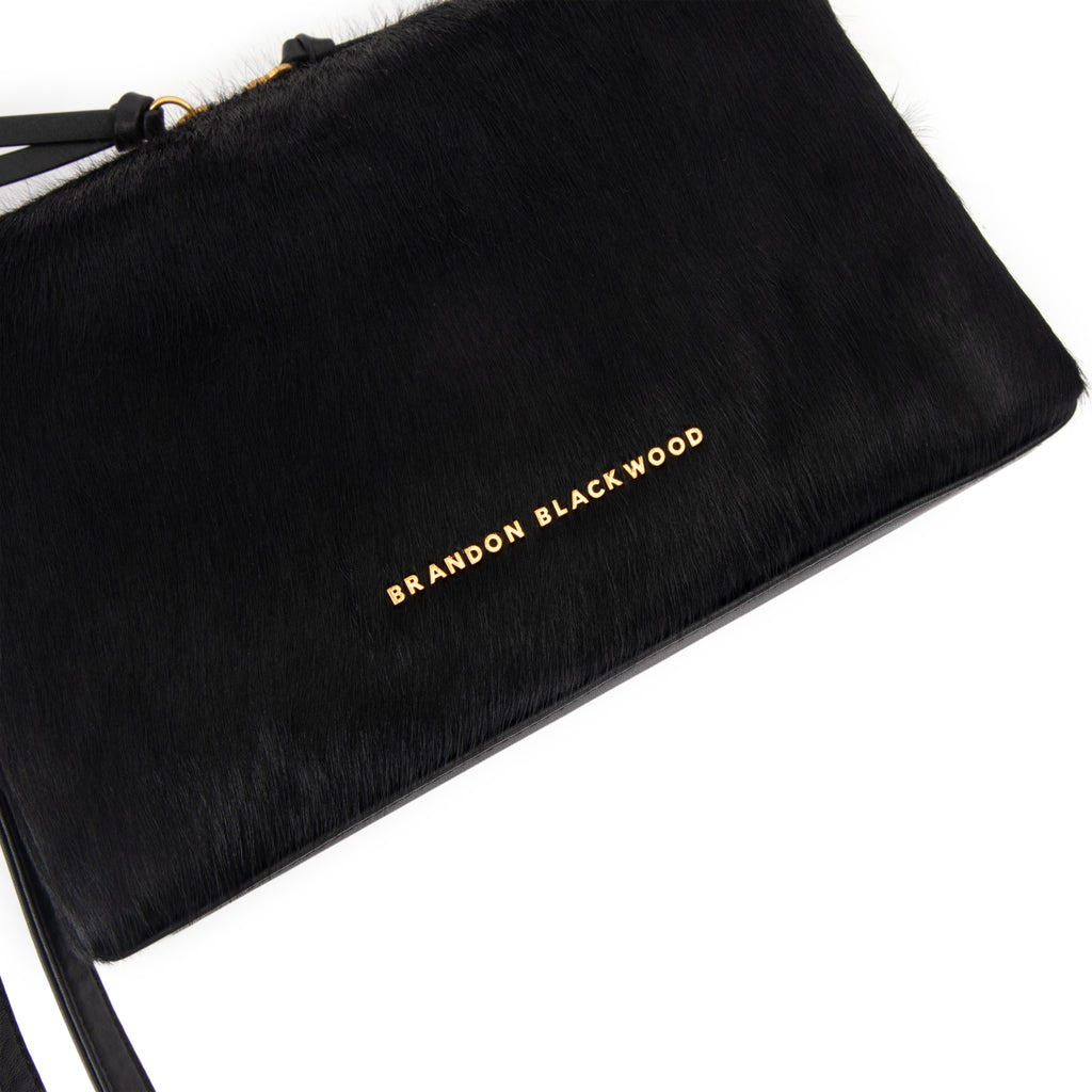 Our Jemma Bag in Black Ponyhair with Brass Gold Hardware