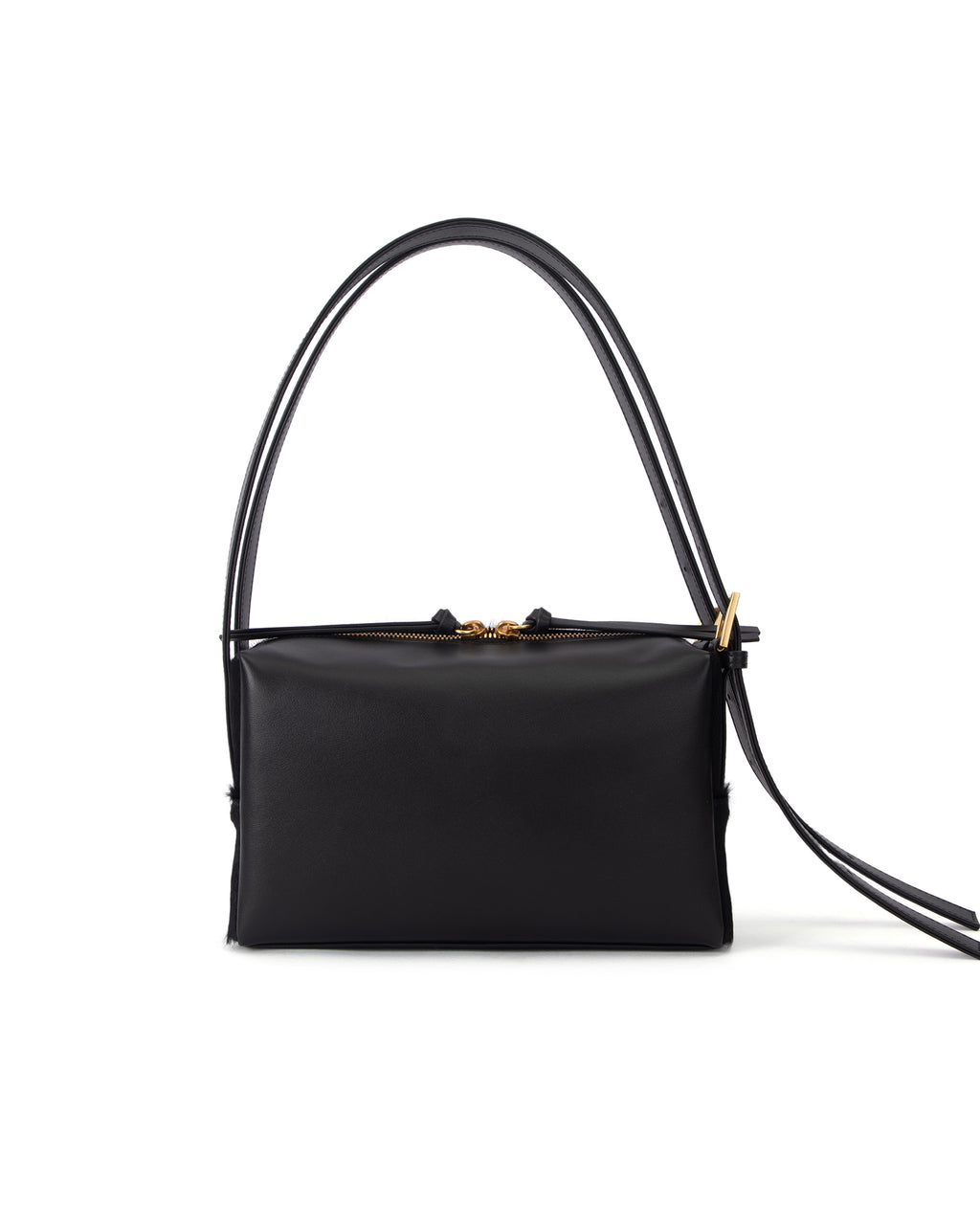 A bold, textural take on a sleek silhouette. The Jemma Bag in Black Ponyhair pairs a structured design with a dimensional ponyhair exterior and polished gold hardware. Finished with its signature double straps, it blends sophistication with a modern edge.