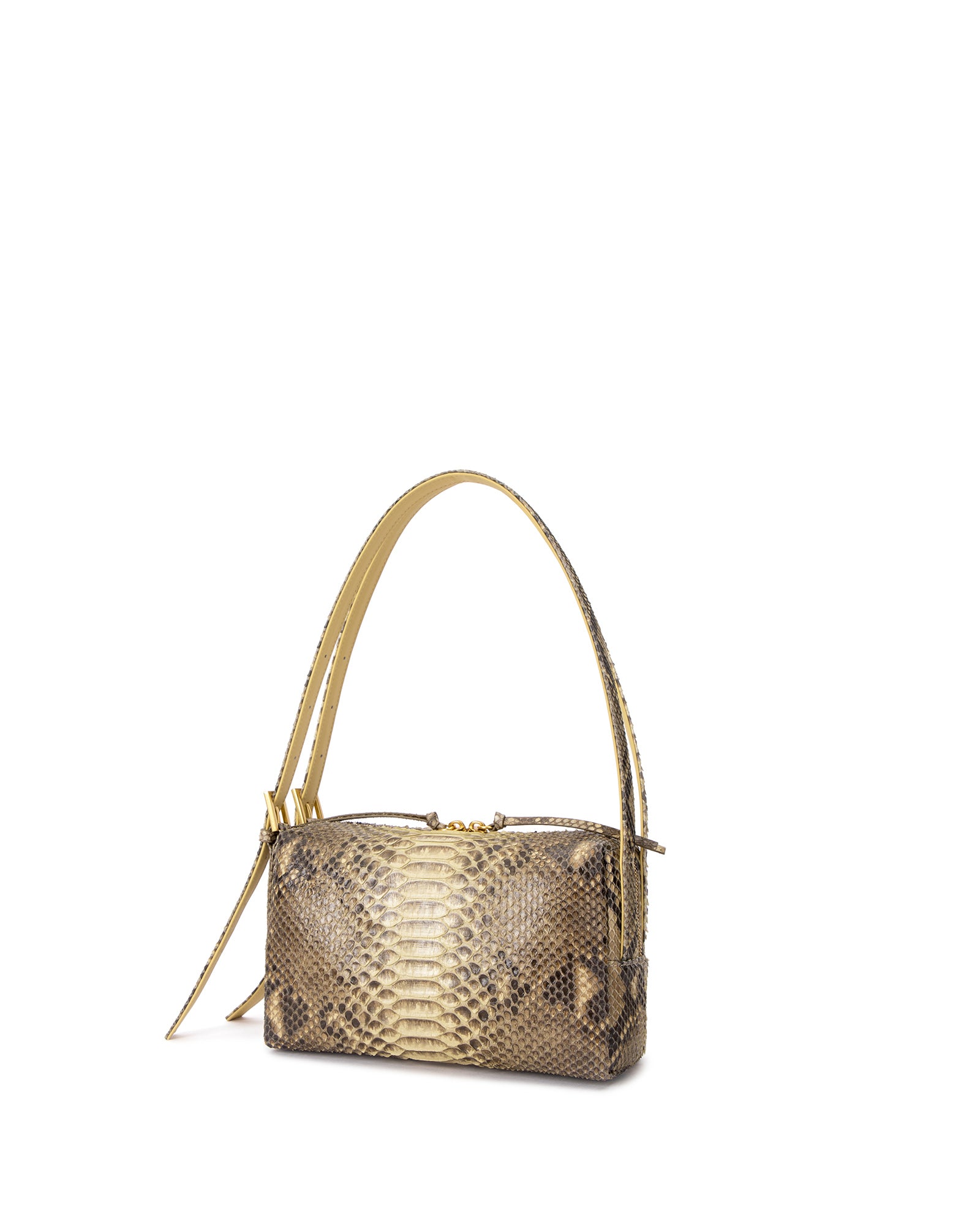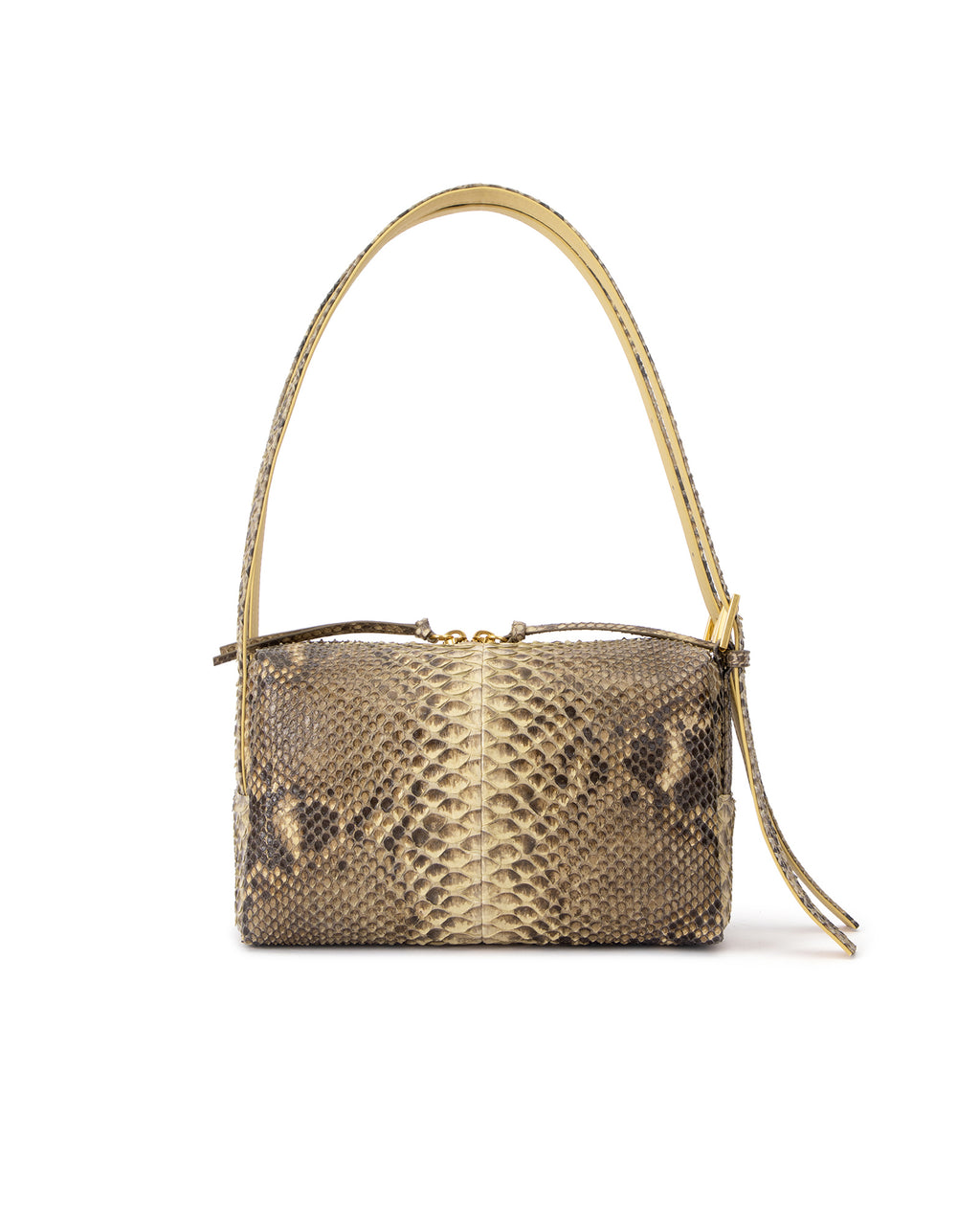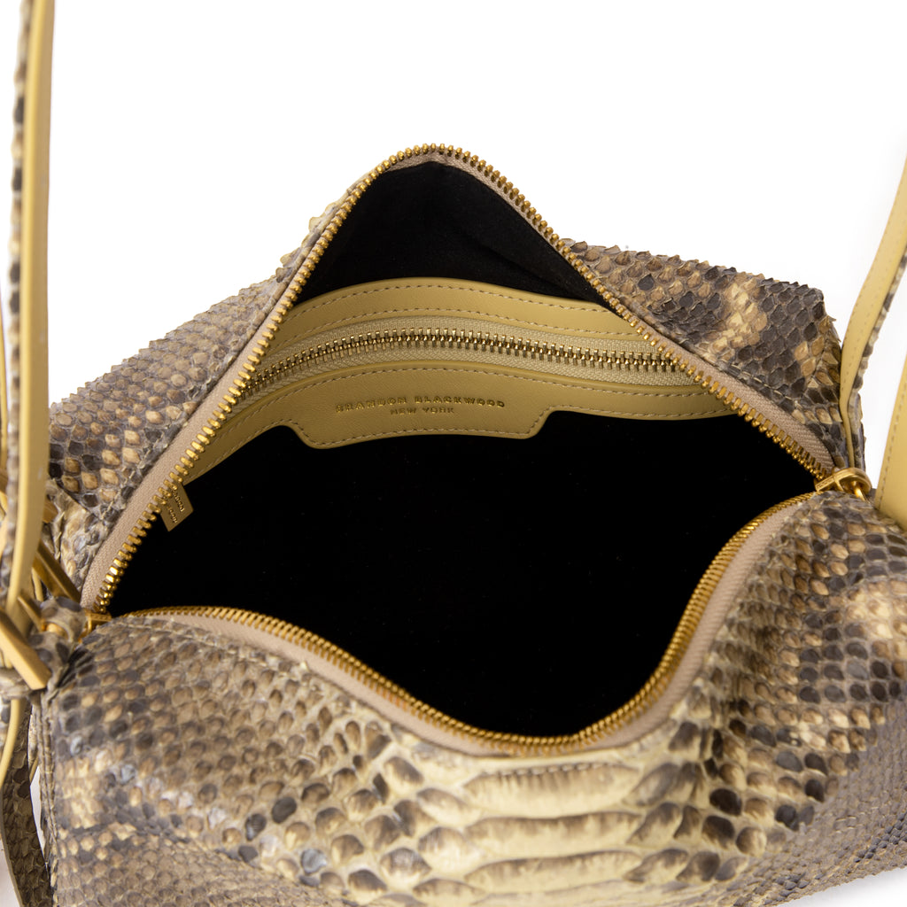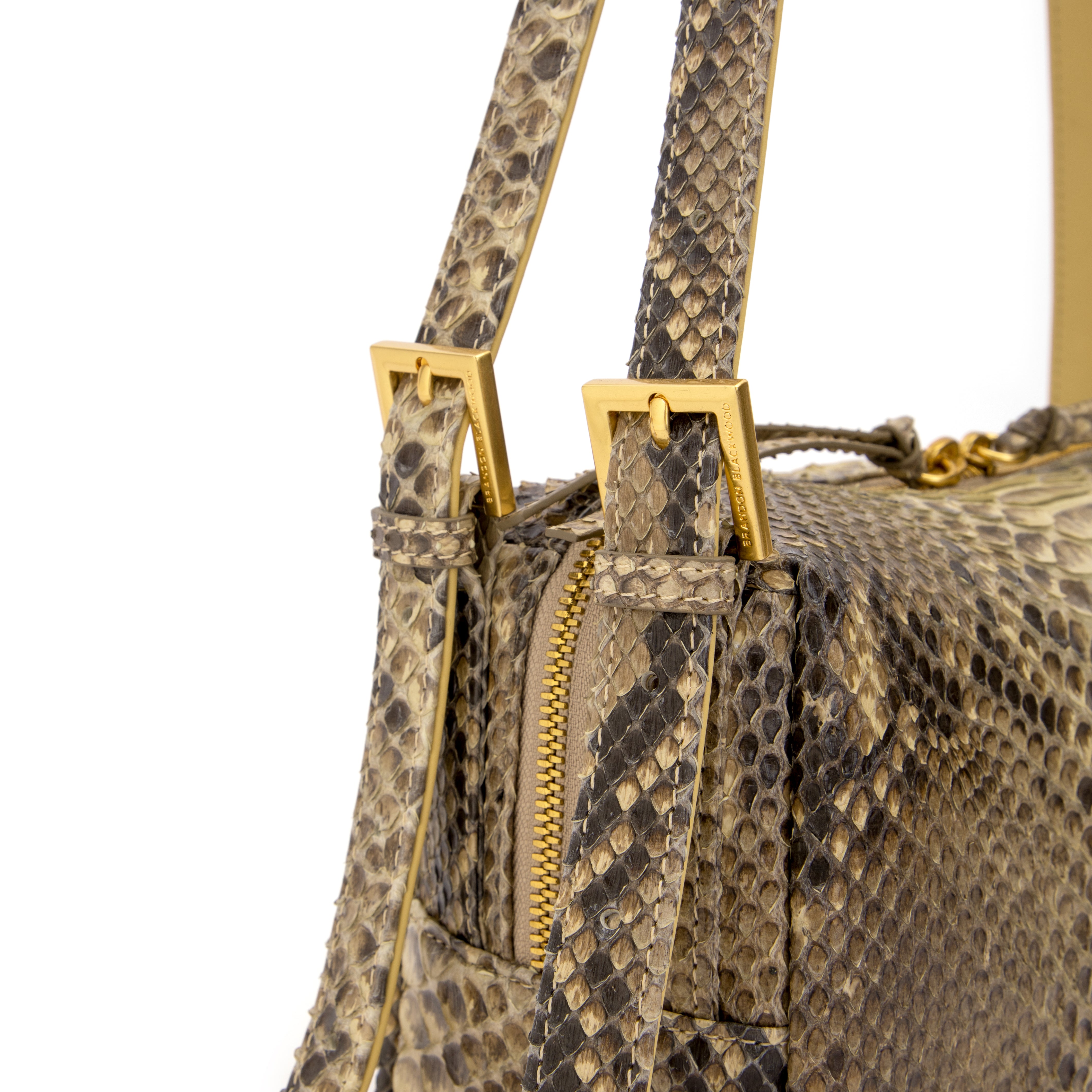 Our Jemma Bag in Light Brown Snakeskin with Brass Gold Hardware
