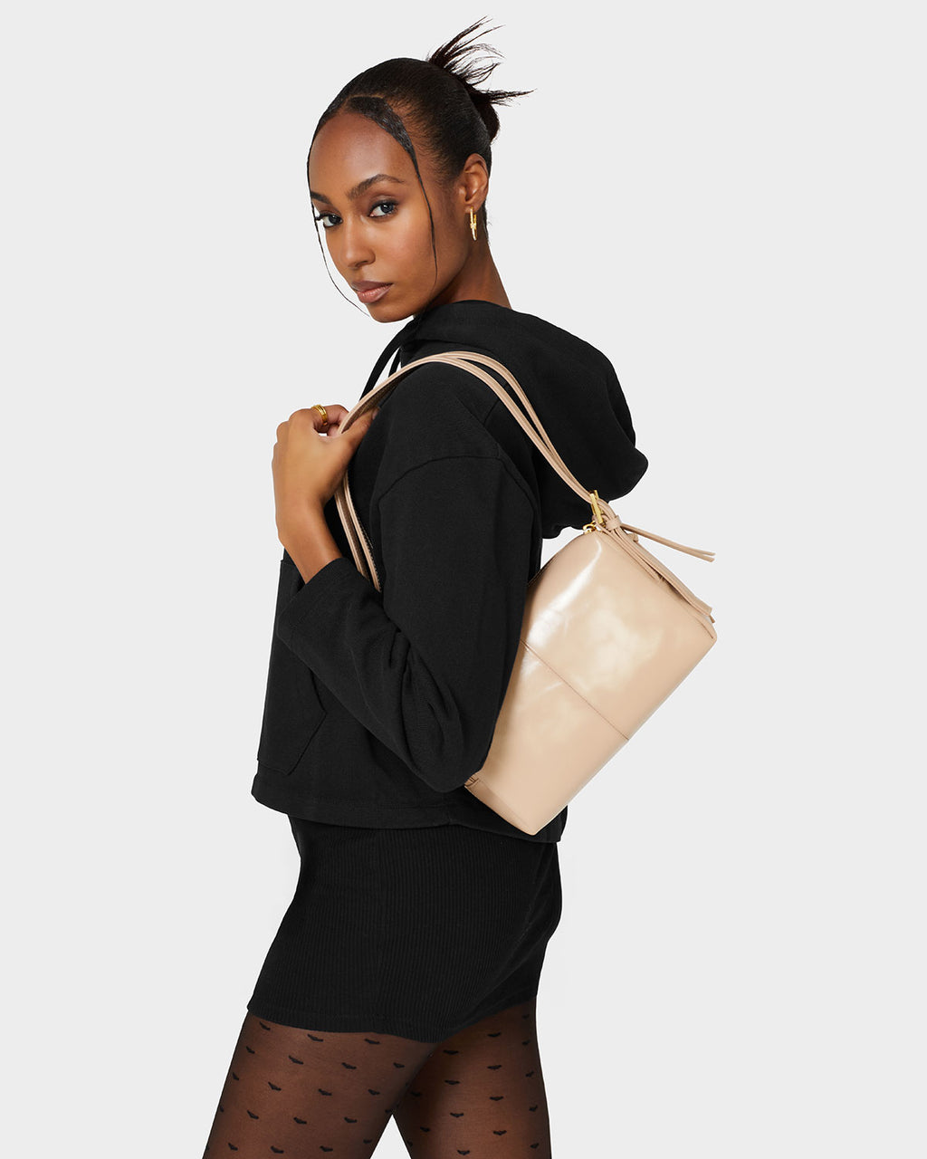 A soft neutral in a sharp silhouette. The Jemma Bag in Oat Oiled Leather features a smooth, glossy finish paired with polished gold hardware. Its structured shape and double-strap design make it both modern and timeless.
