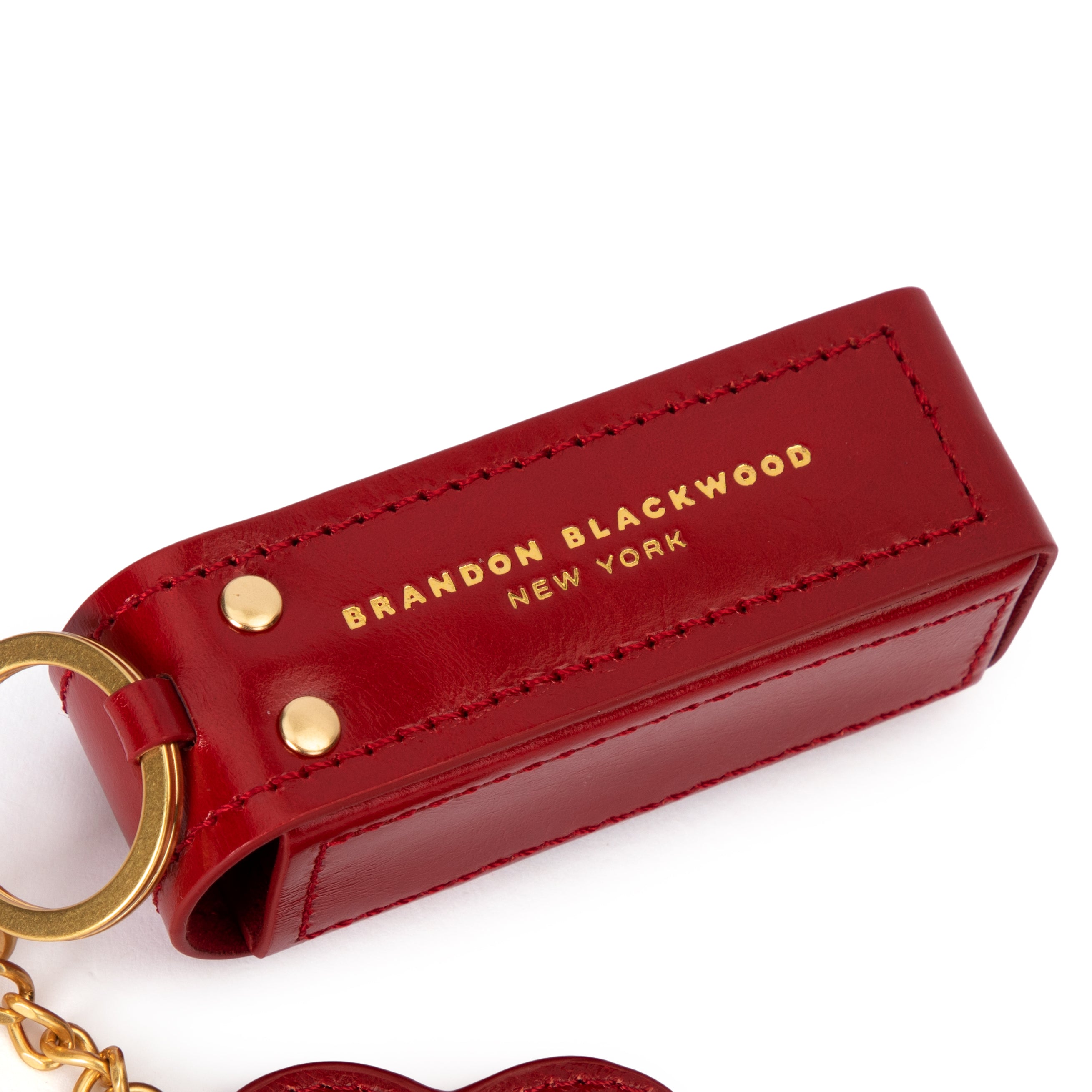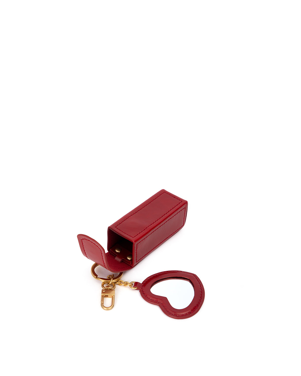 A timeless statement piece in a striking hue. The Lipstick Case Bag Charm in Red Oiled Leather combines bold color with a sleek, structured design. Finished with polished brass hardware, it’s the perfect way to carry your favorite lipstick or gloss in style.