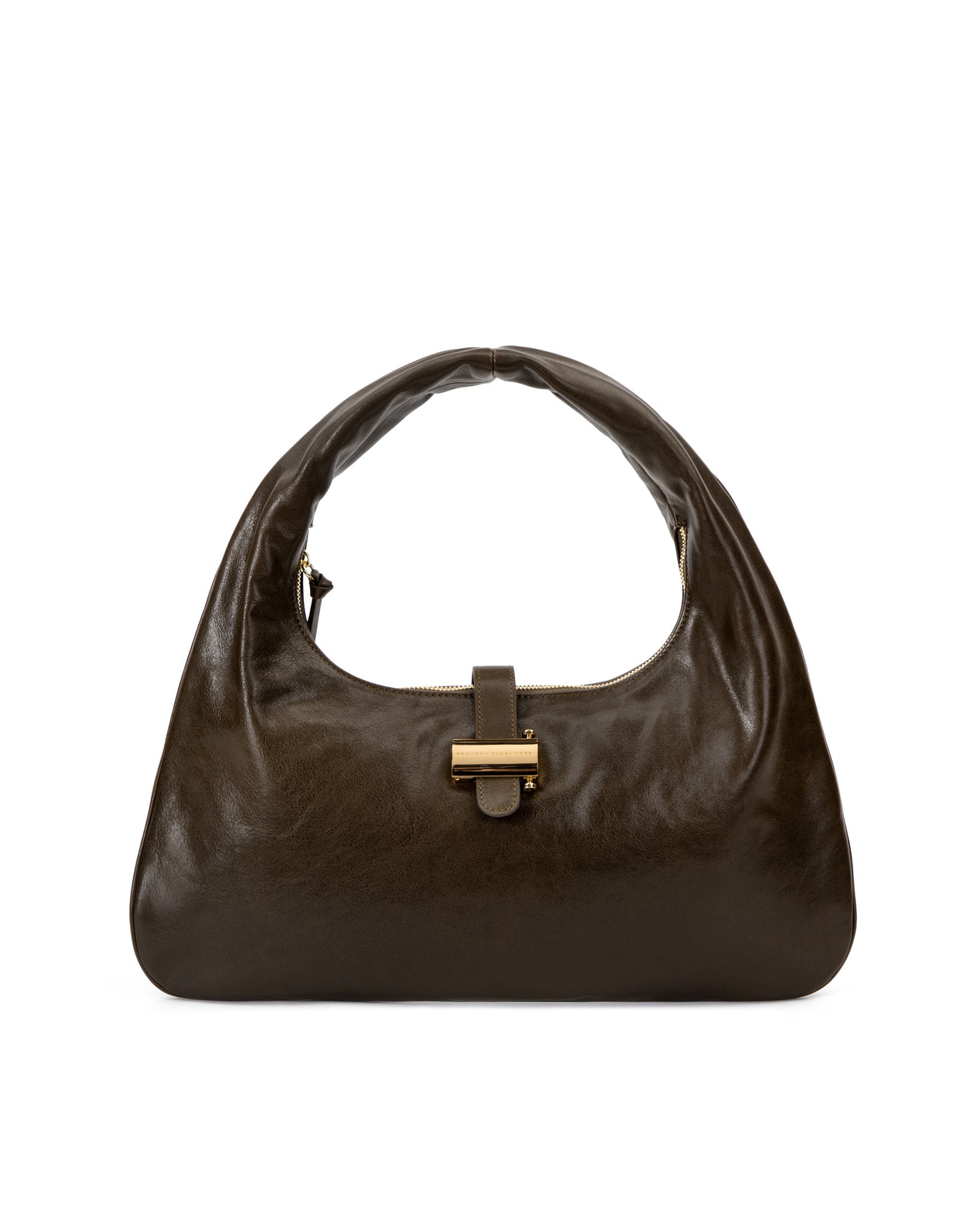 Our Medium Kobi Bag in Olive Smooth Leather with Brass Hardware