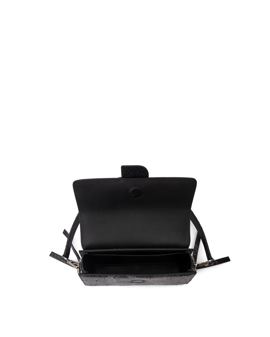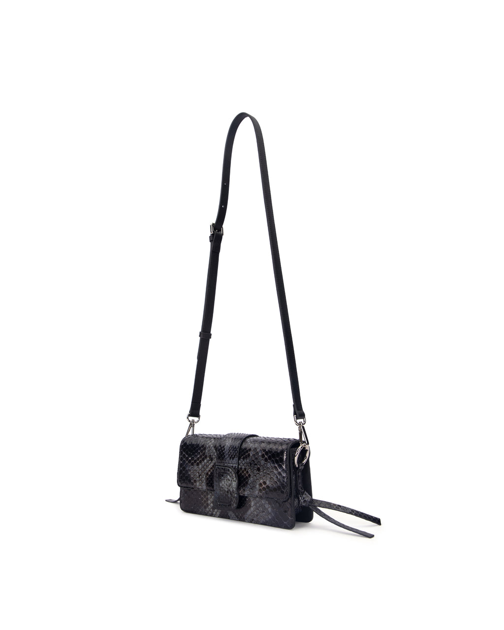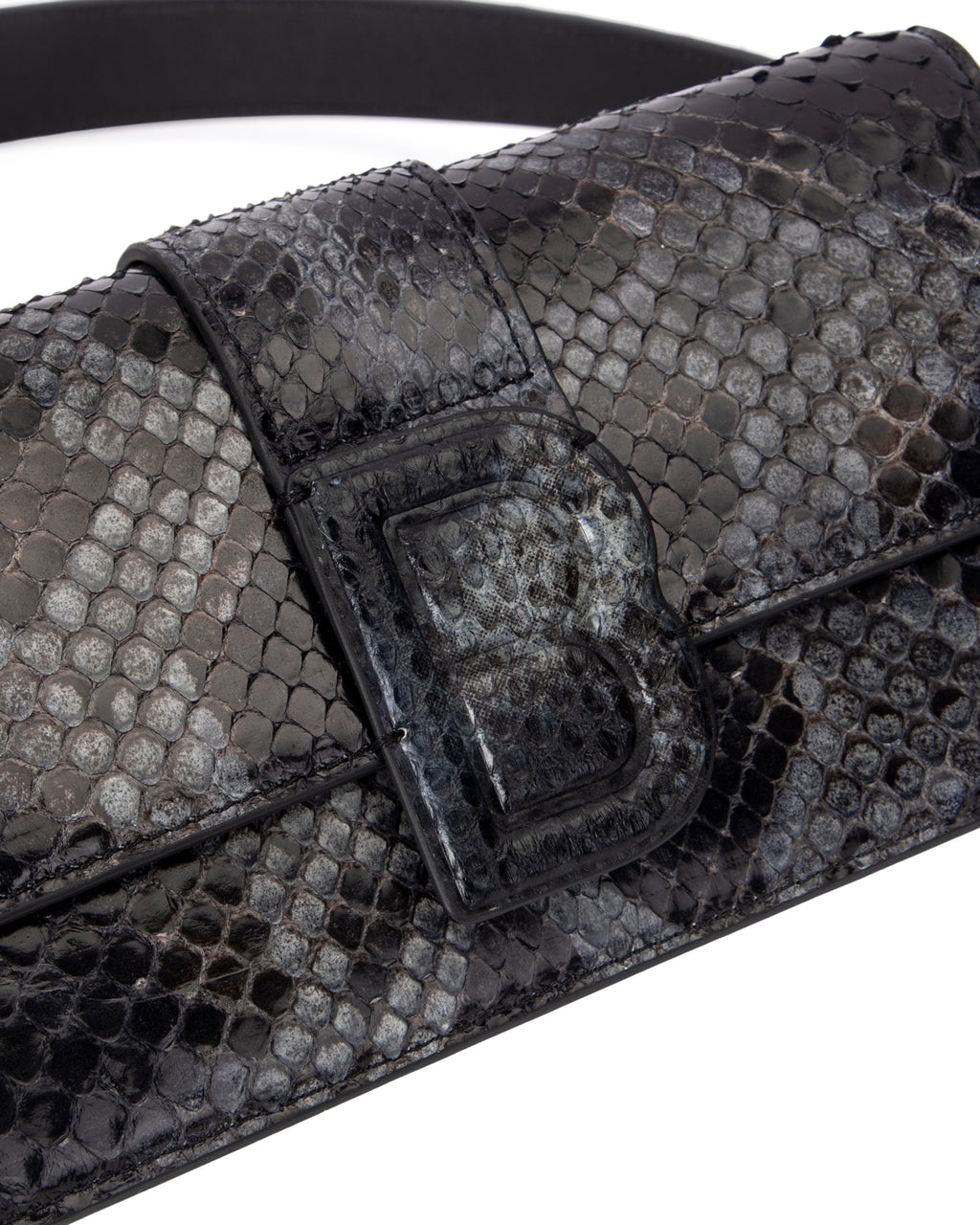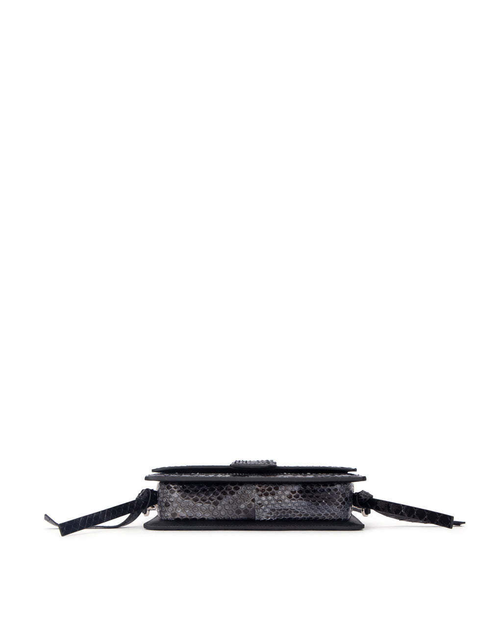 Our Medium Nia Bag in Black and Silver Snakeskin with Silver Hardware