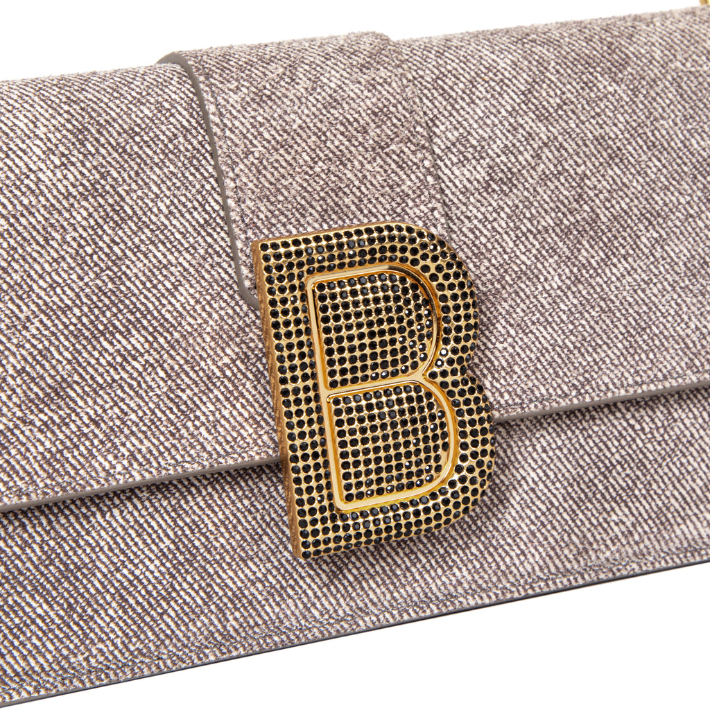 Turn heads with the effortlessly chic Medium Nia Handbag. This stylish accessory in Brown Denim Suede features a stunning Crystal 'B' Buckle that adds a touch of glamour to any outfit.
