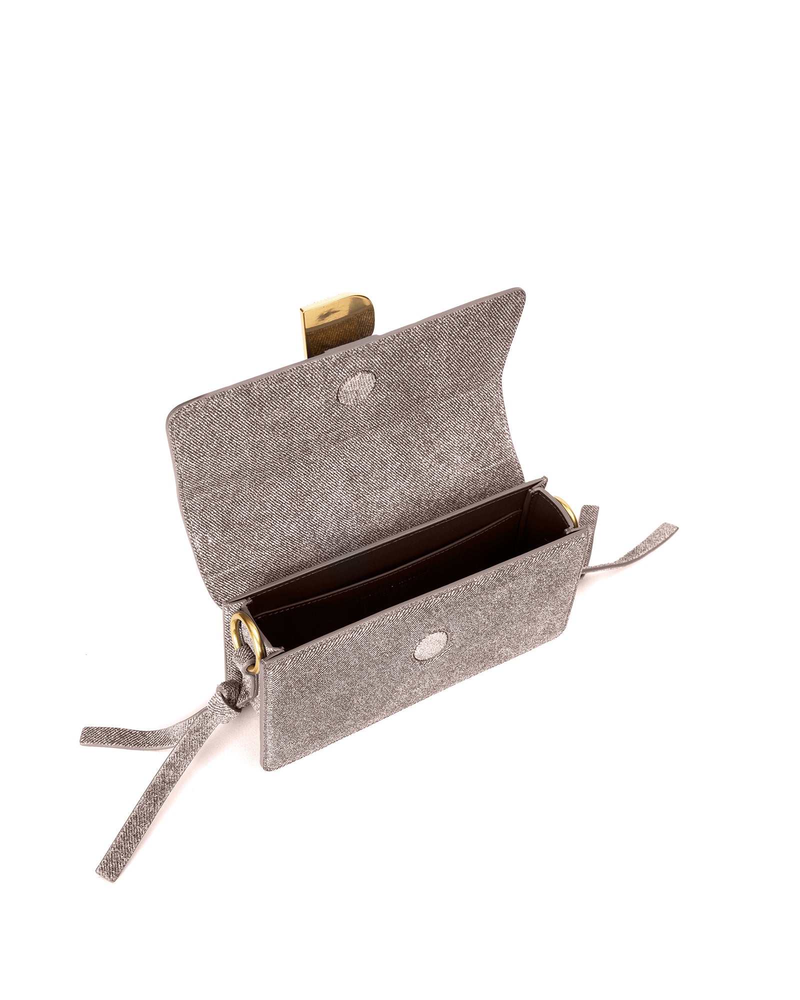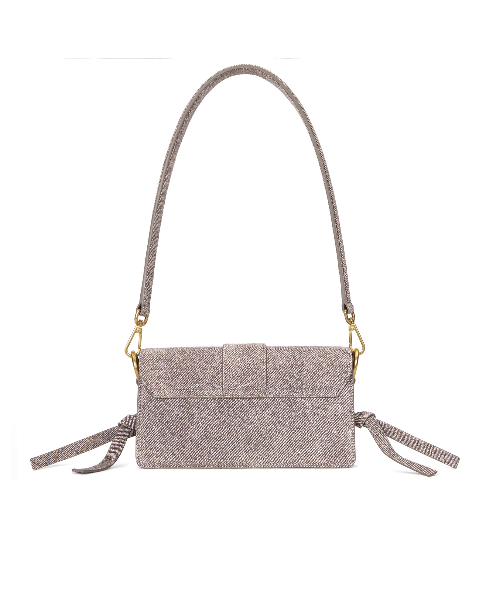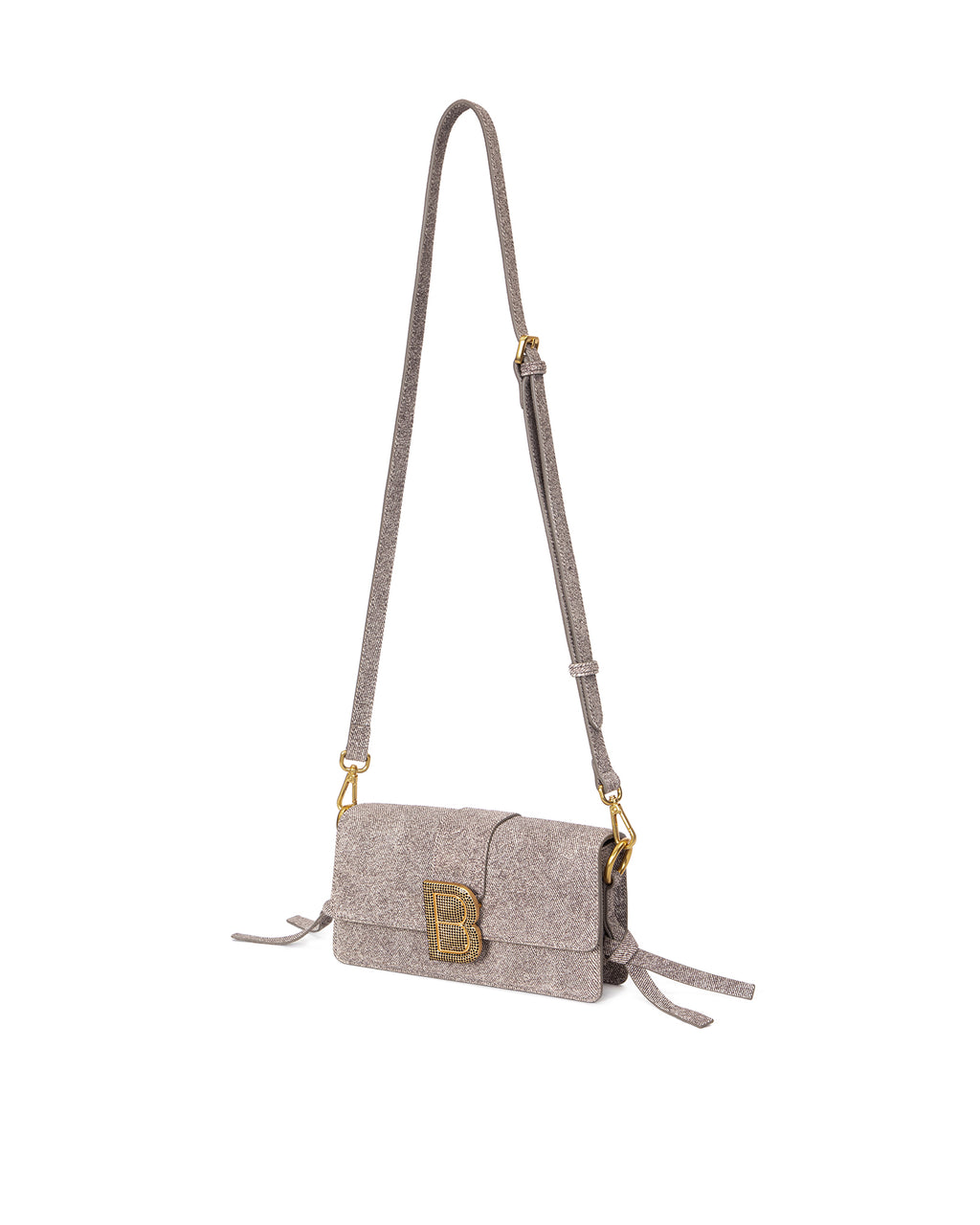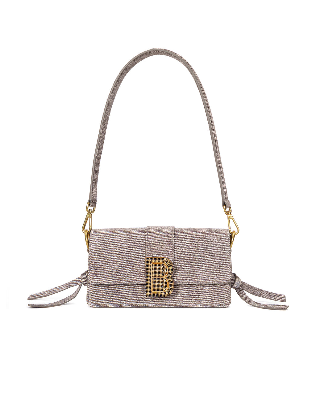Our Medium Nia Bag in Brown Denim Suede with Crystal 'B' Buckle