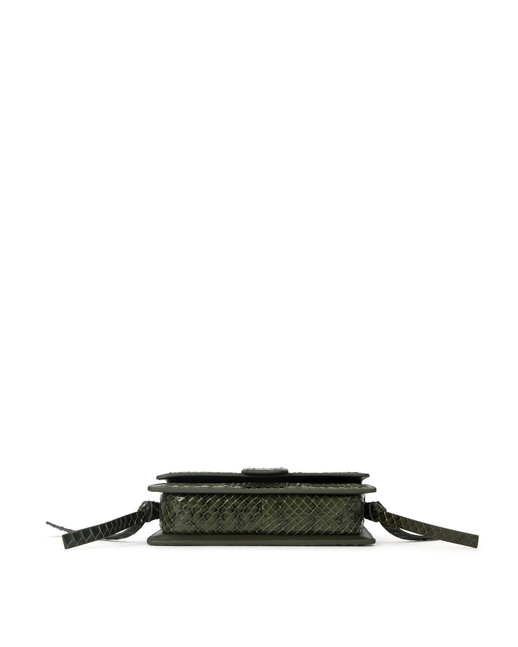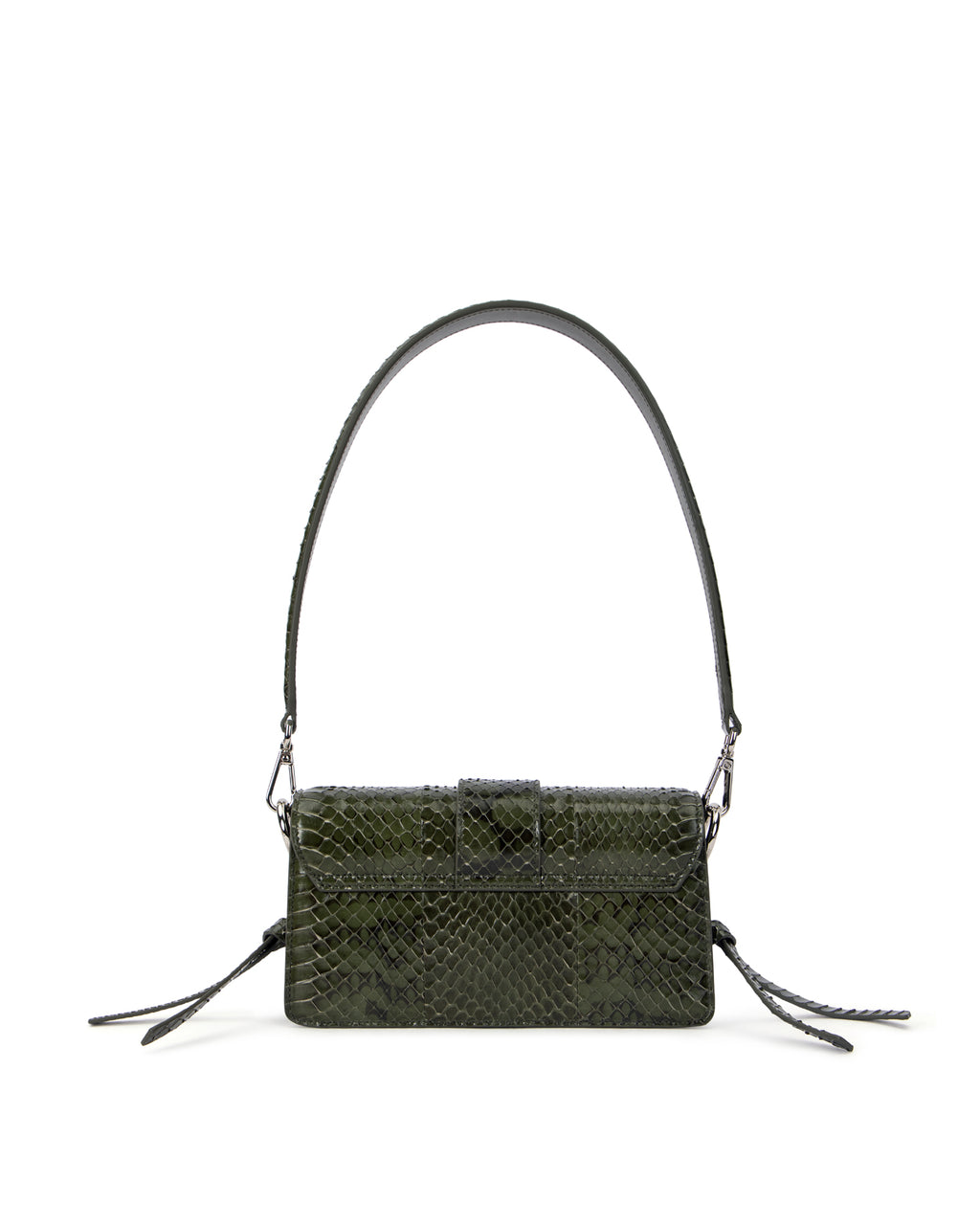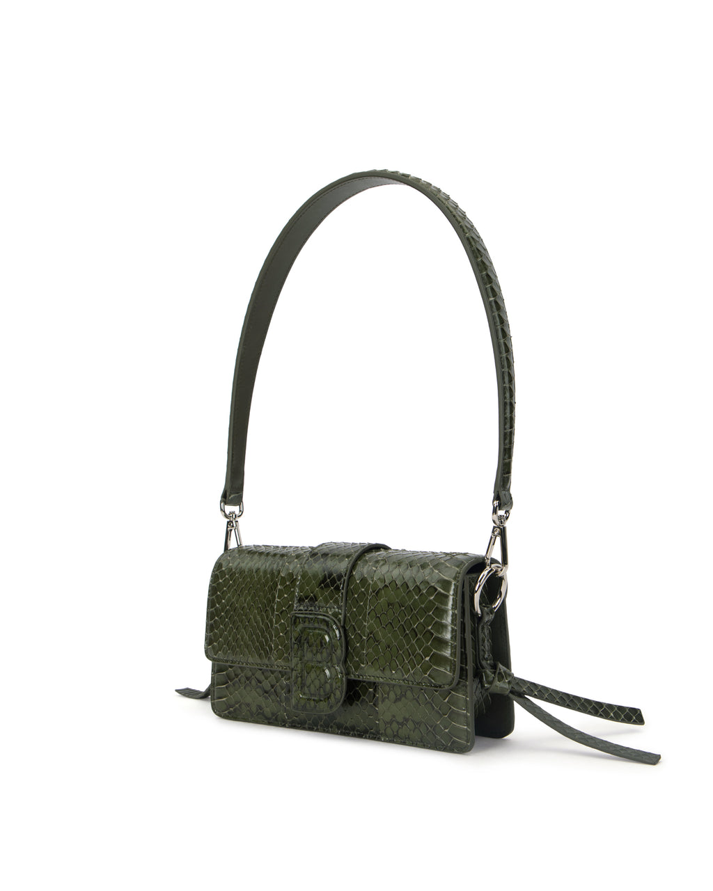 Our Medium Nia Bag in Green Snakeskin with Silver Hardware