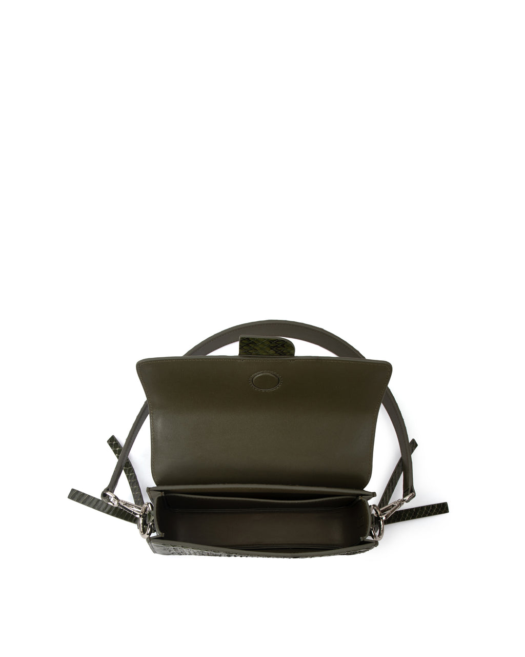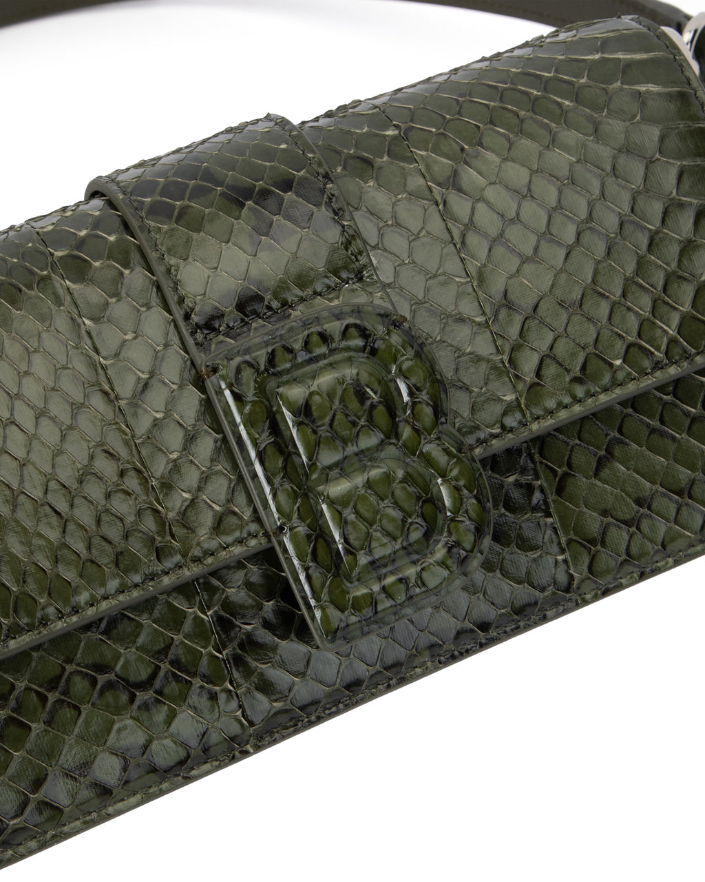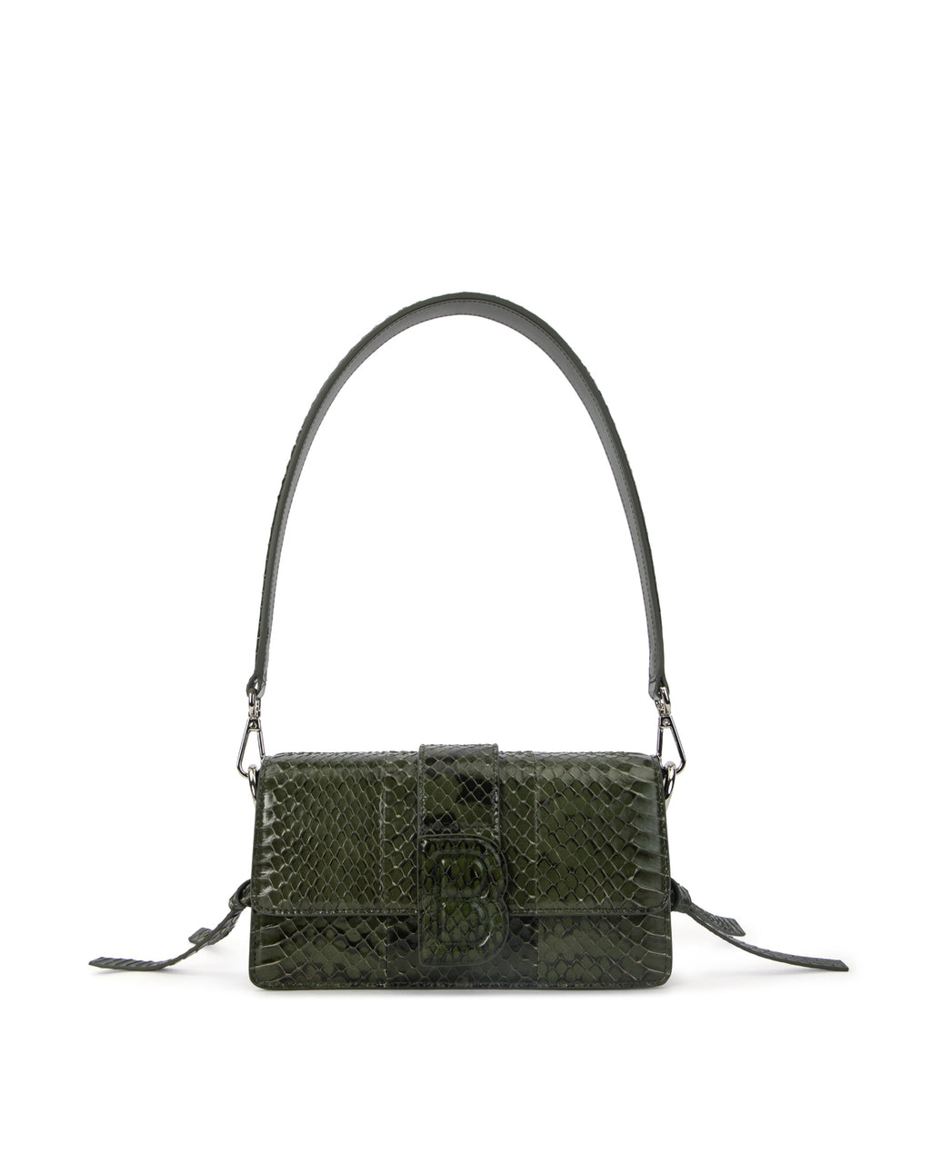 Our Medium Nia Bag in Green Snakeskin with Silver Hardware