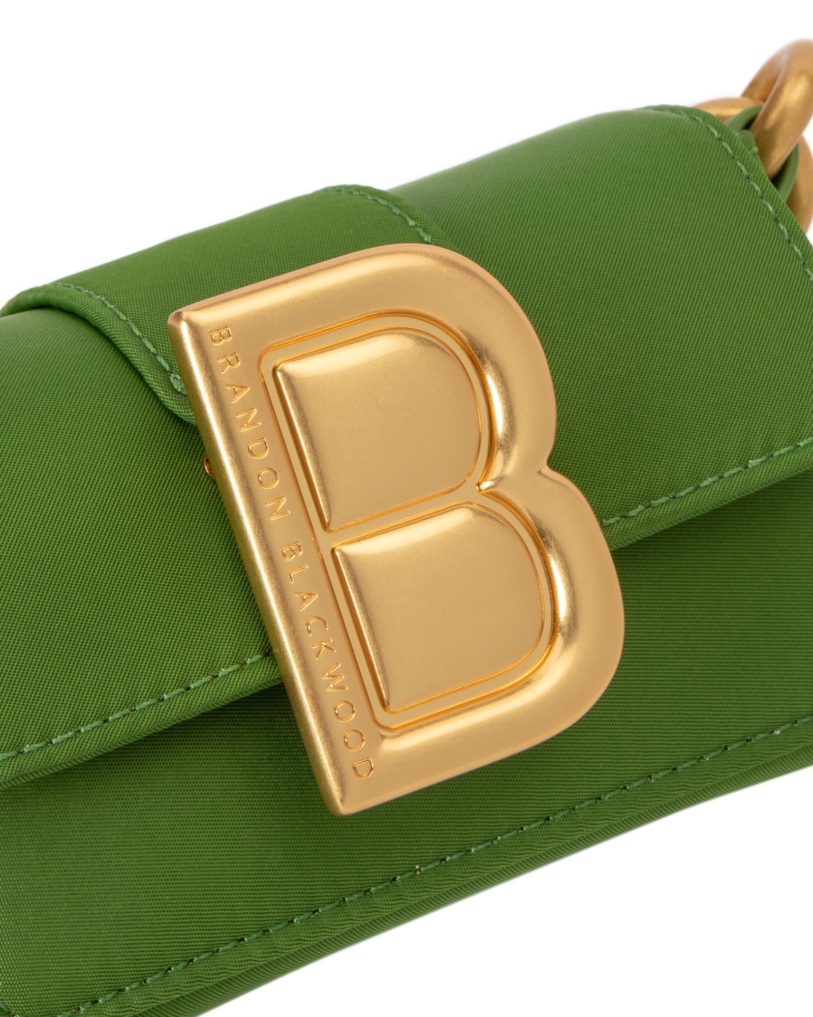 Our Micro Nia Bag in Green Nylon with Brass Hardware