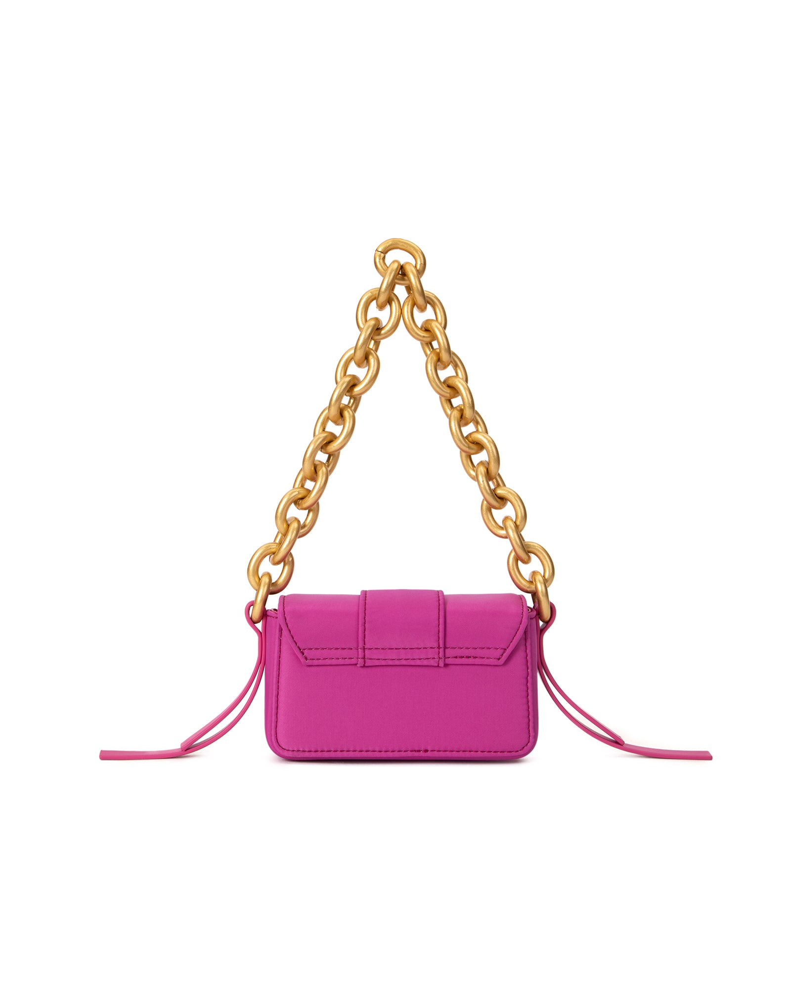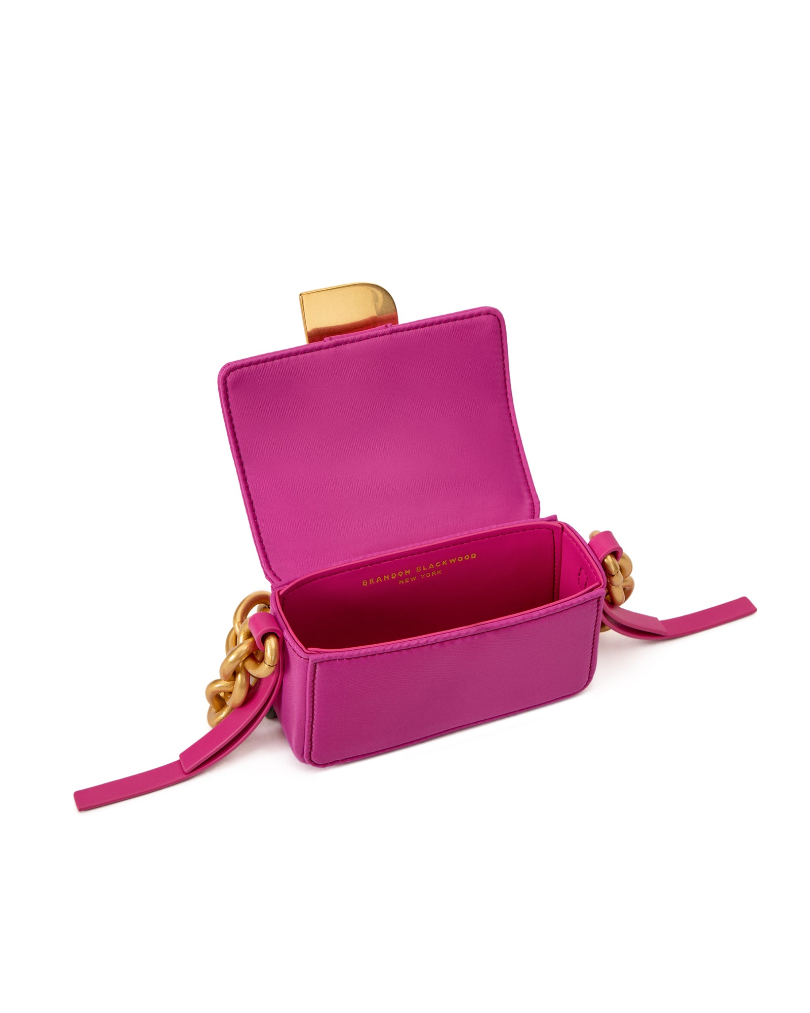 The Micro Nia is the perfect everyday companion, blending fashion-forward flair with exceptional functionality. The bold magenta hue and polished brass hardware make a striking style statement. The perfect mini handbag to add to your collection.