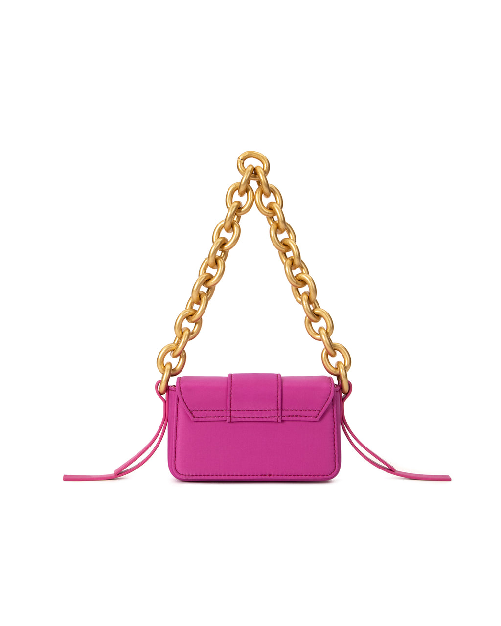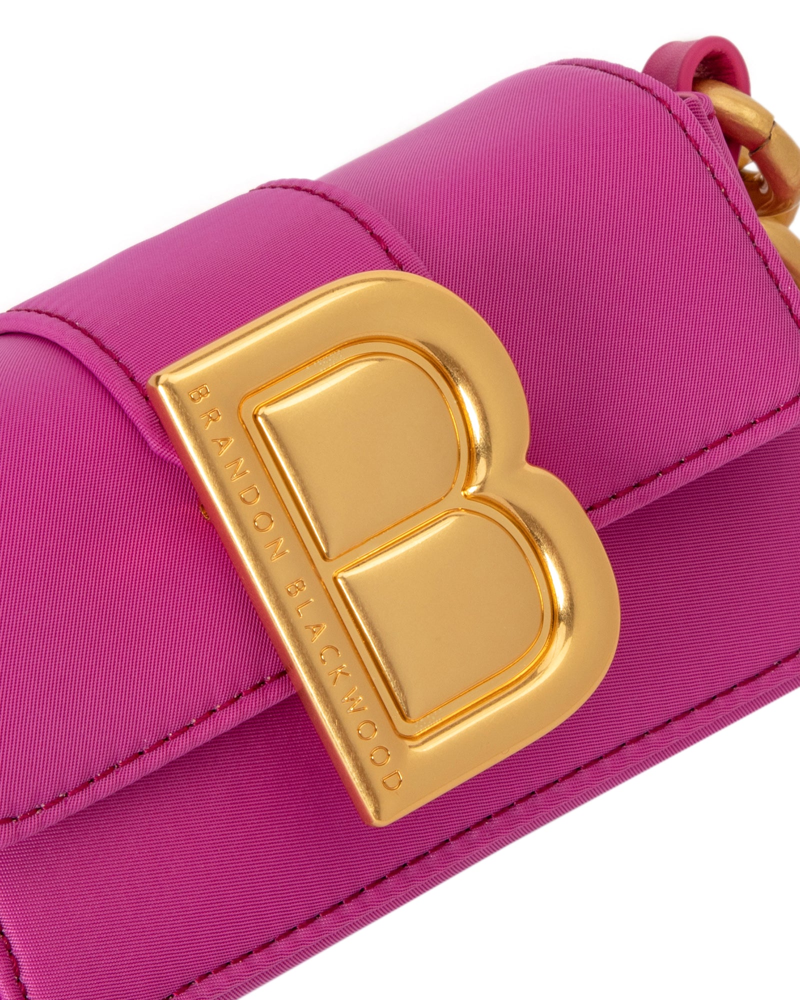 Our Micro Nia Bag in Magenta Nylon with Brass Hardware