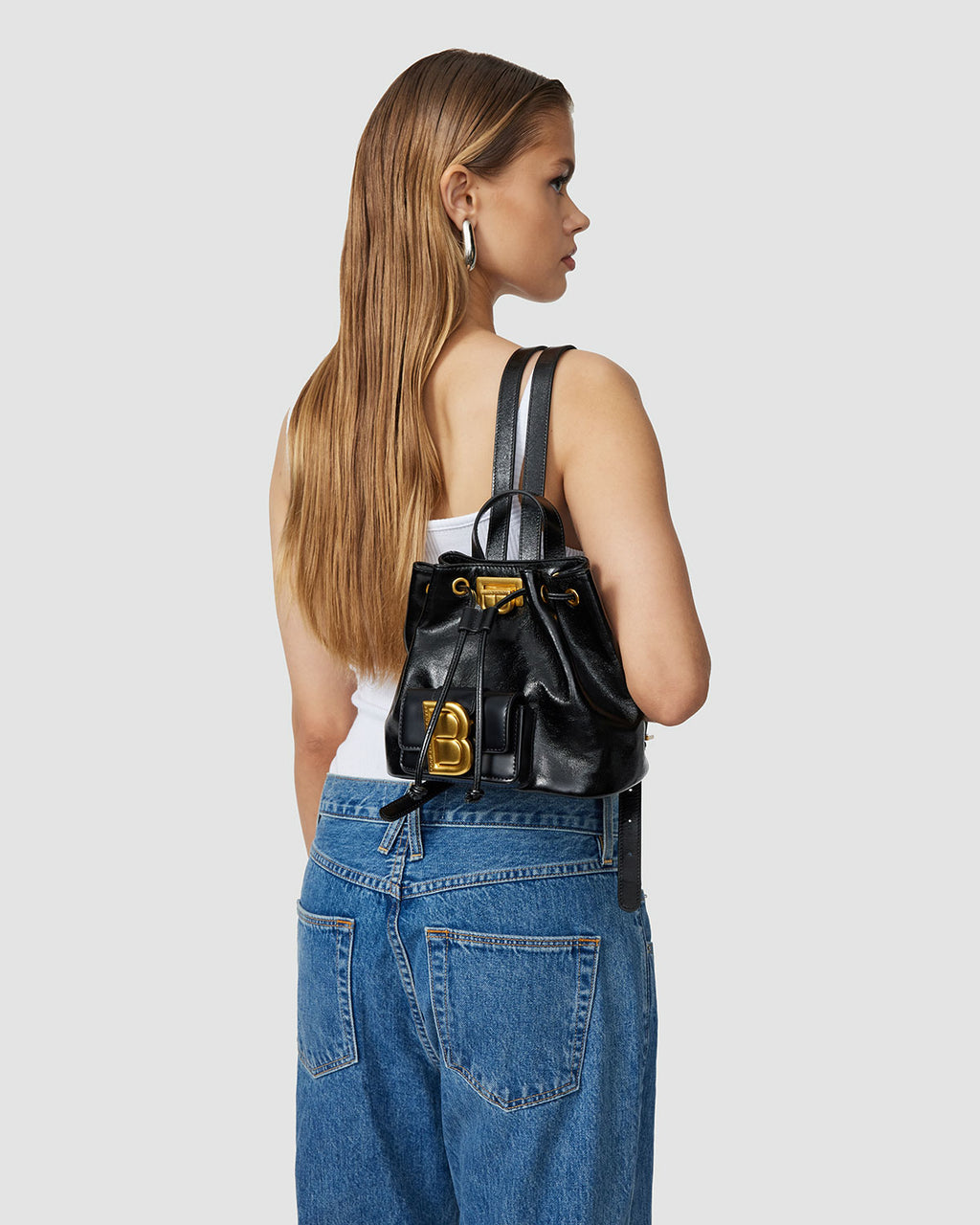 The Midori Backpack pairs sleek black oiled leather with gleaming brass hardware for a timeless take on everyday utility. A minimalist silhouette and drawstring closure keep the design understated, while the front buckle pocket provides easy access to AirPods or small essentials. Equal parts refined and functional, the Midori is built to move effortlessly from city days to weekend escapes.