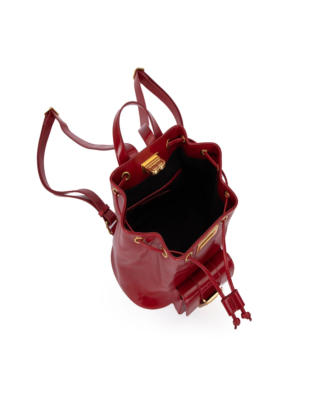 The Midori Backpack stands out in rich red oiled leather, finished with gleaming brass hardware for a bold yet timeless take on everyday utility. A minimalist silhouette and drawstring closure keep the design streamlined, while the front buckle pocket offers quick access to AirPods or small essentials. Equal parts refined and functional, the Midori transitions effortlessly from city days to weekend escapes.