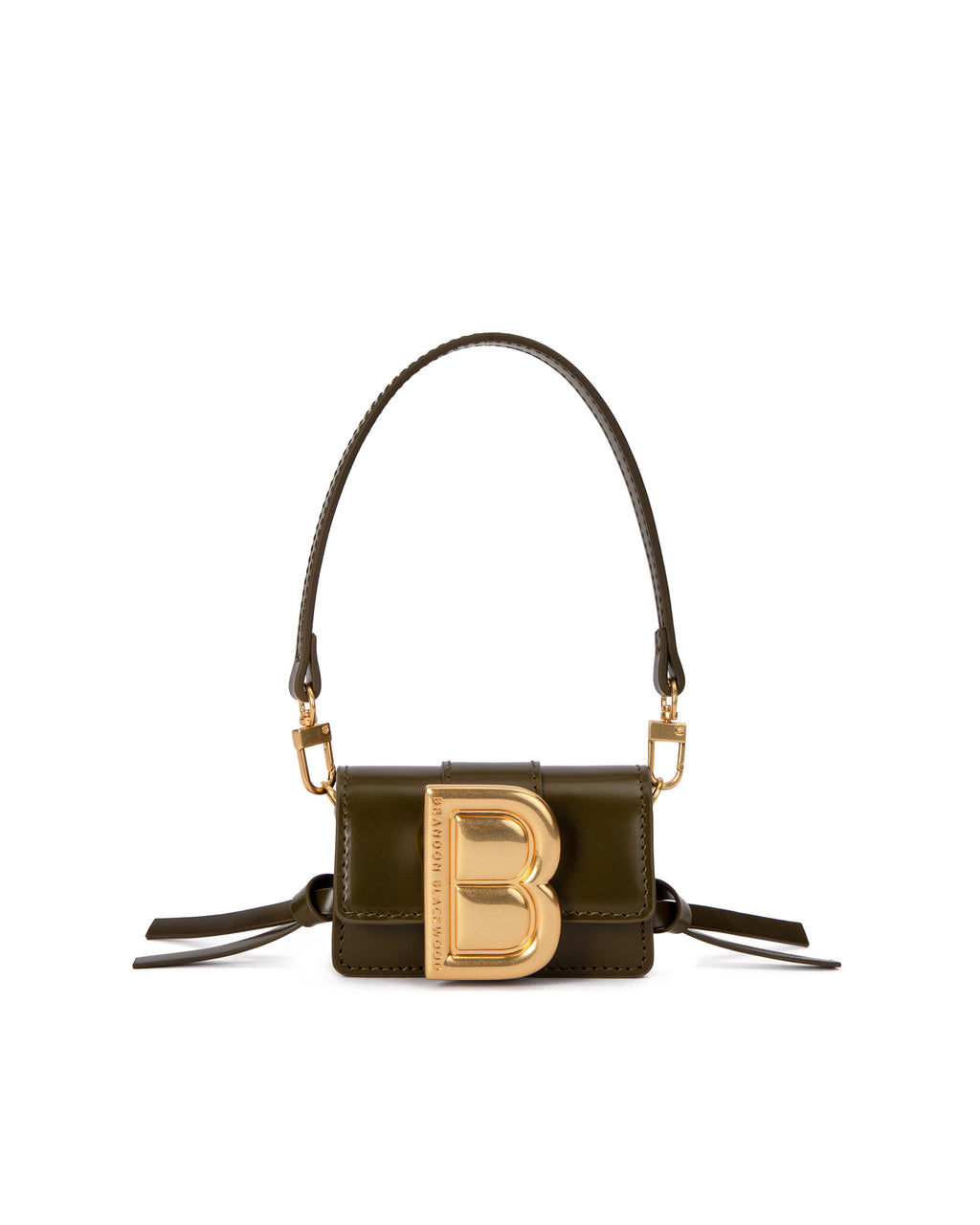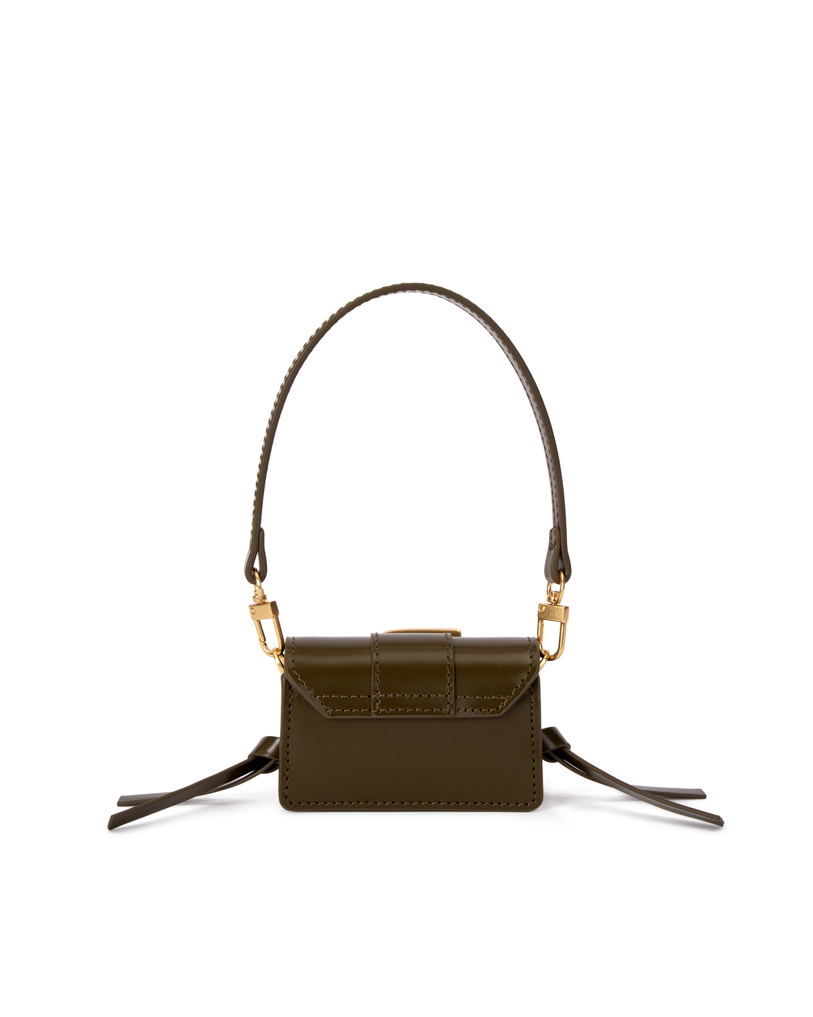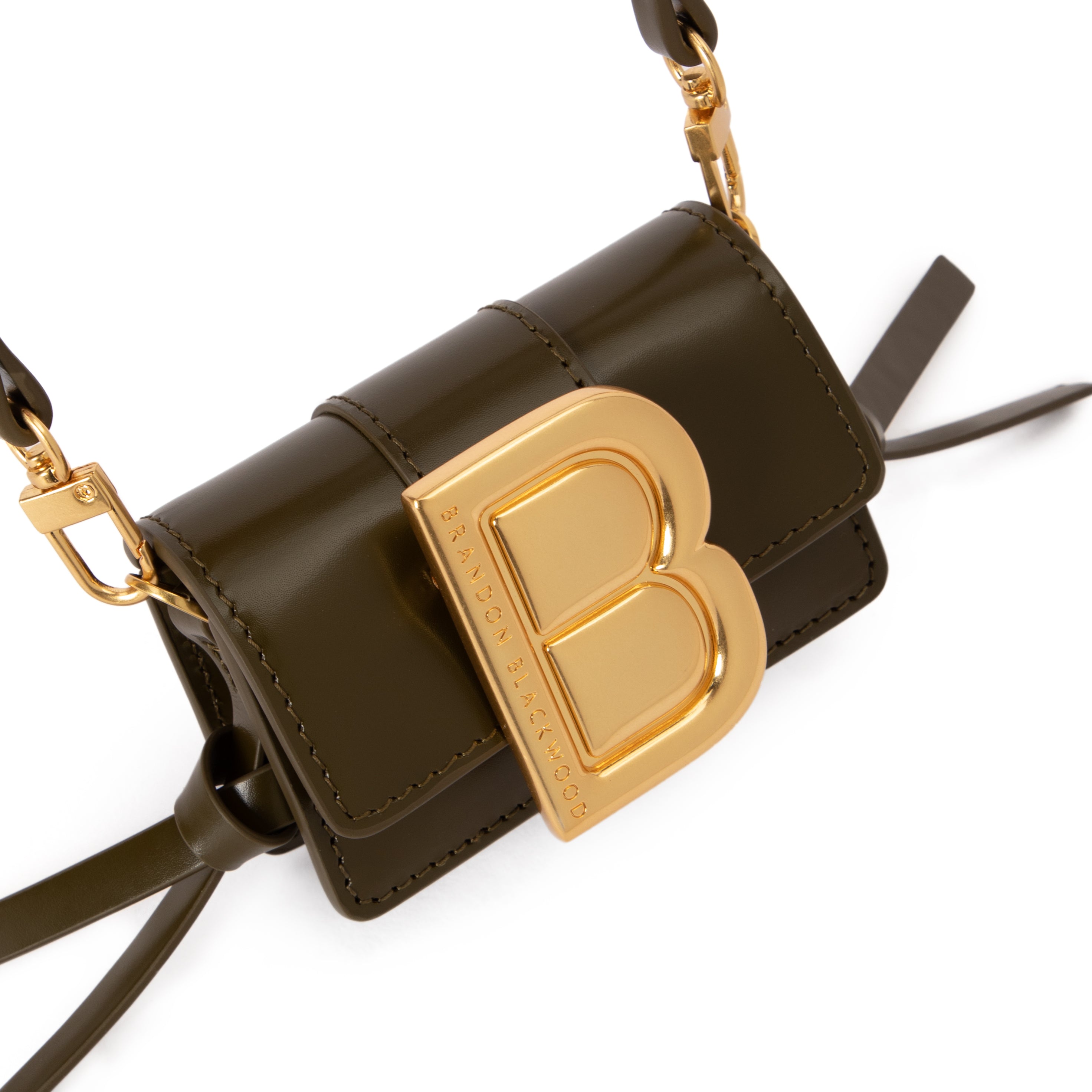 Our Nano Nia Handbag Charm in Olive Green Hard Leather with Brass Hardware