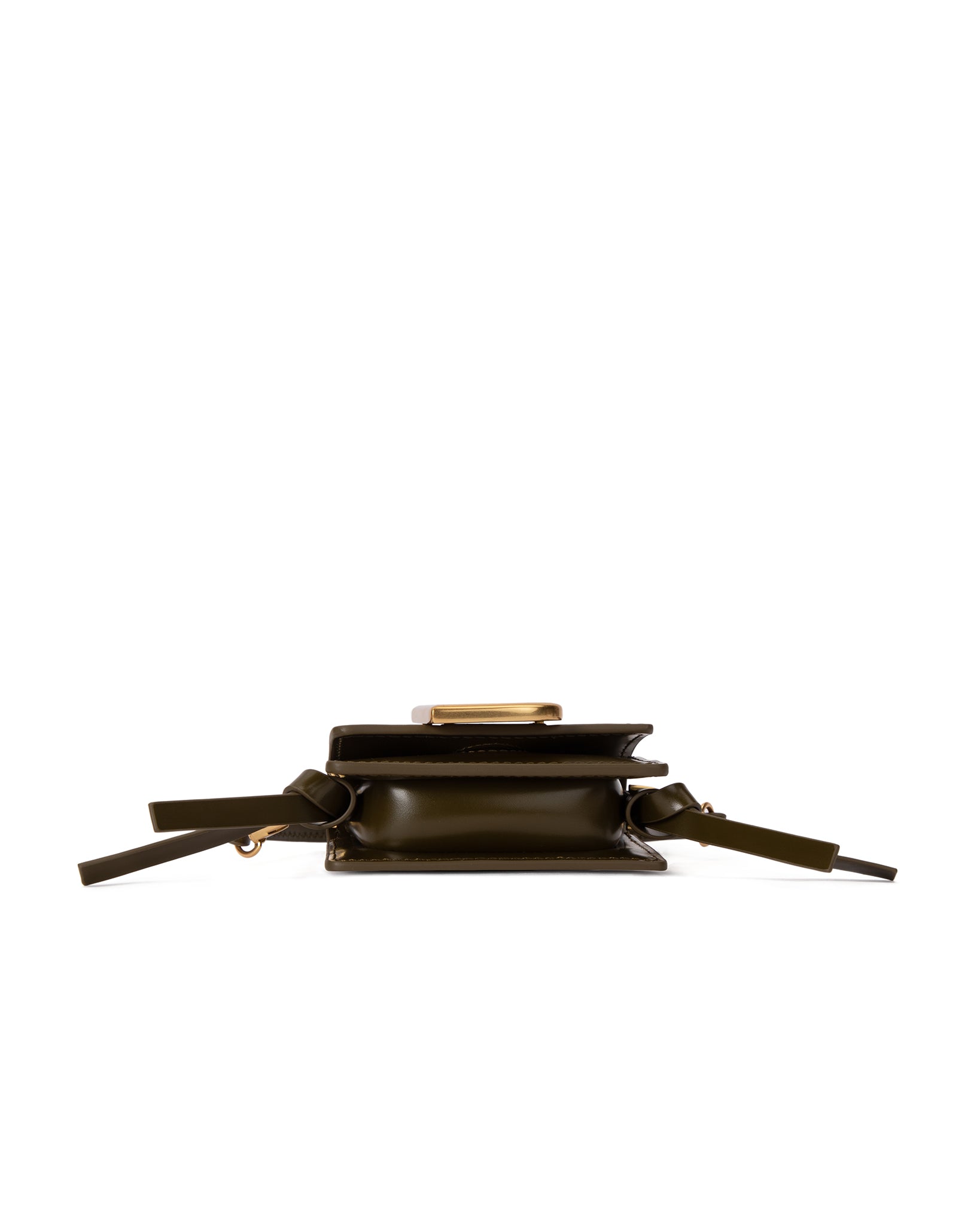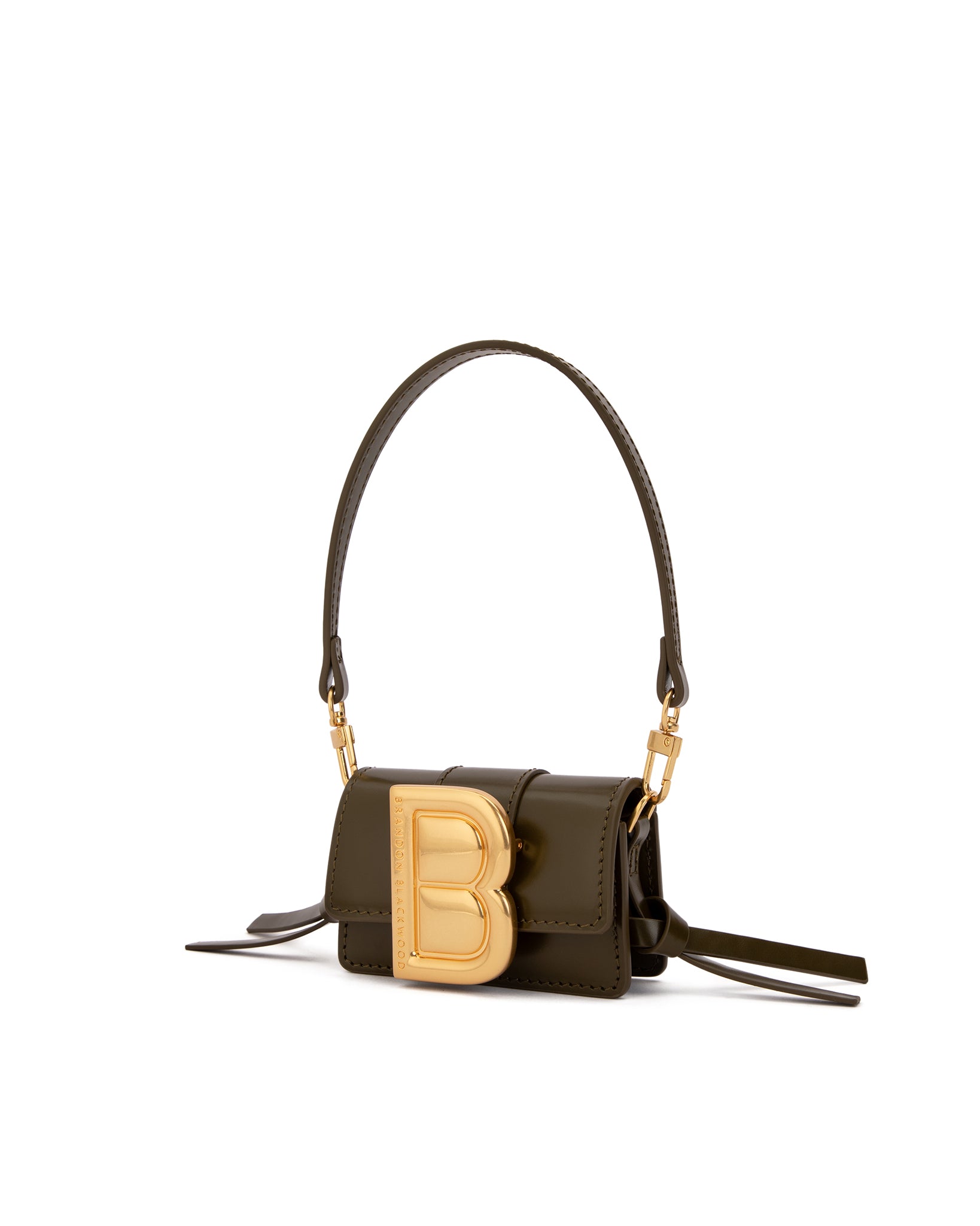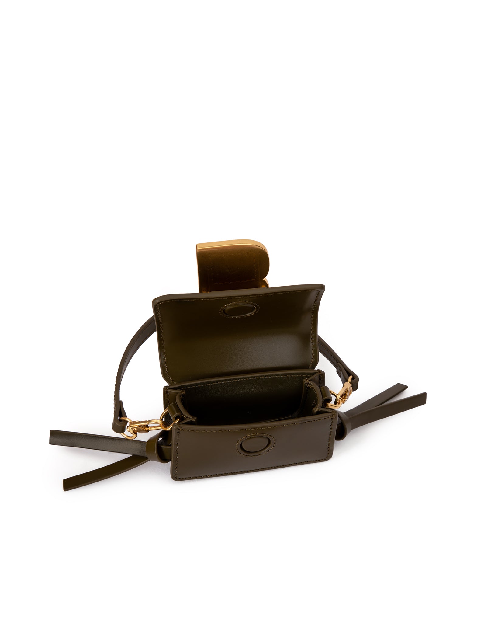 Our Nano Nia Handbag Charm in Olive Green Hard Leather with Brass Hardware