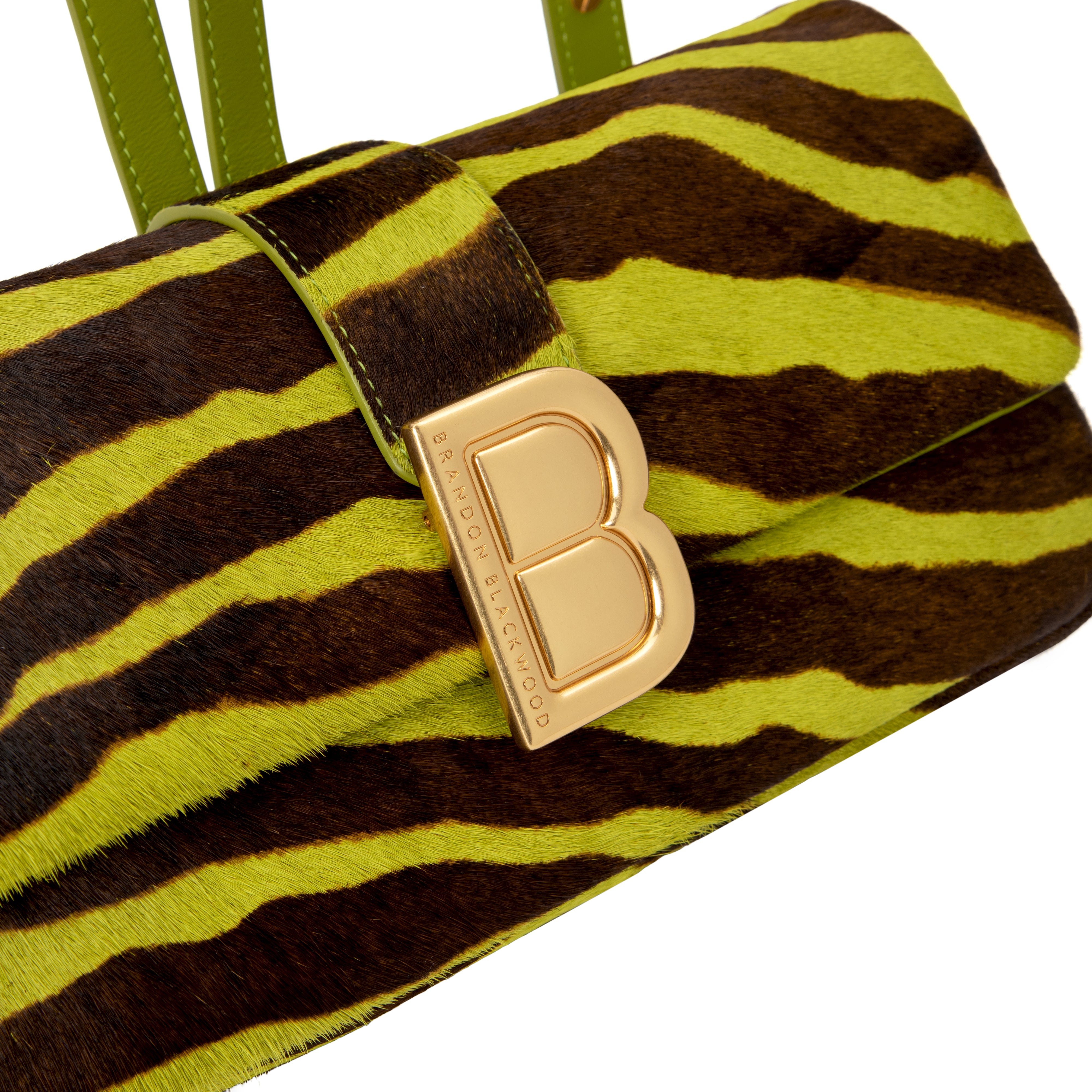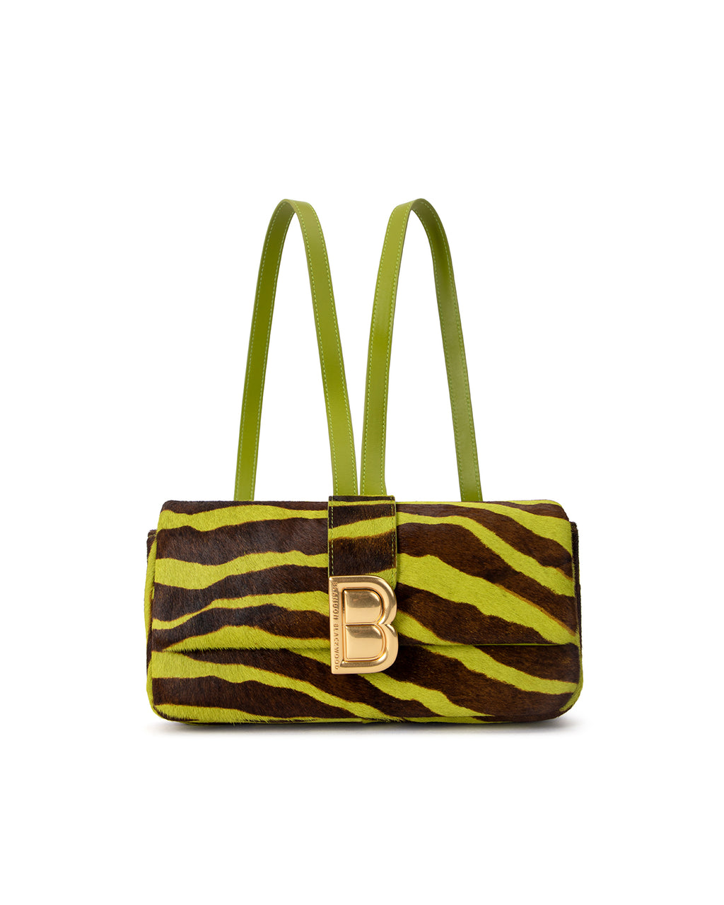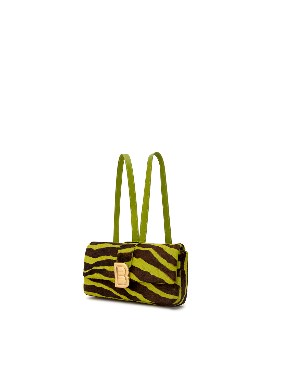 Vivid, playful, and unapologetically bold. The Nia Backpack in Green & Brown Zebra Ponyhair brings a vibrant twist to the Nia family. The polished gold “B” hardware and structured build balance the fun, expressive pattern.
