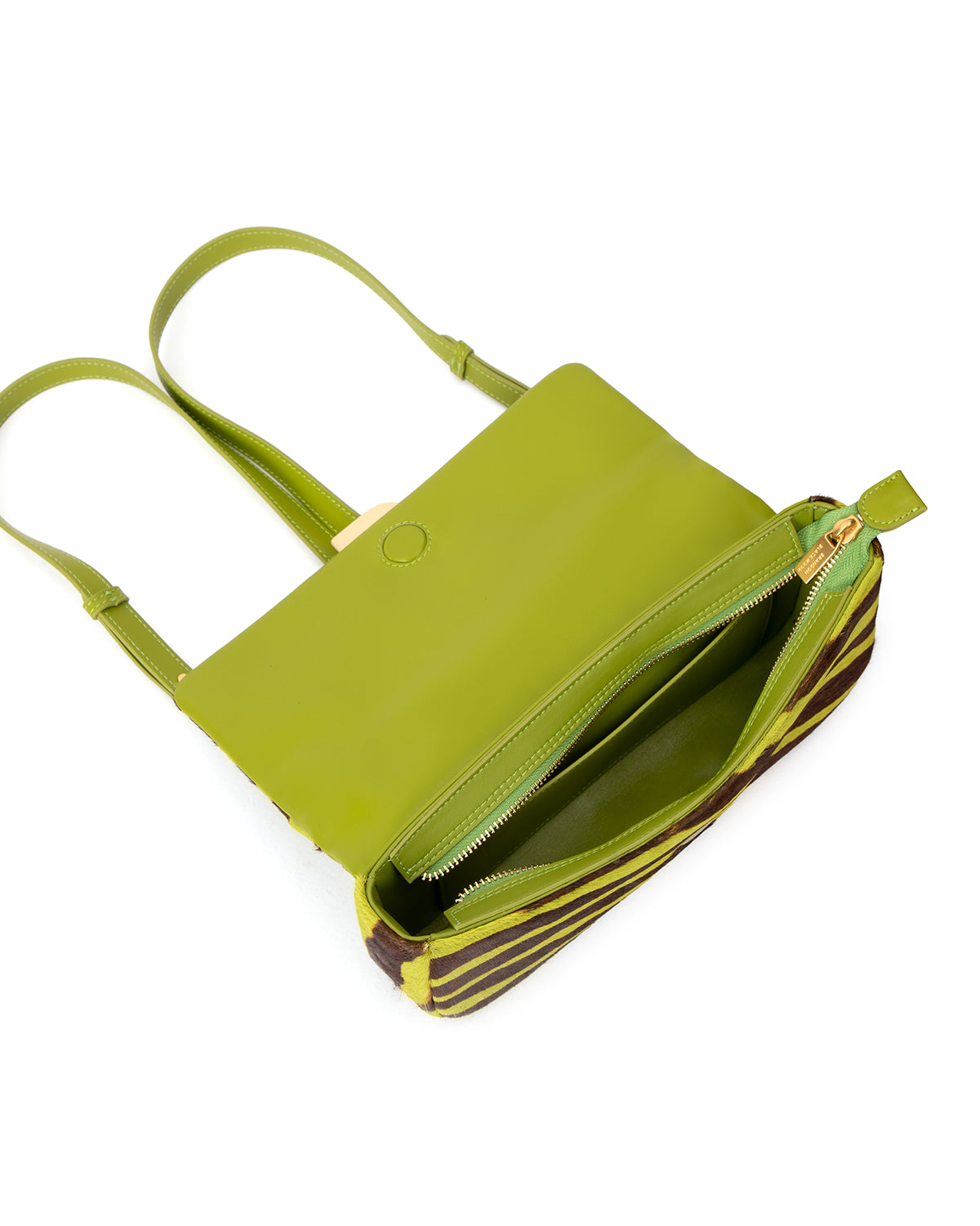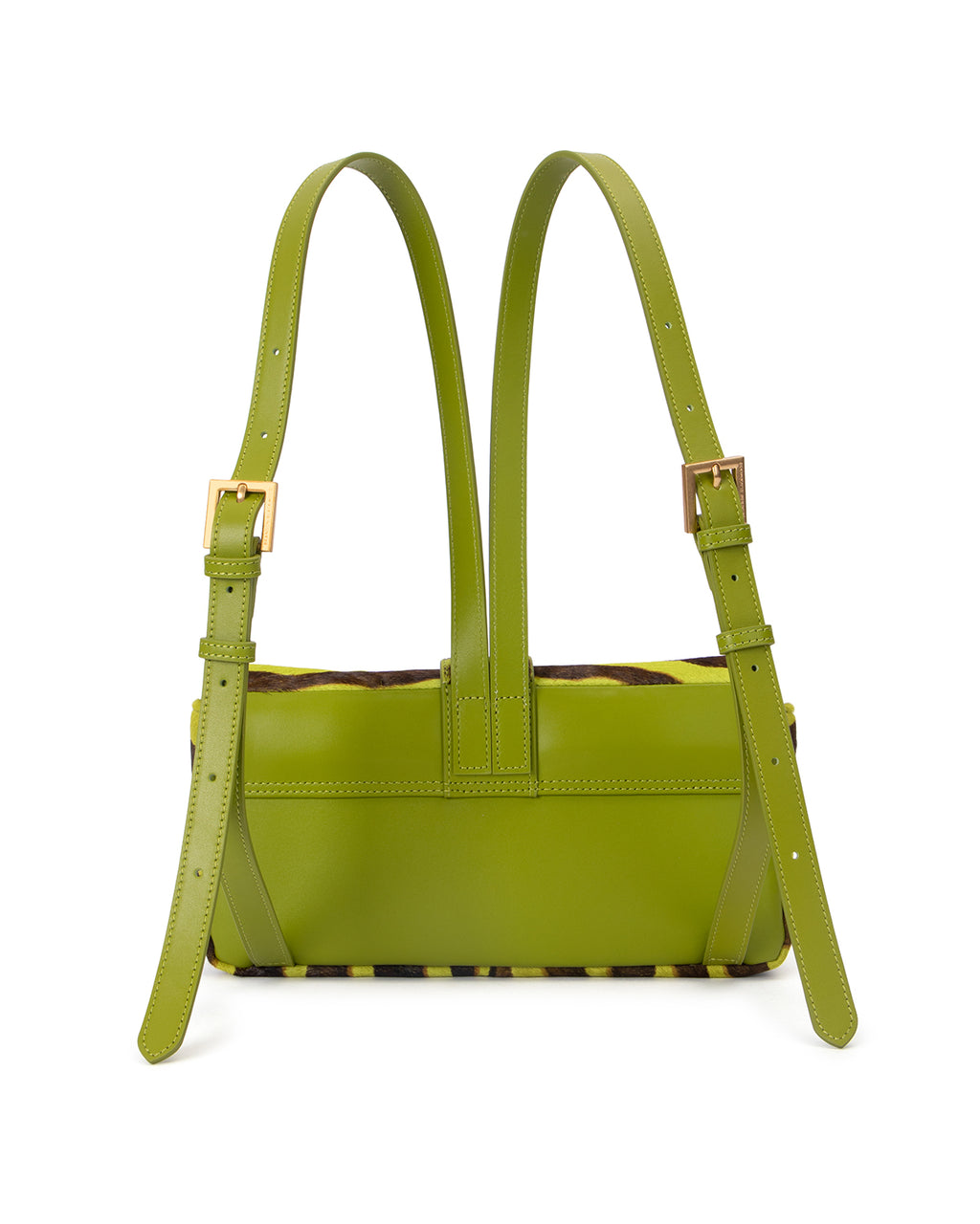 Our Nia Backpack in Green & Brown Zebra Ponyhair with Brass Gold Hardware