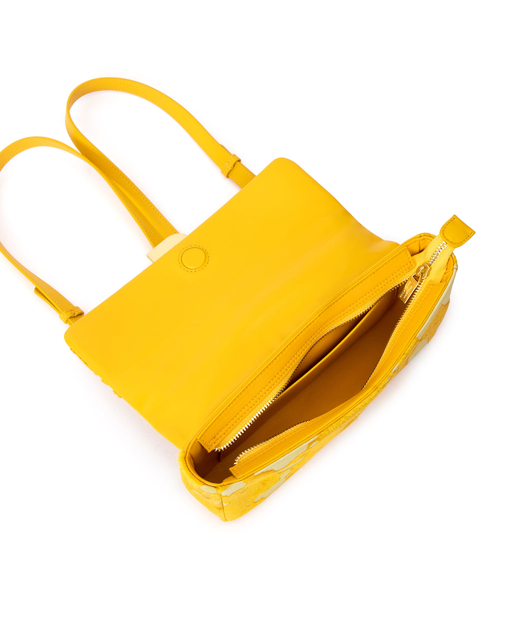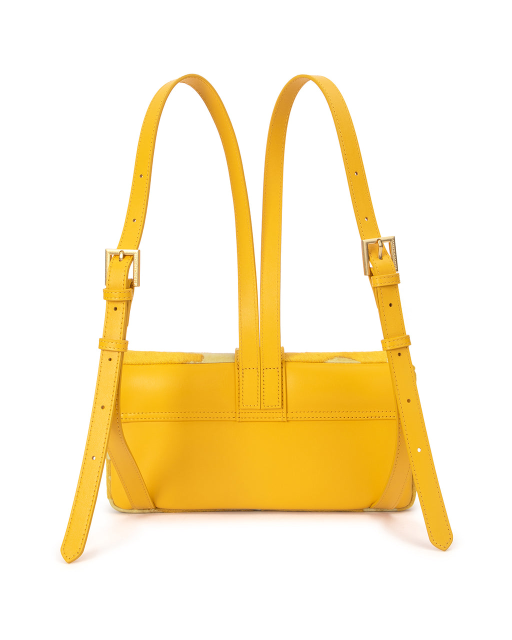 A standout piece with unique dimension. The Nia Backpack in Yellow Distressed Ponyhair features an eye-catching textured finish paired with polished gold hardware. Its structured body and adjustable straps make it both practical and undeniably striking.