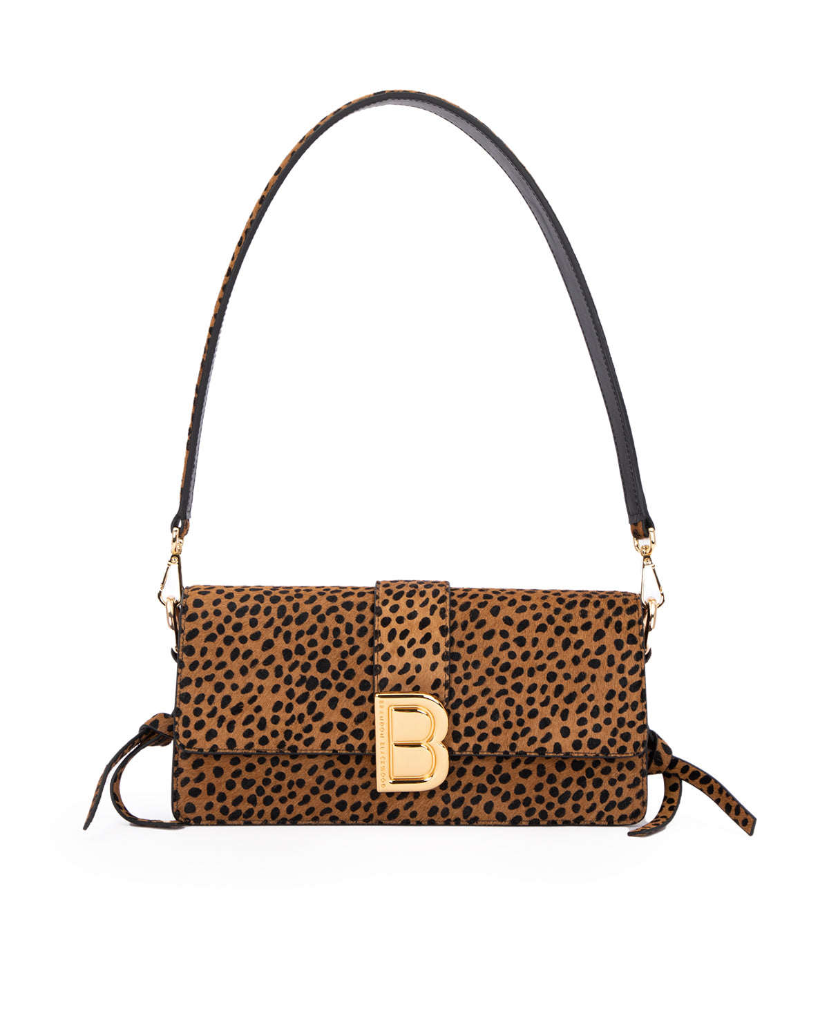 Our Nia Bag in Beige Spotted Ponyhair with Brass Hardware