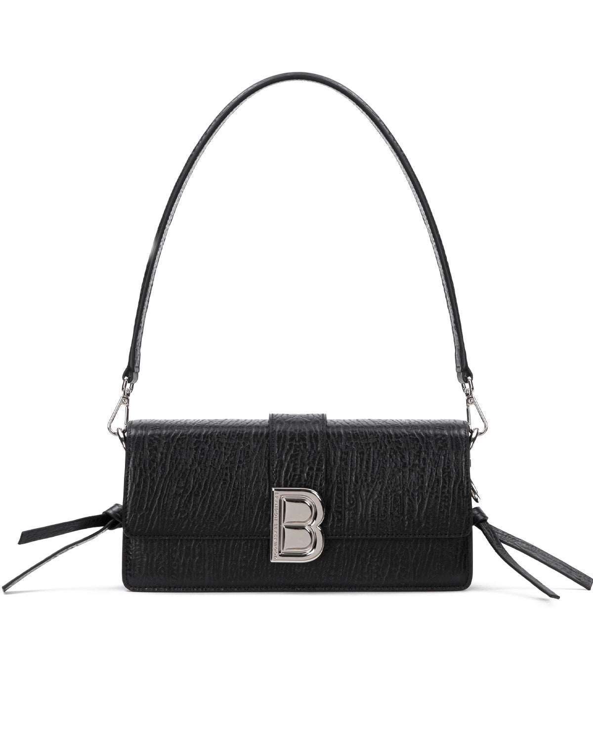 Our Nia Bag in Black Bark Leather with Silver Hardware