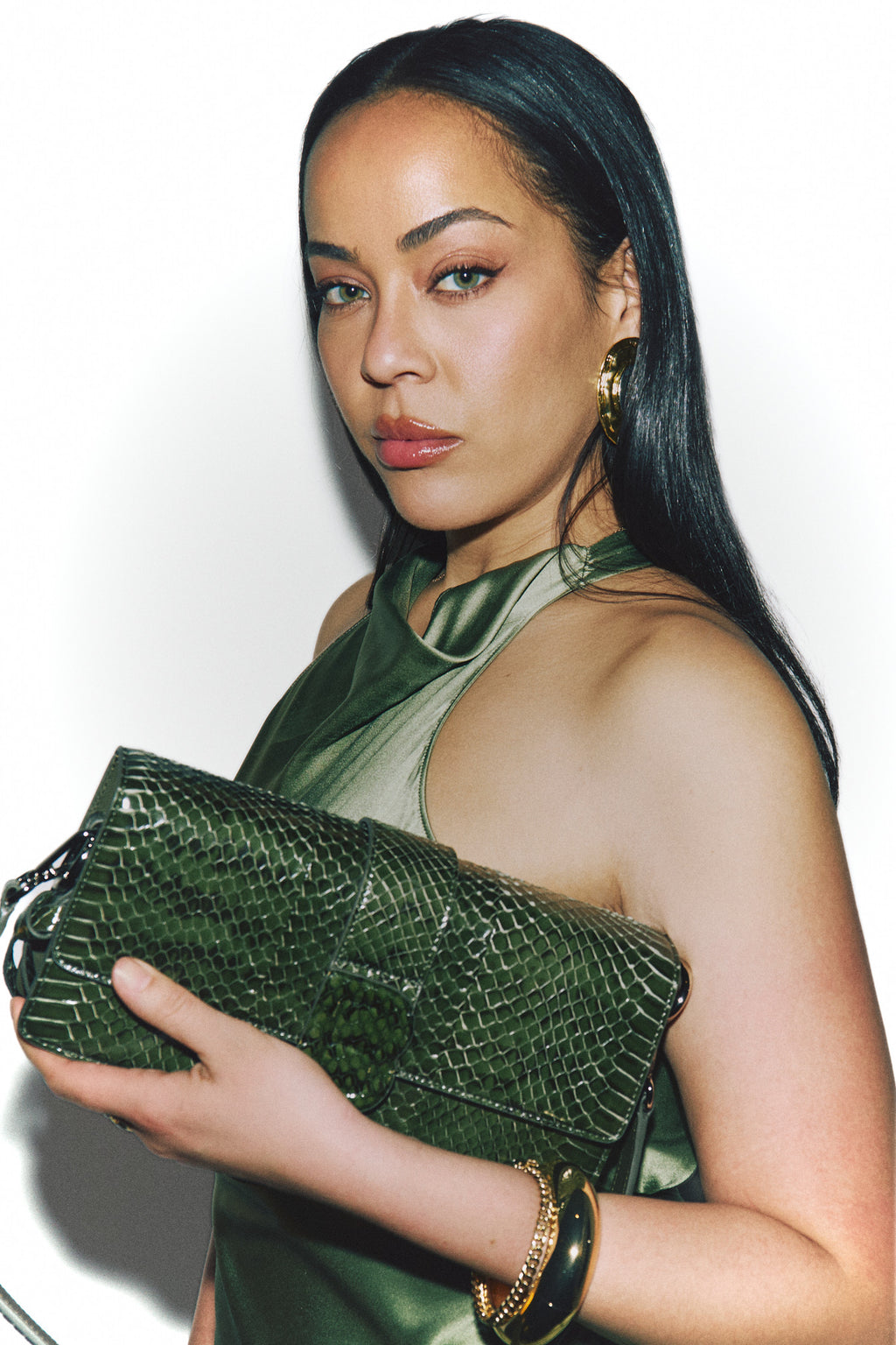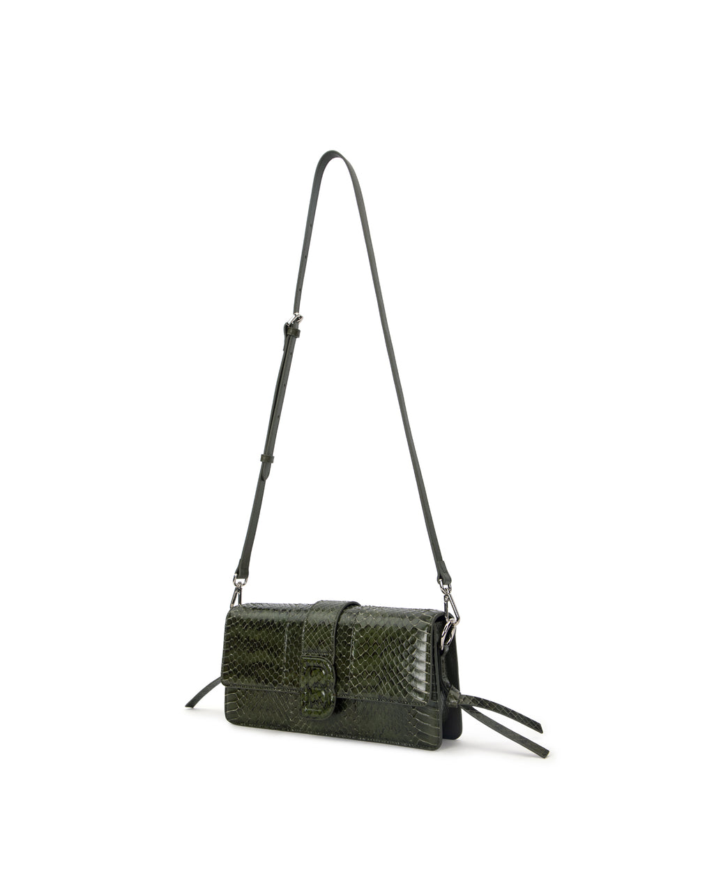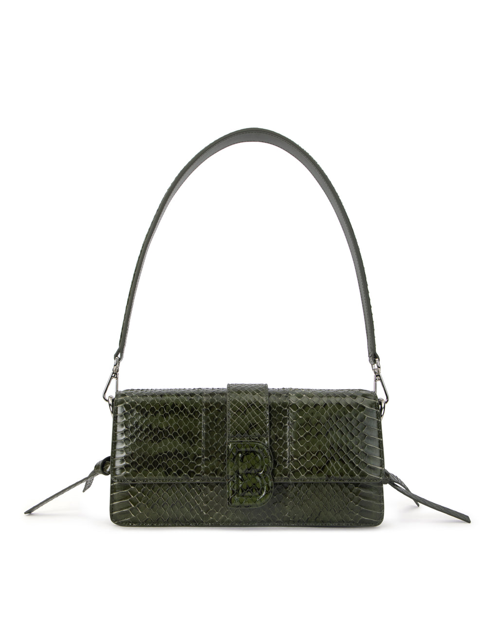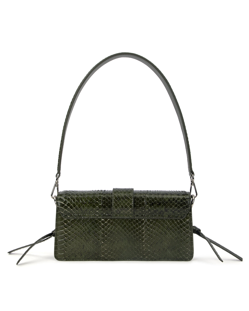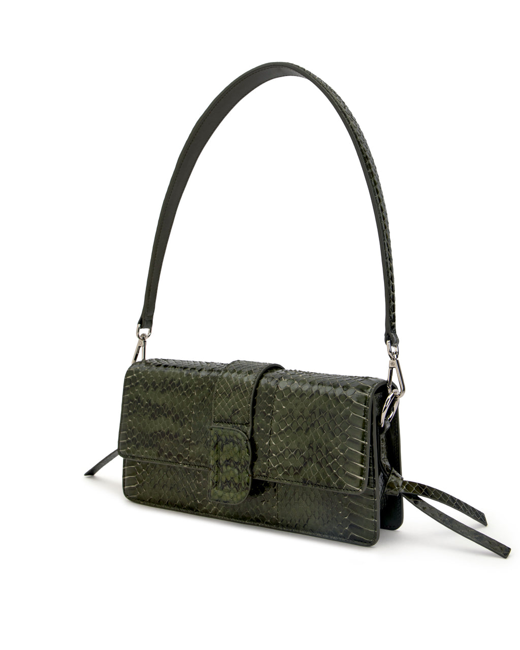 Our Nia Bag in Green Snakeskin with Silver Hardware