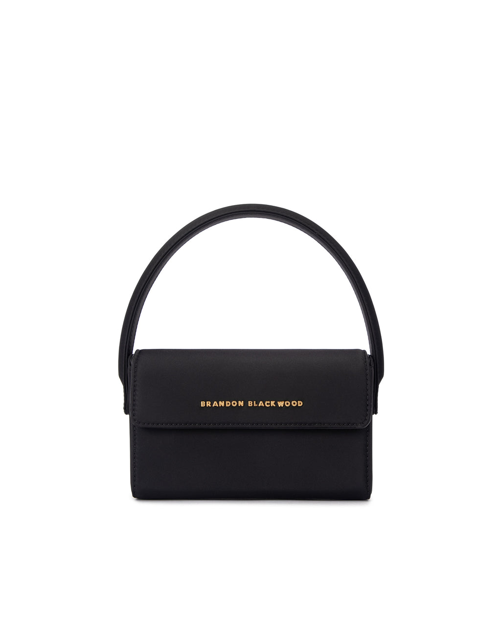 A minimal silhouette with maximum charm. The Quincy Bag in Black Nylon is crafted from smooth, durable nylon and finished with polished gold hardware for a sleek, modern look. Its simple flap design and curved top handle give it an easy, effortless feel, while the spacious interior offers room for daily essentials despite having no internal pockets.