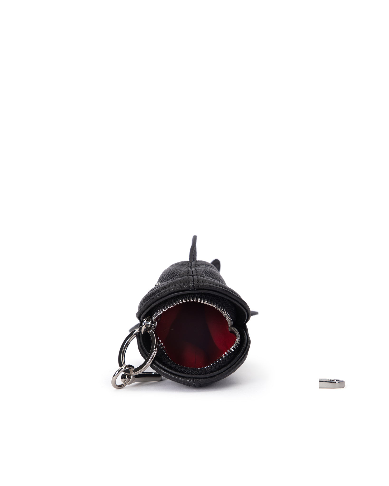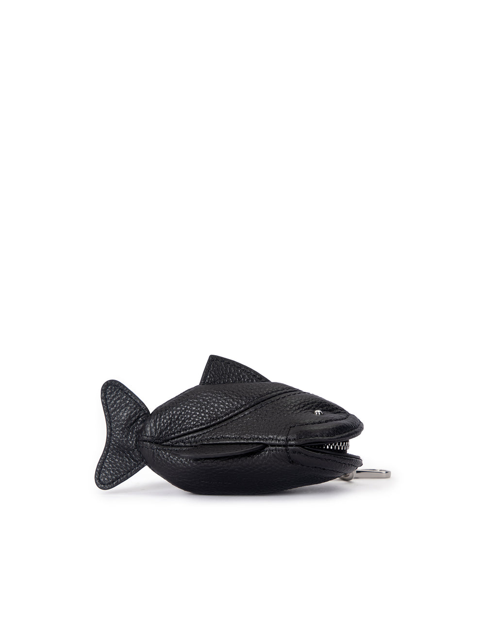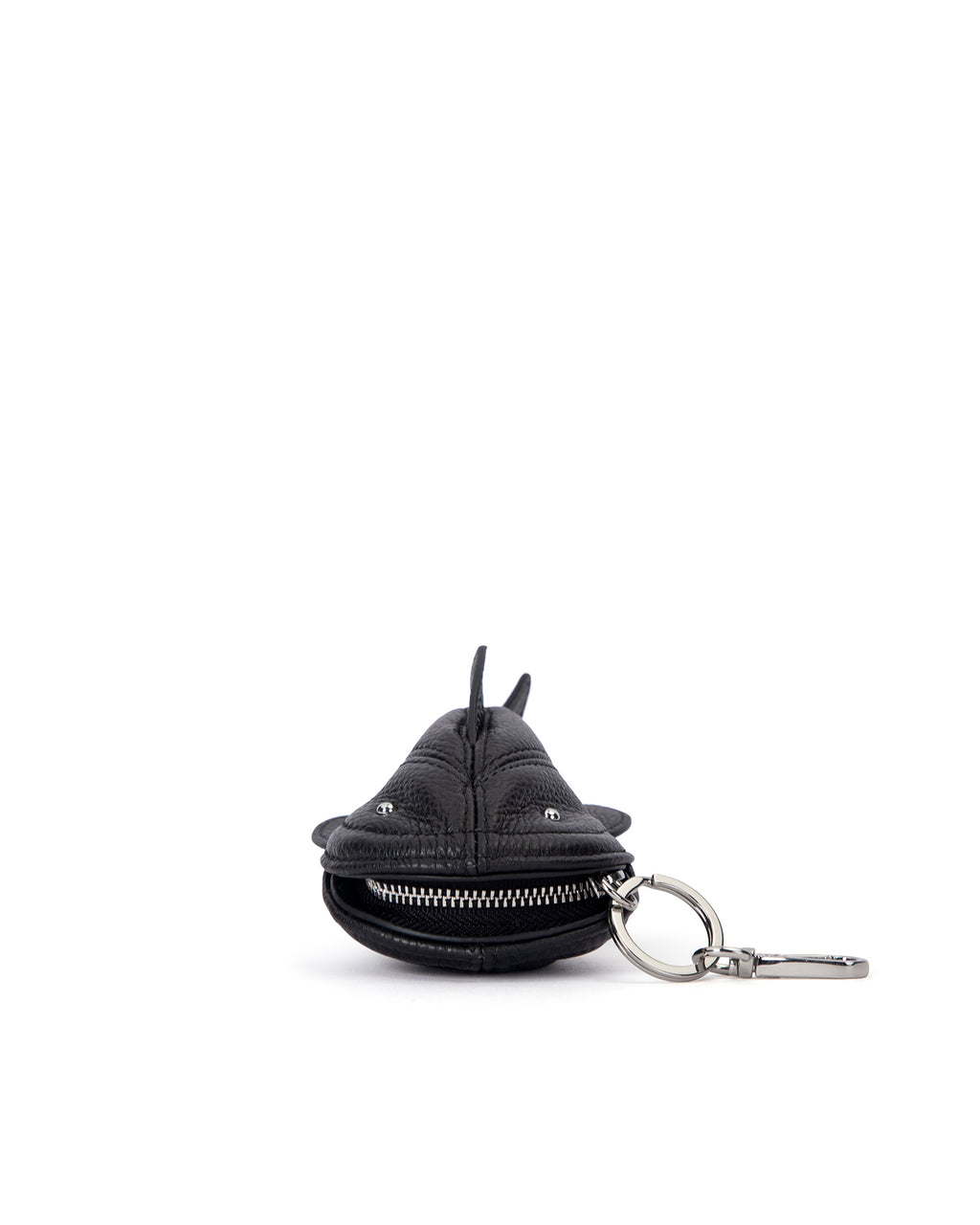 A playful mini accessory with a polished edge. The Shark Key Pouch in Black Pebbled Leather features a sculptural silhouette with a secure zip opening and smooth red interior. Finished with silver hardware and a keyring clasp, it clips easily onto bags, belt loops, or keys while adding a fun, unexpected touch.