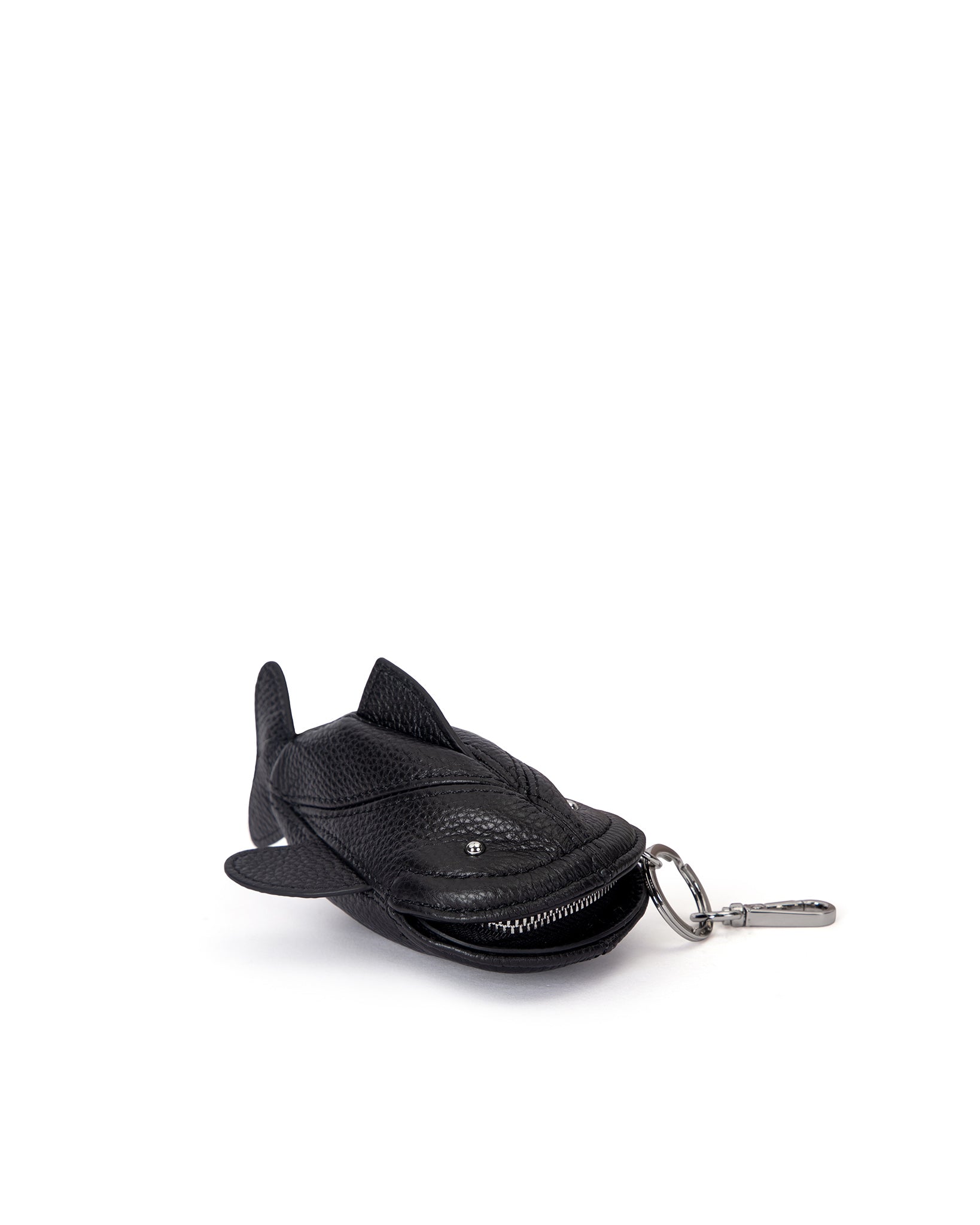 Our Shark Coin Pouch in Black Pebbled Leather with Silver Hardware