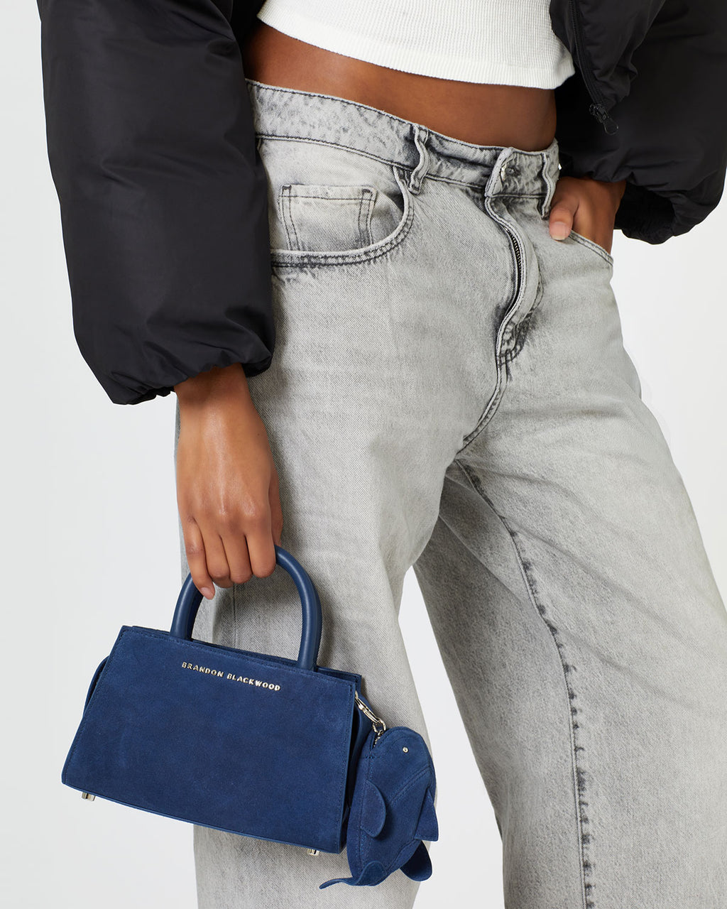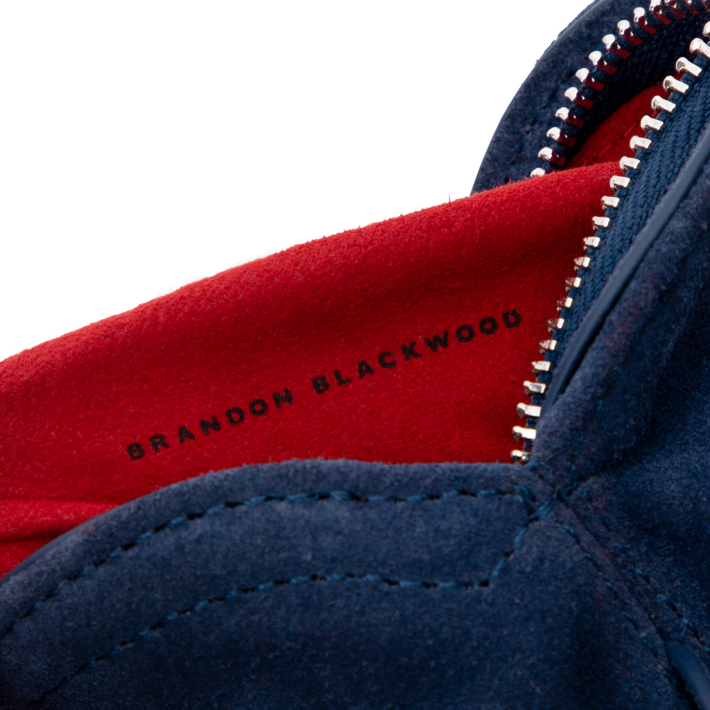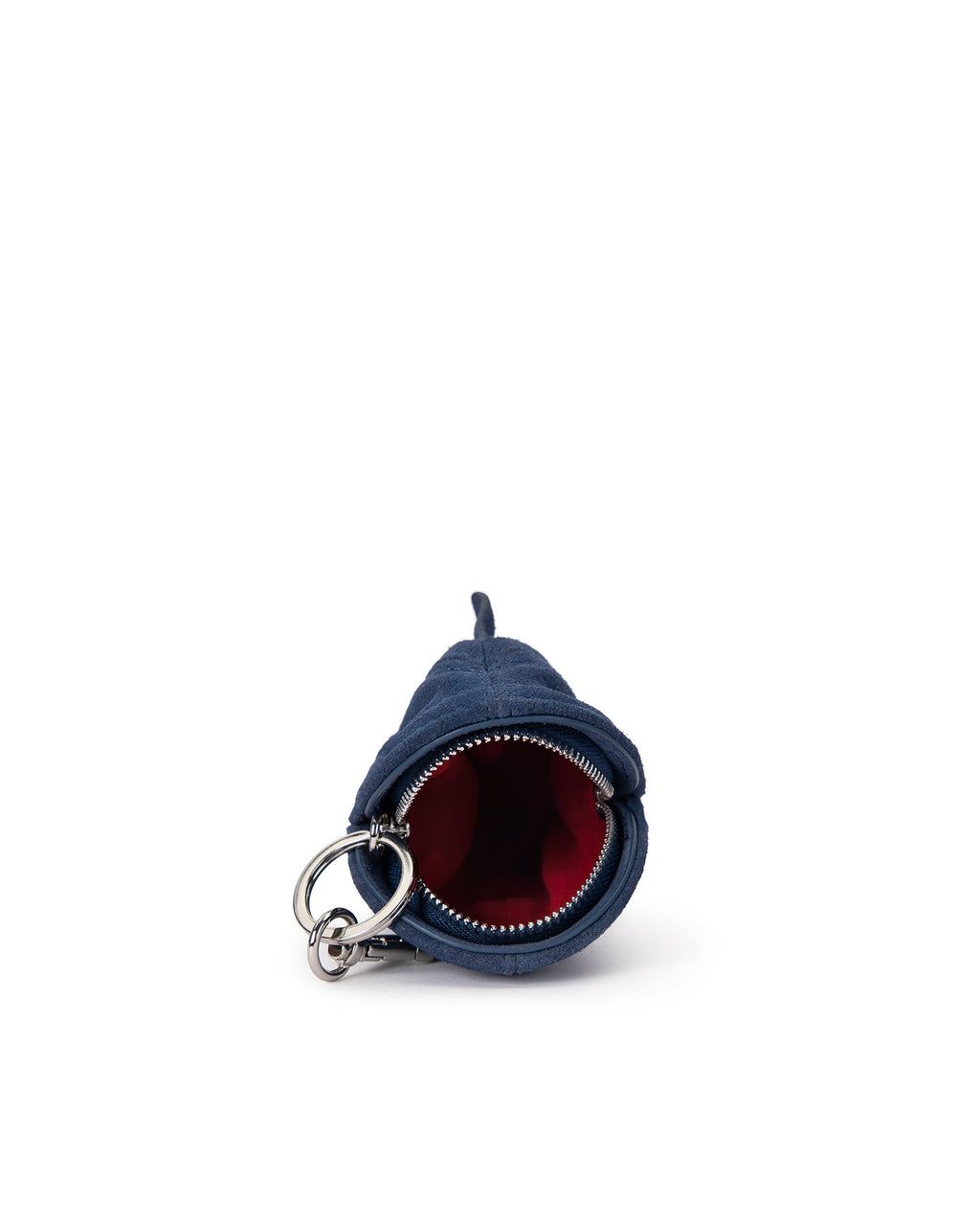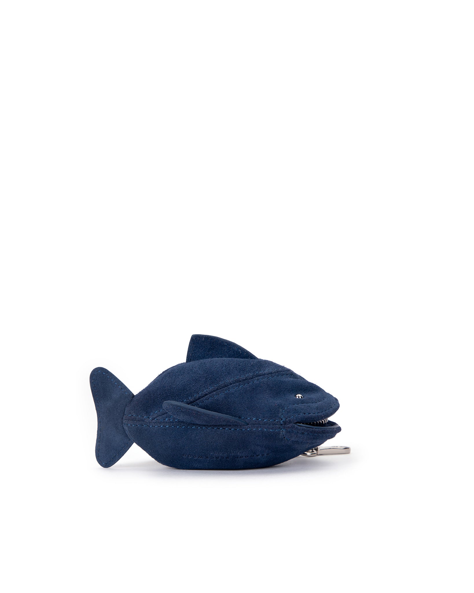 Soft texture meets bold design. The Shark Key Pouch in Blue Suede brings a playful silhouette to a luxe material, finished with sleek silver hardware. With its zip opening and red interior, it’s a fun, functional addition to bags, keys, or belt loops.