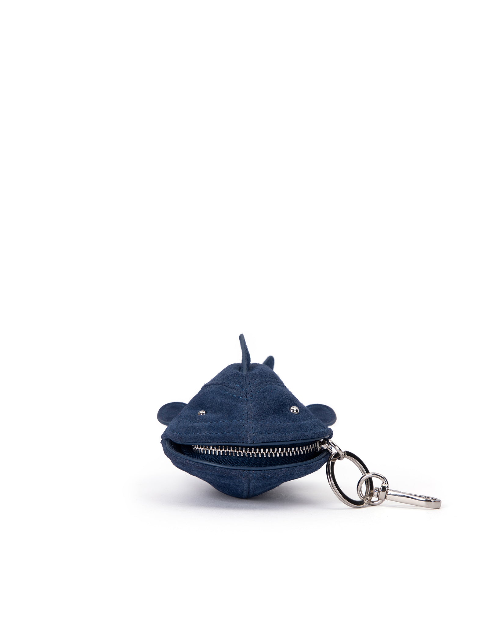 Our Shark Coin Pouch in Blue Suede with Silver Hardware