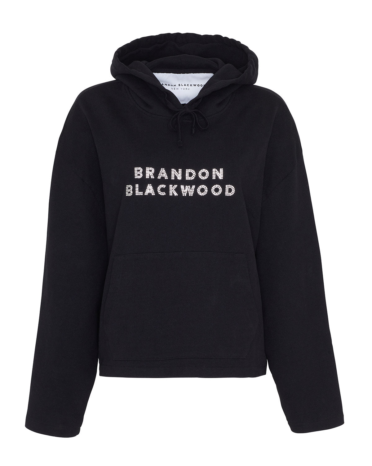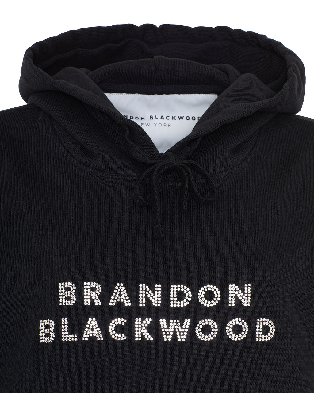 Black Cotton Cropped Hoodie with Crystal Swarovski® BB Logo