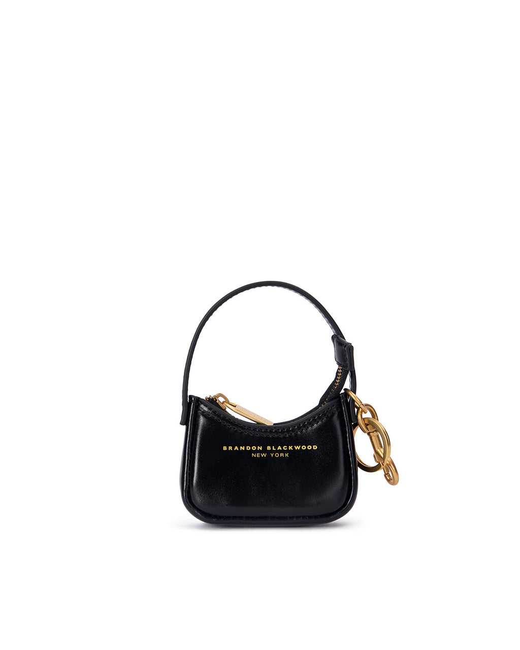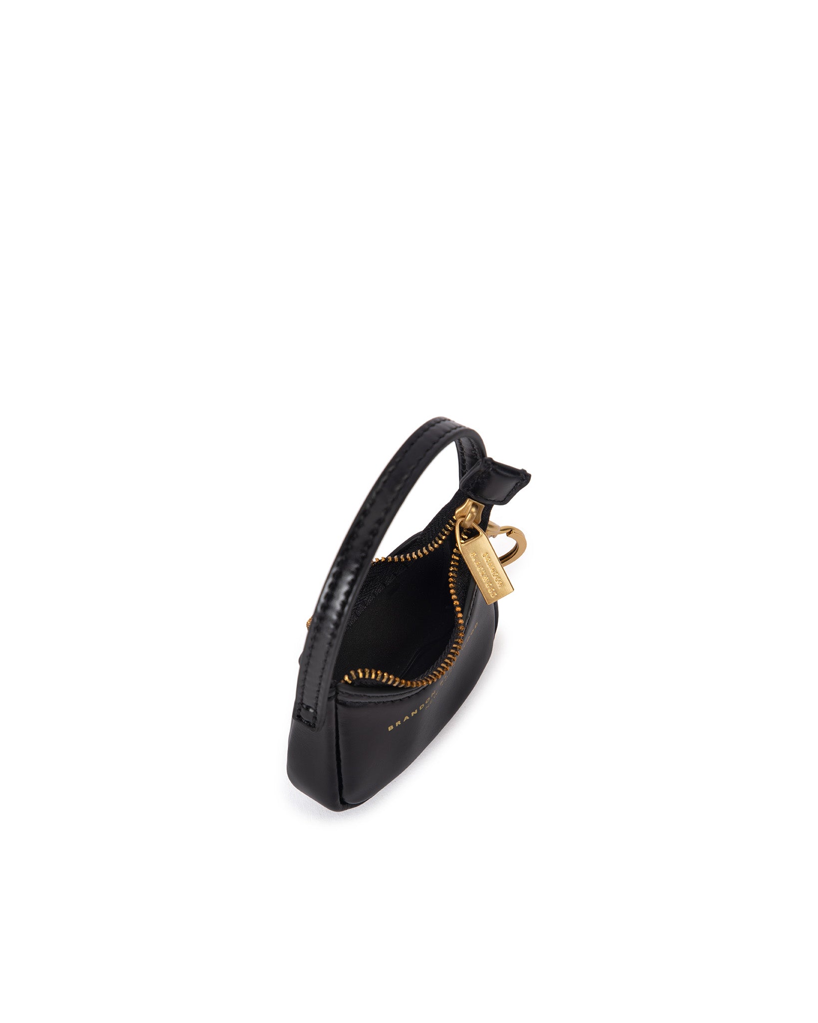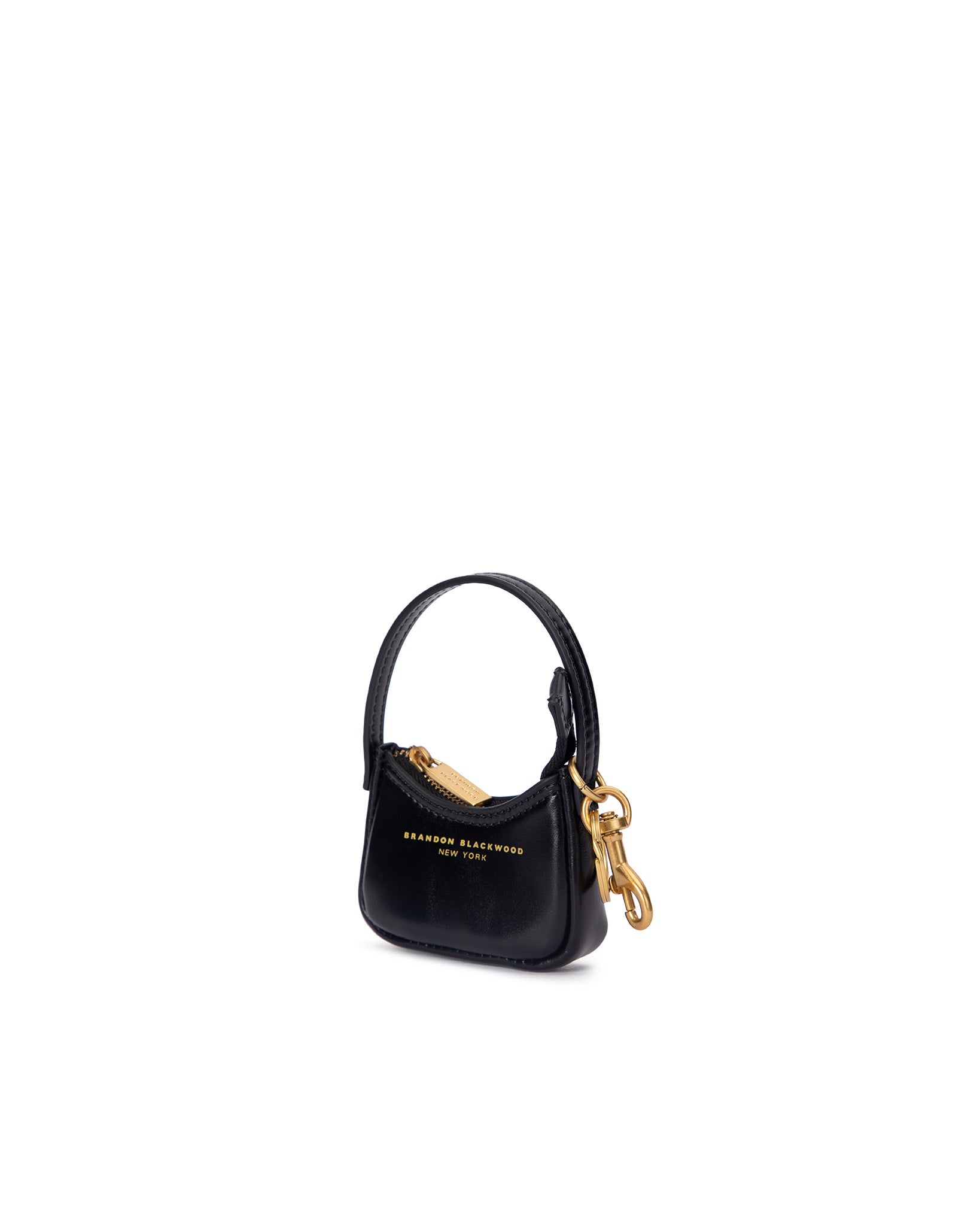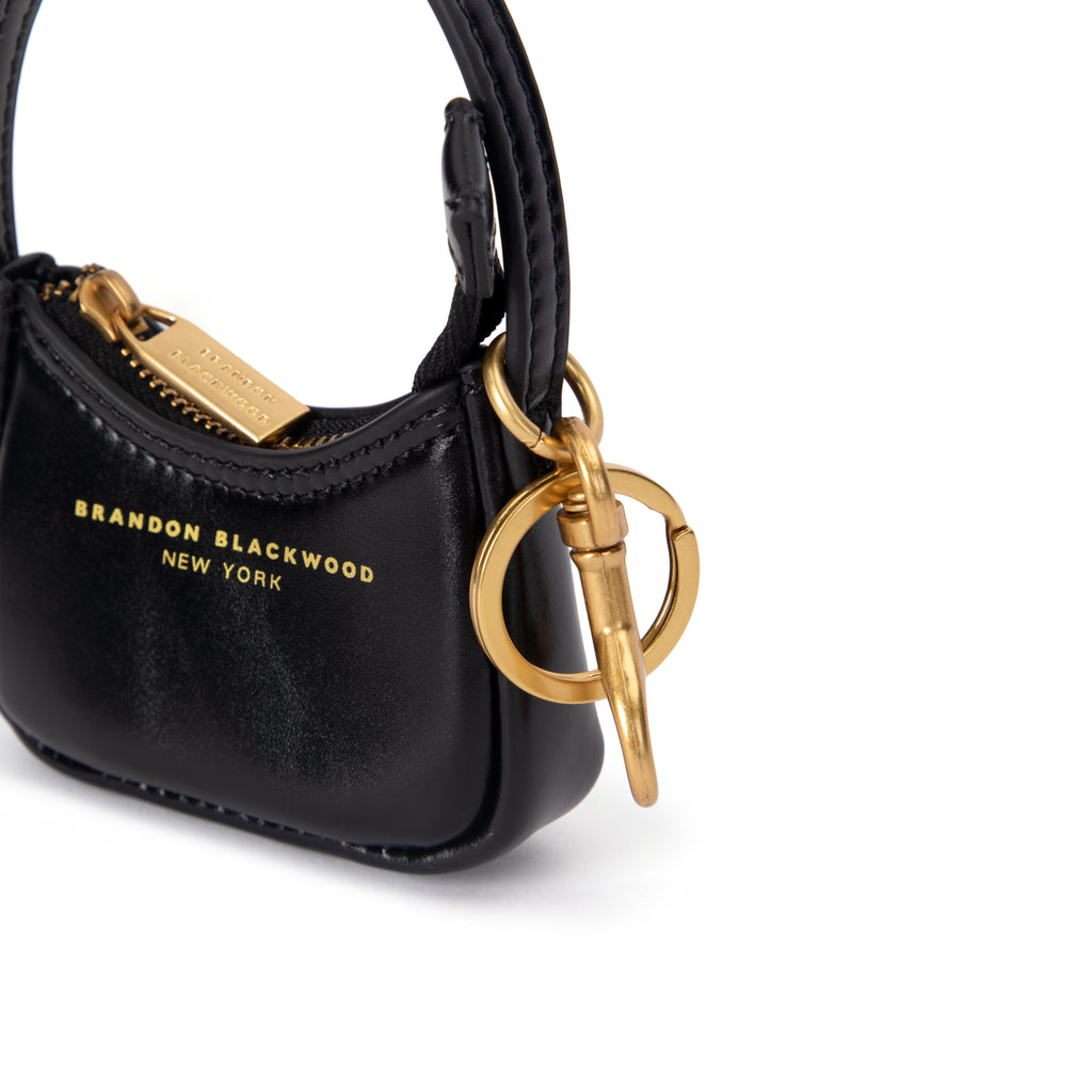 Our Syl Bag Charm in Black Leather with Brass Gold Hardware
