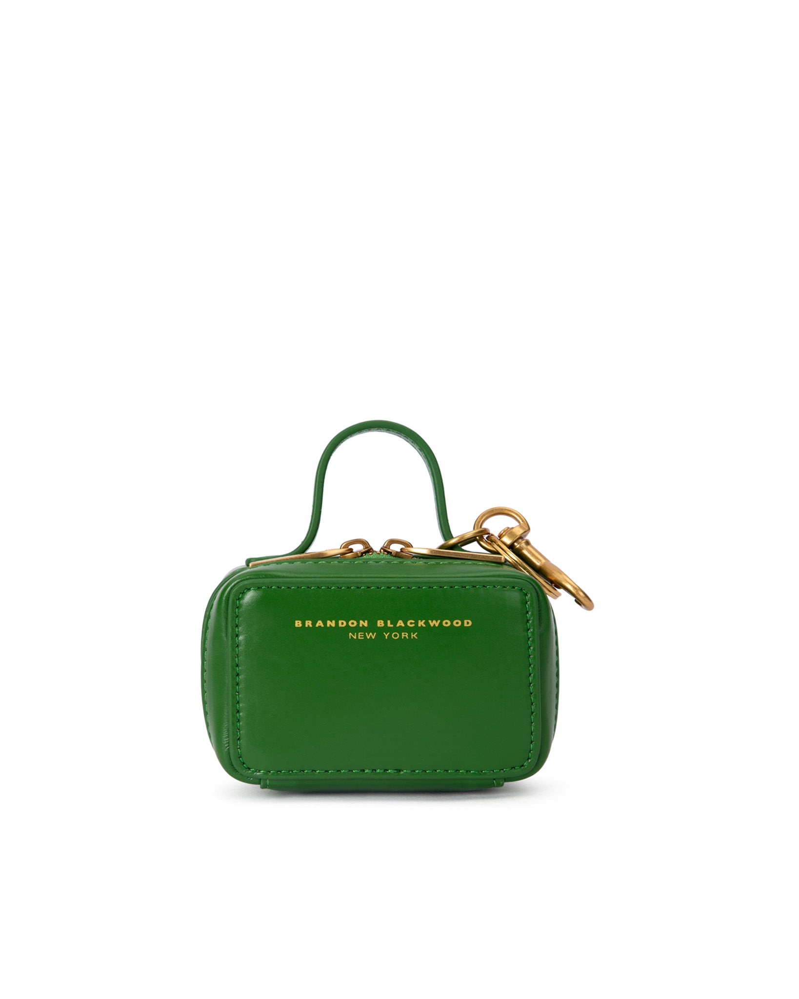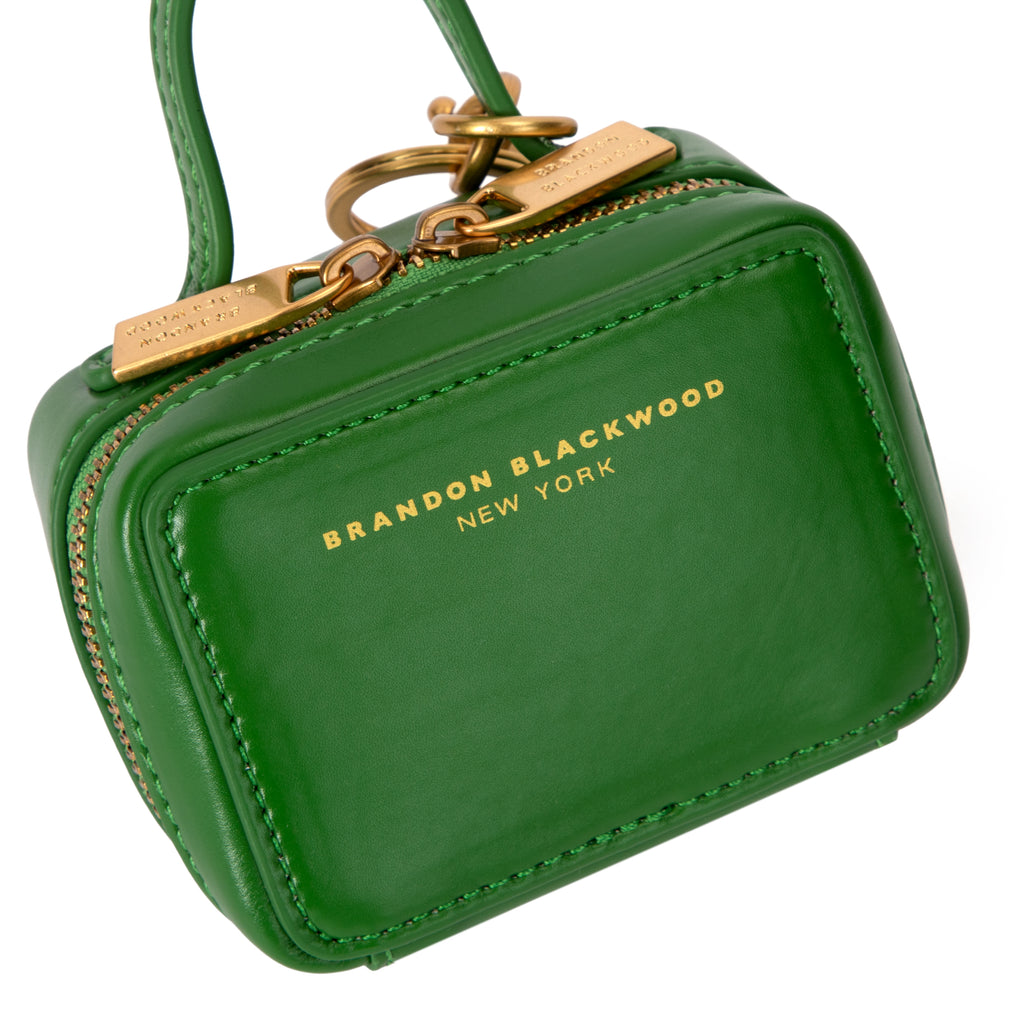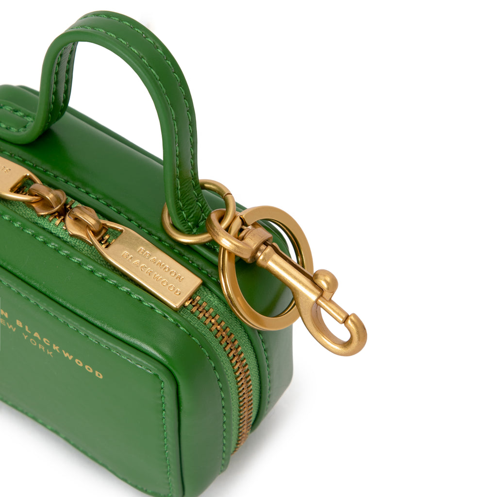Our Trunk Bag Charm in Bright Green Leather with Brass Gold Hardware