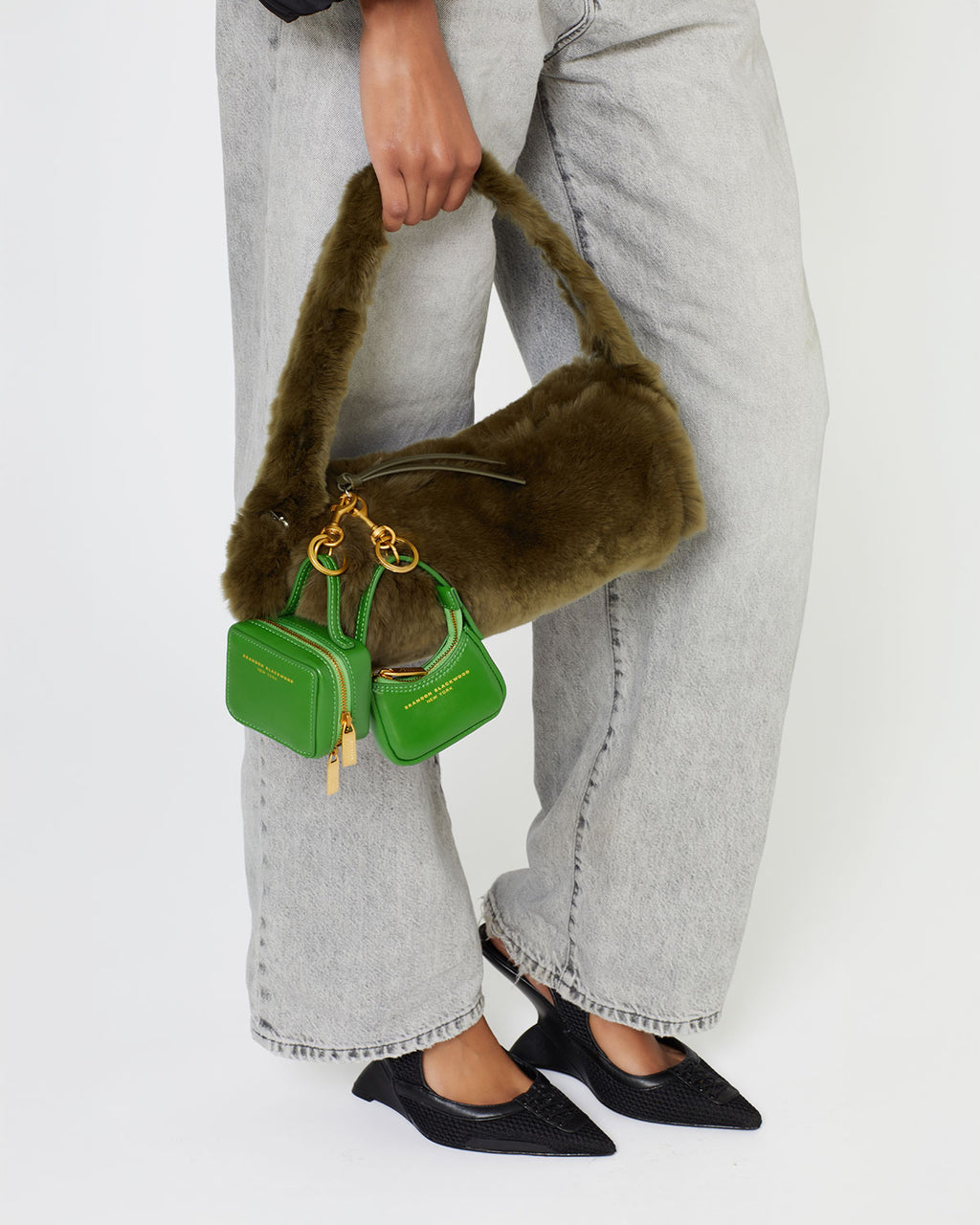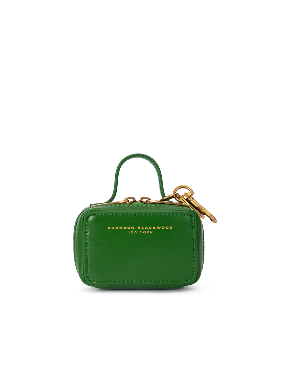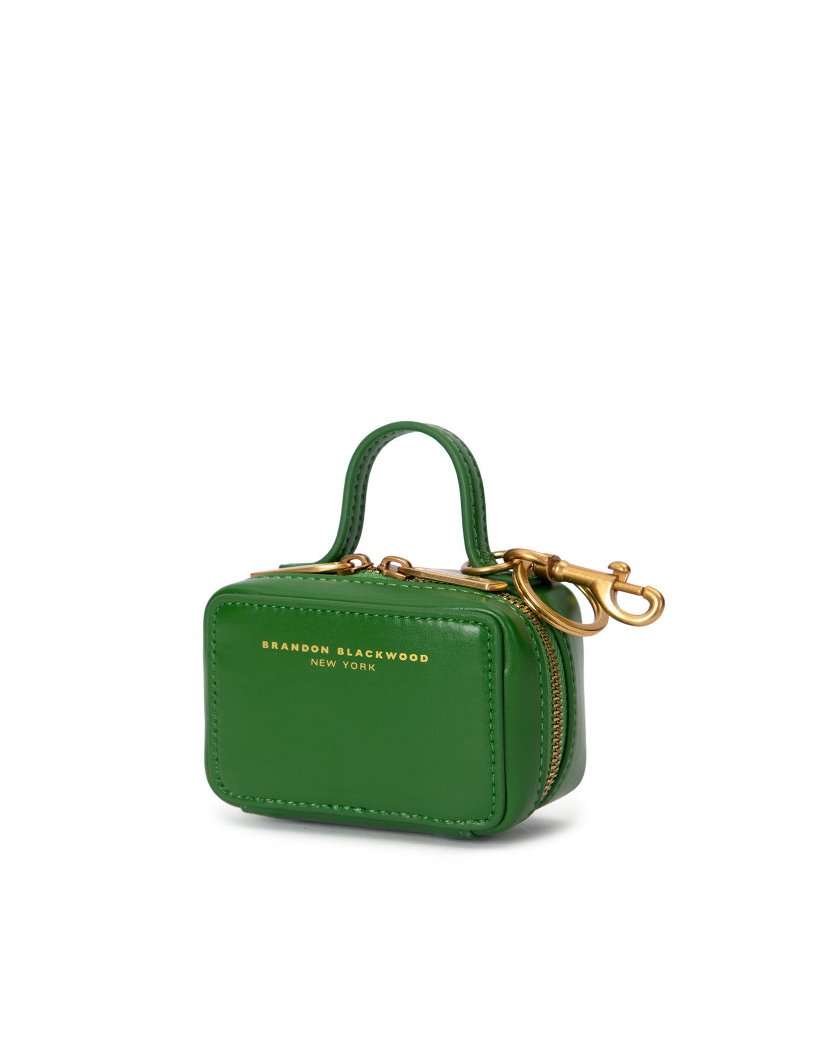 Our Trunk Bag Charm in Bright Green Leather with Brass Gold Hardware