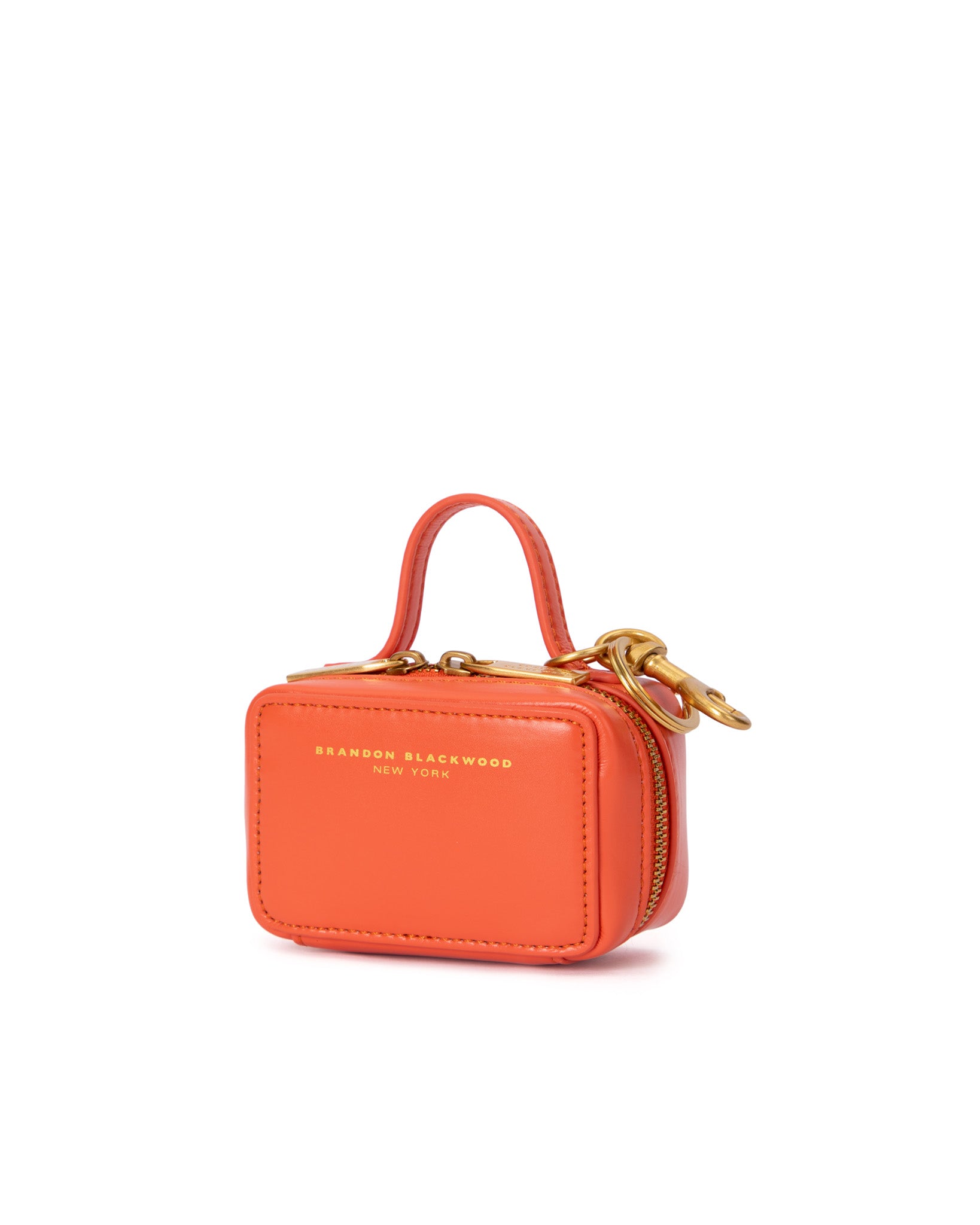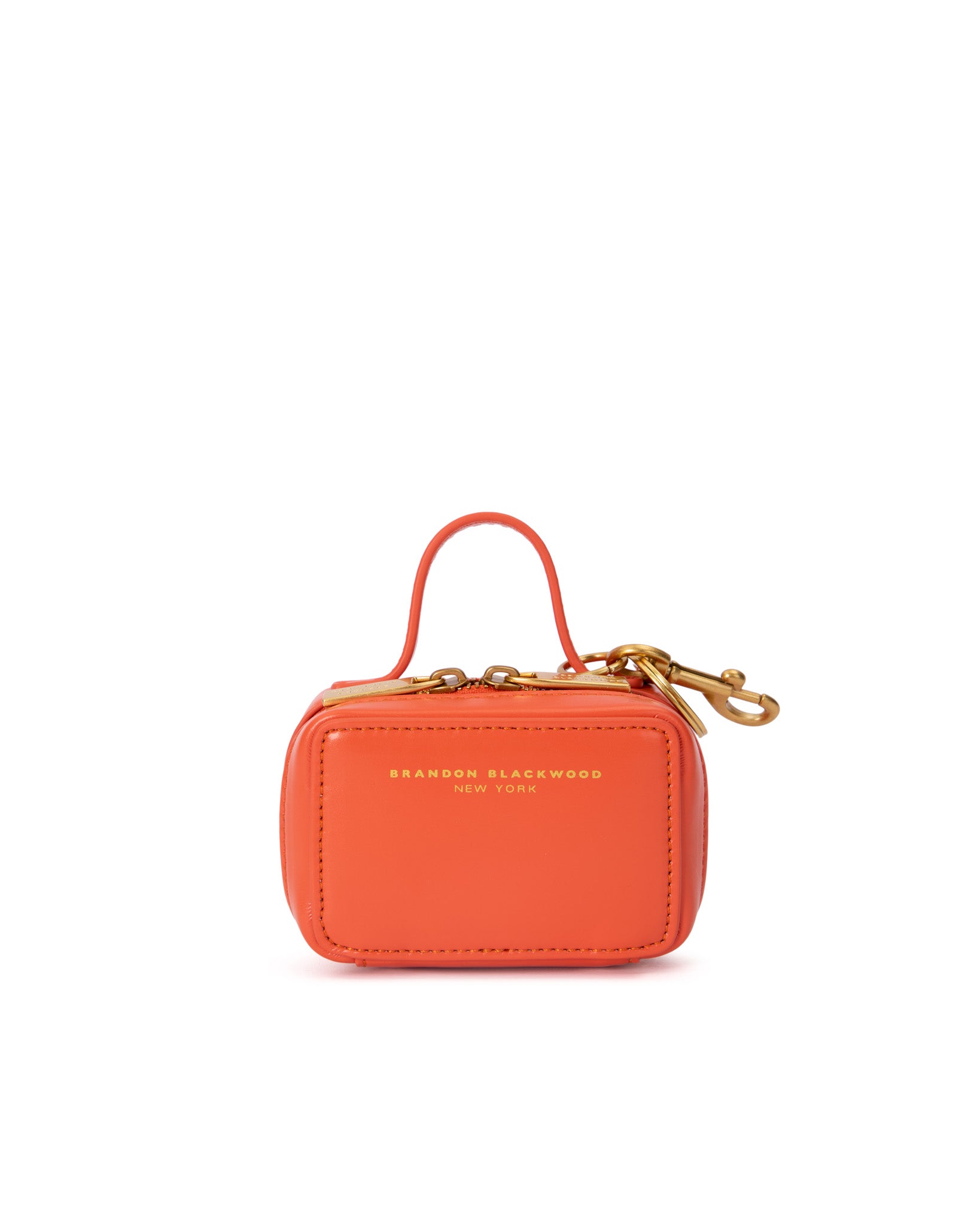Bright and full of personality, the Trunk Bag Charm in Orange Leather transforms our classic silhouette into a standout accent piece. Finished with polished gold hardware, it’s the perfect clip-on accessory for a bold color moment while holding AirPods with ease.