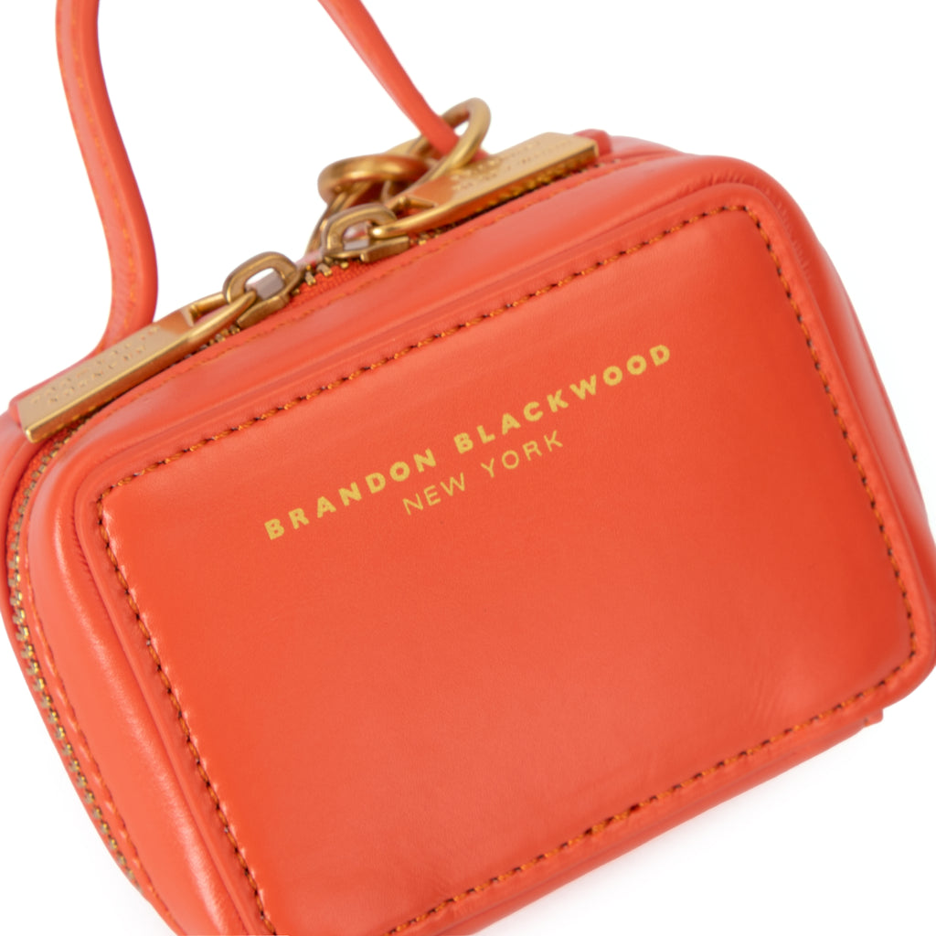 Our Trunk Bag Charm in Orange Leather with Brass Gold Hardware