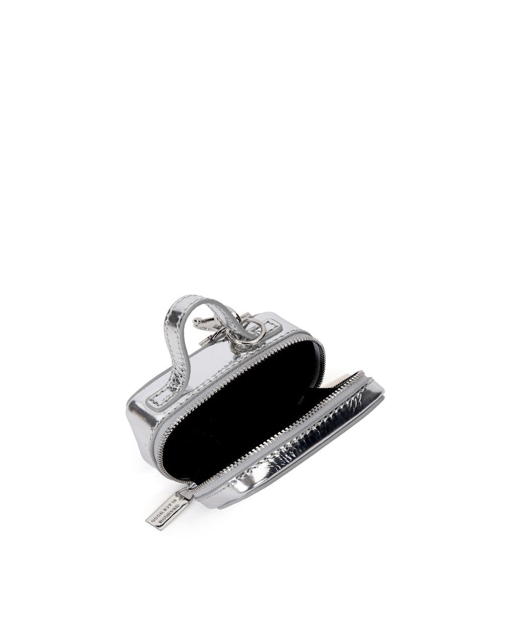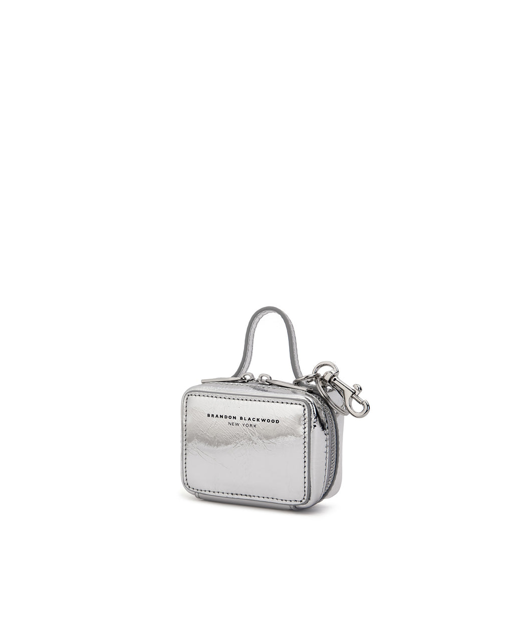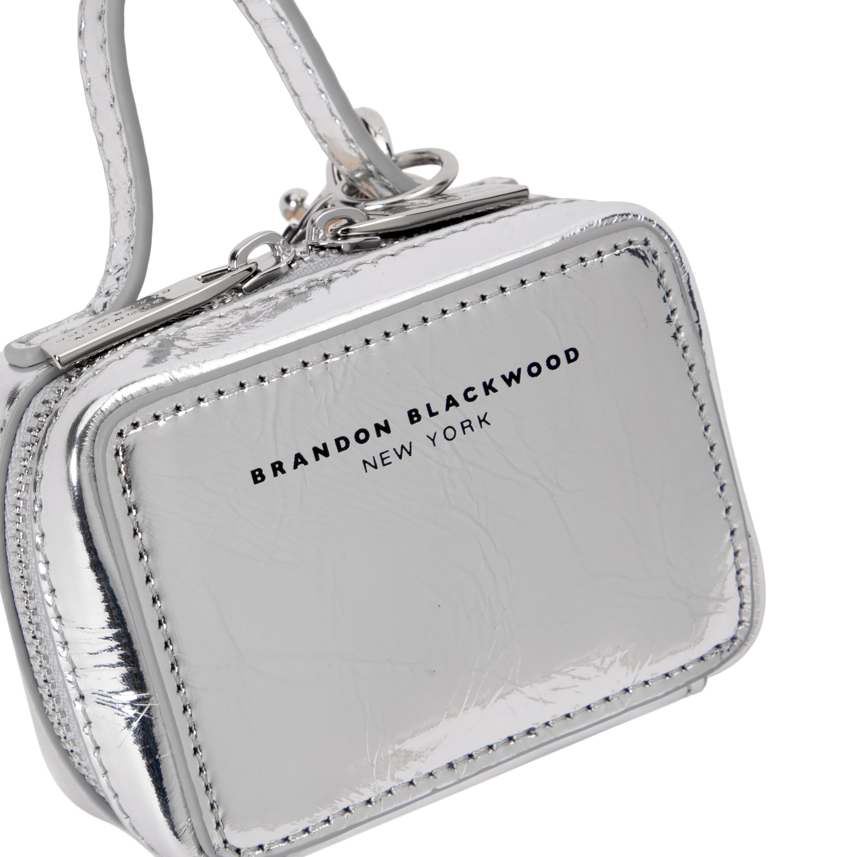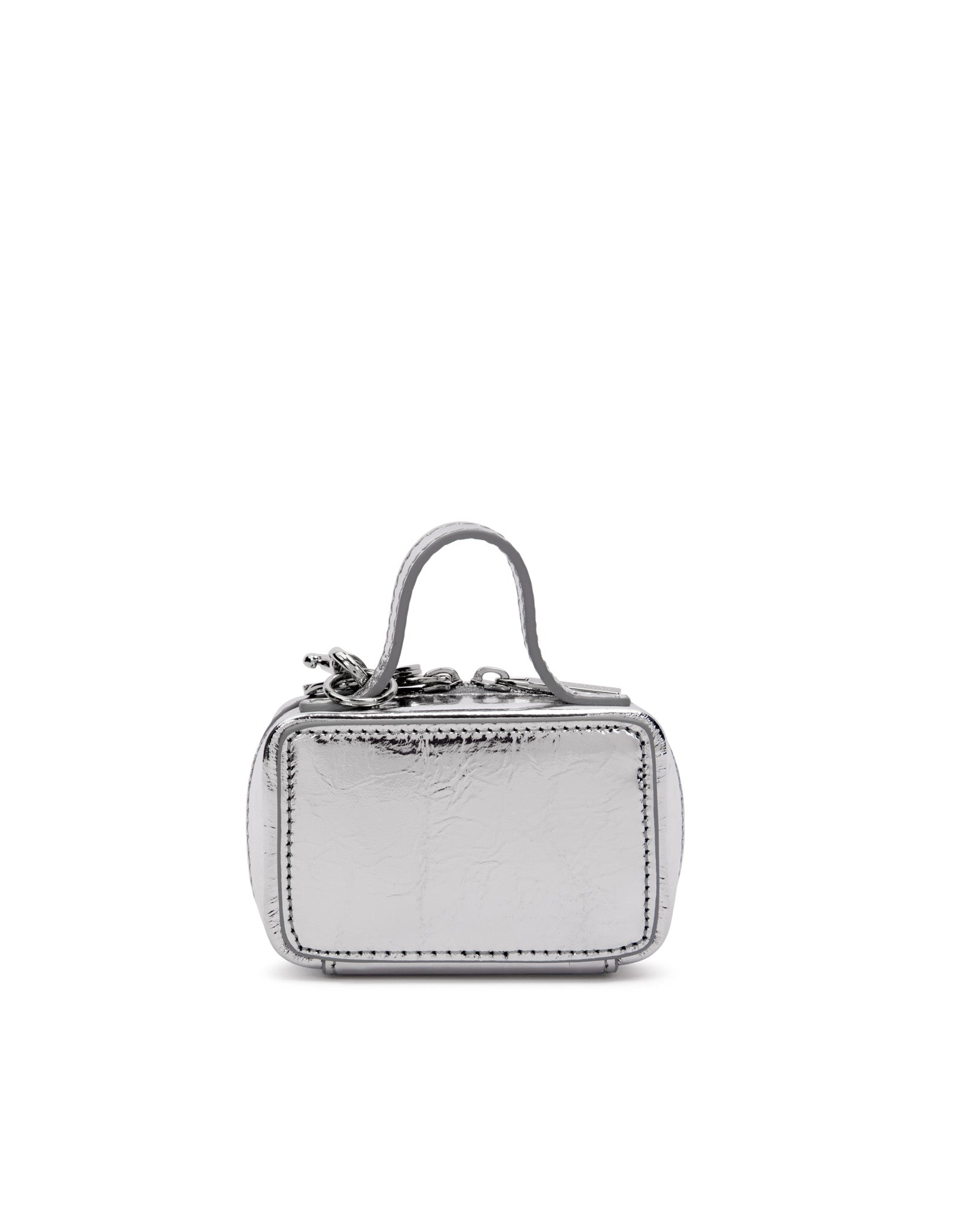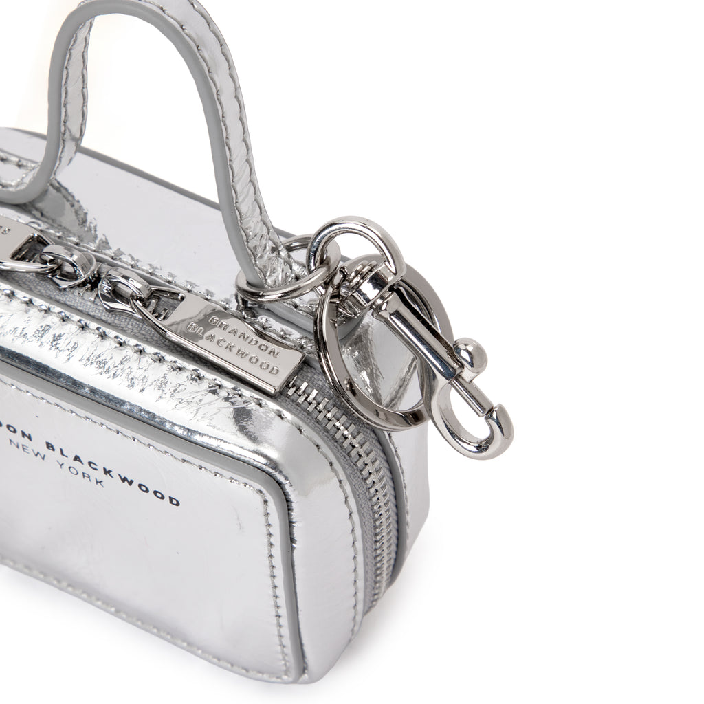 Our Trunk Bag Charm in Silver Cracked Leather with Silver Hardware